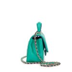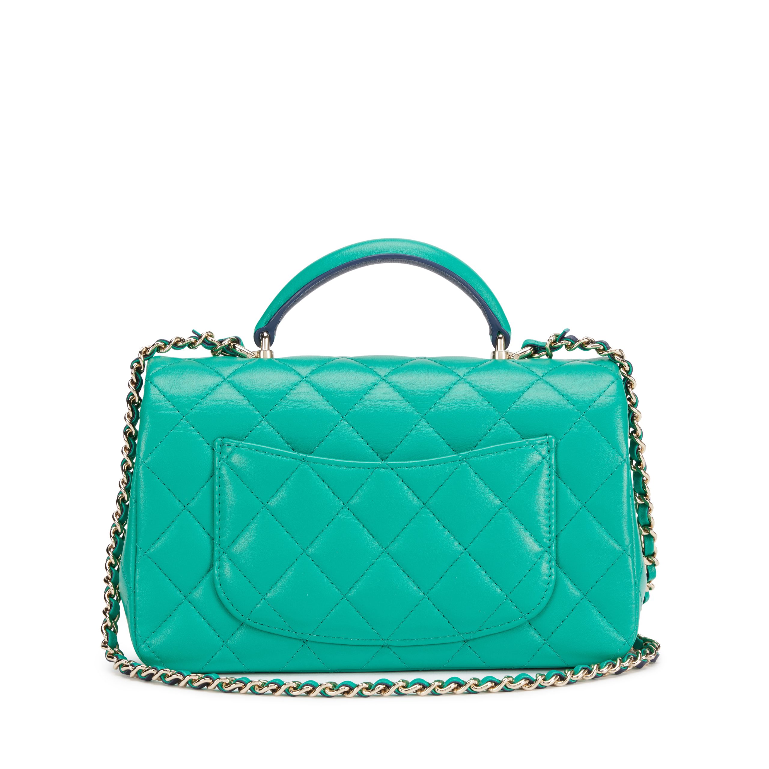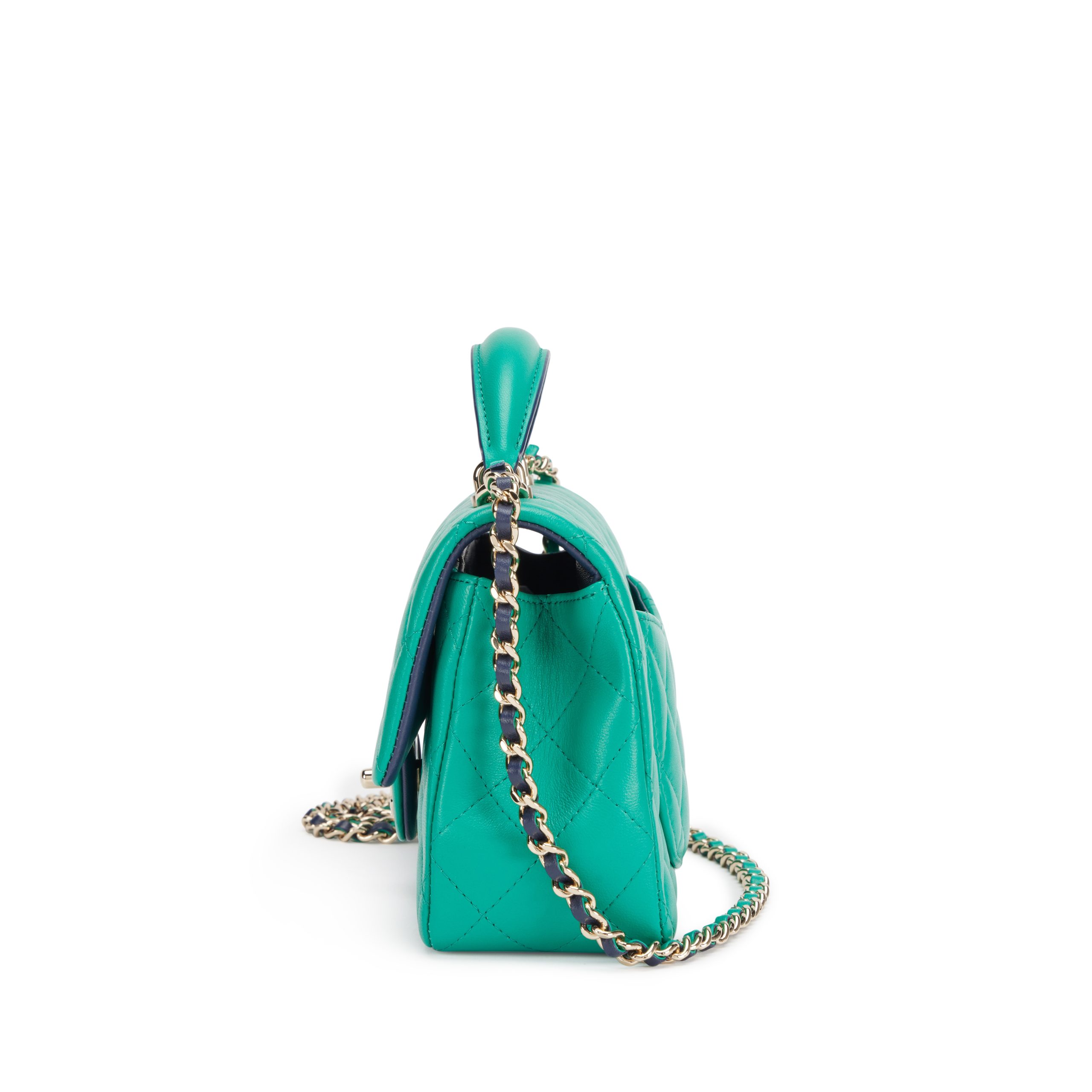 Green and Navy Blue Quilted Lambskin Mini Flap Top Handle Light Gold Hardware, 2023