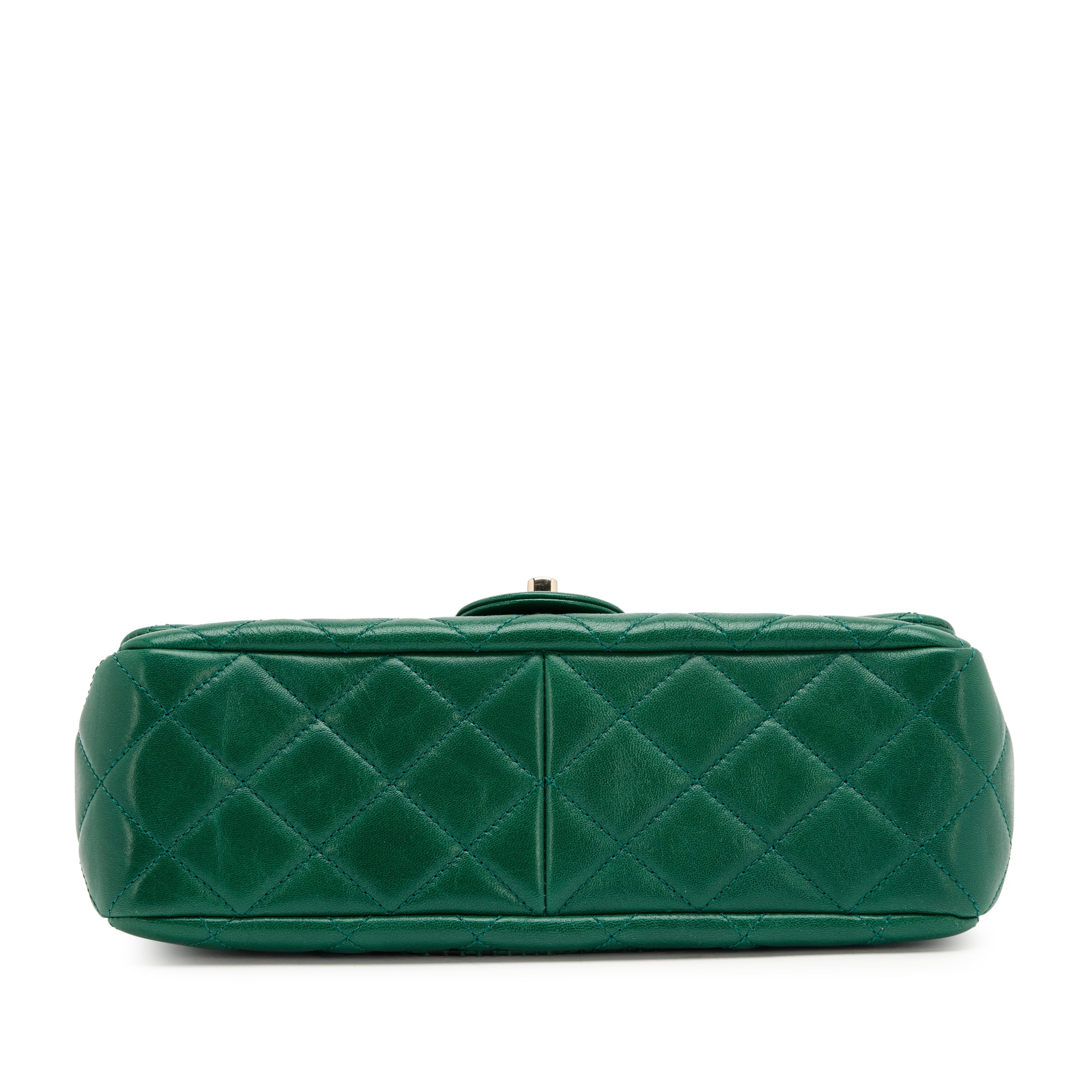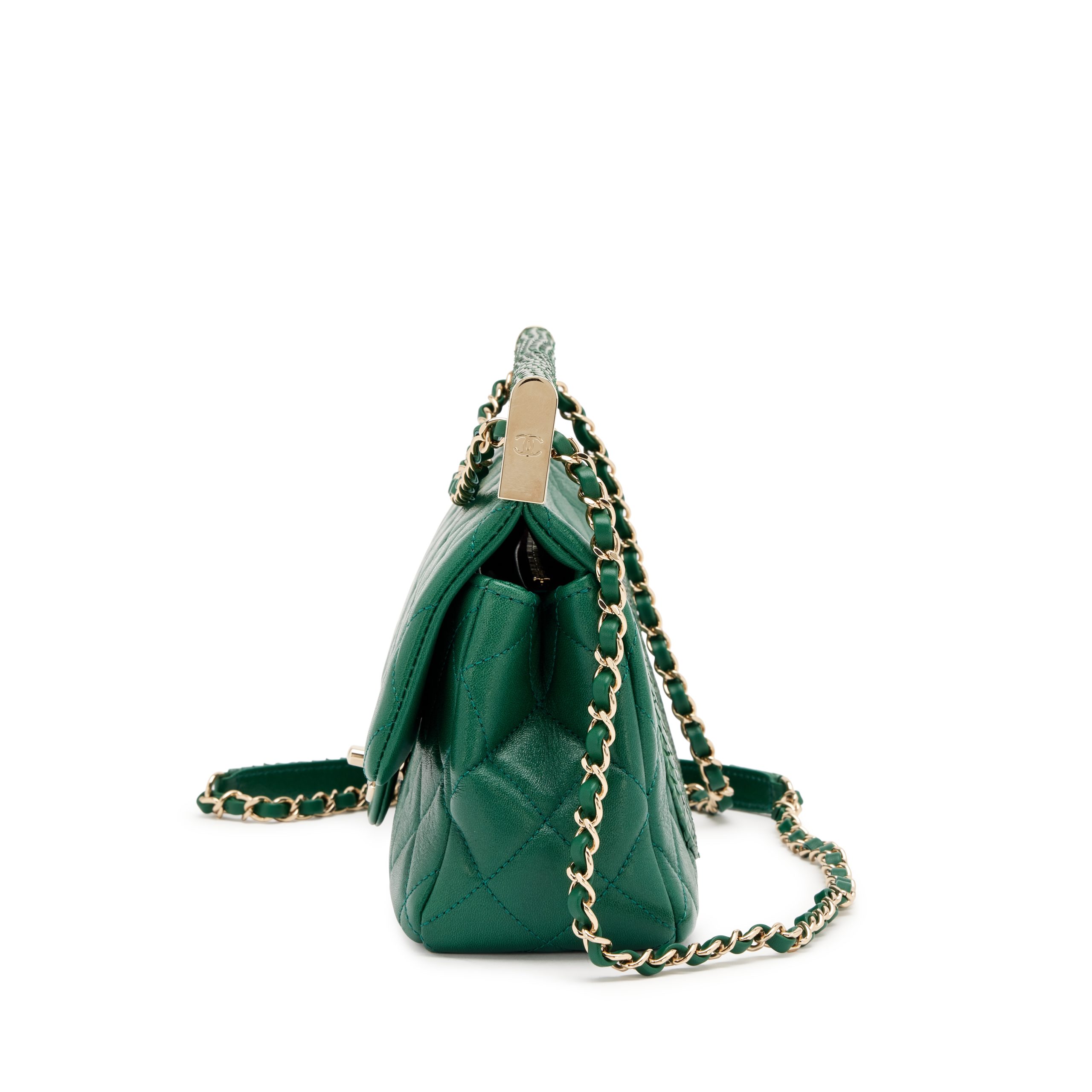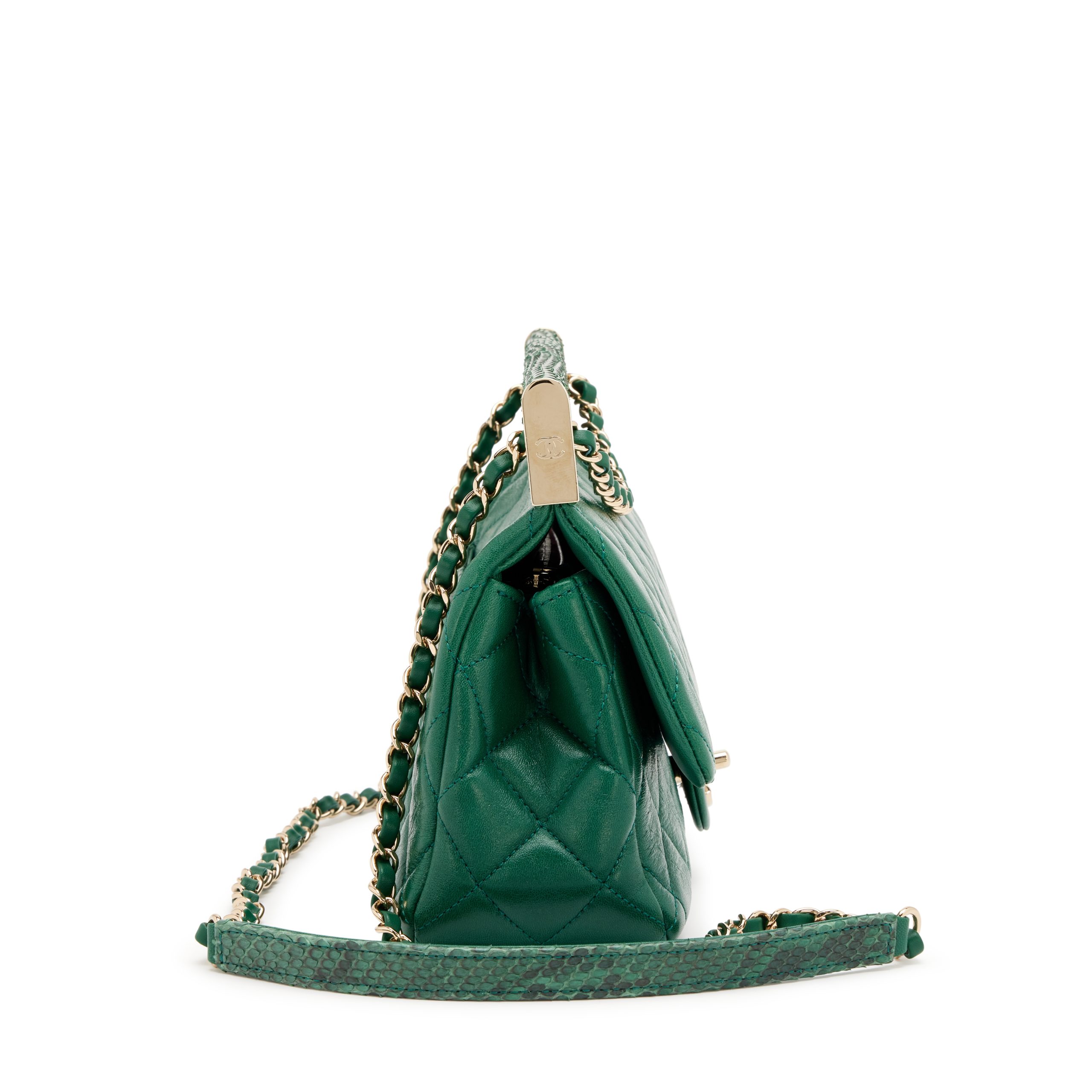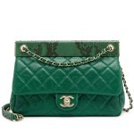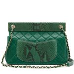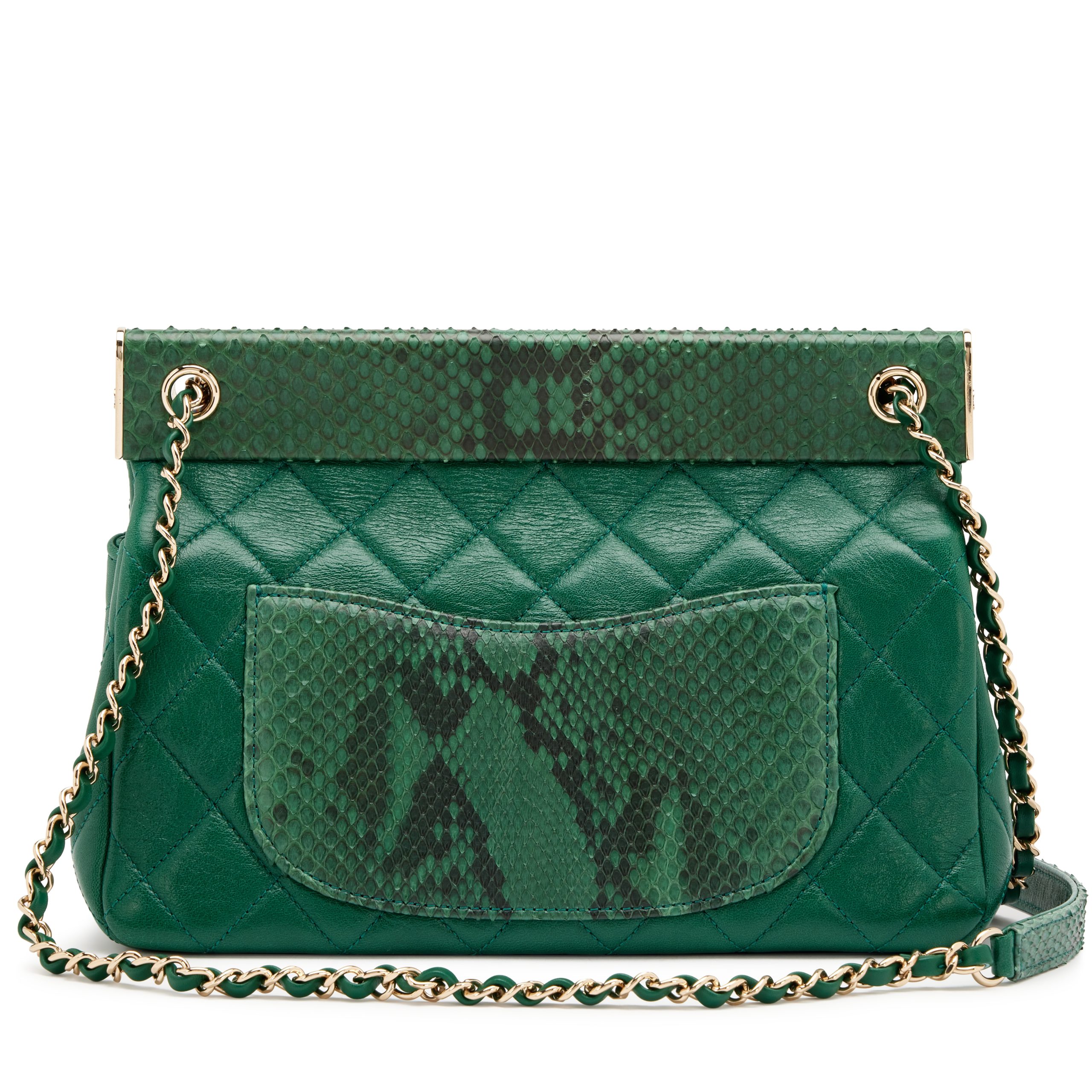 Green Lambskin and Snakeskin Quilted Frame Flap Bag Gold Hardware, 2018