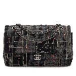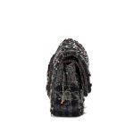 Grey, Black, and Red Embellished Chains and Beads Wool Tweed Medium Classic Double Flap Ruthenium Hardware, 2016