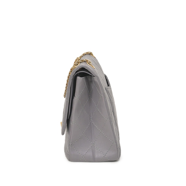 Grey Quilted Calfskin 2.55 Reissue 227 Double Flap Bag Aged Gold Hardware