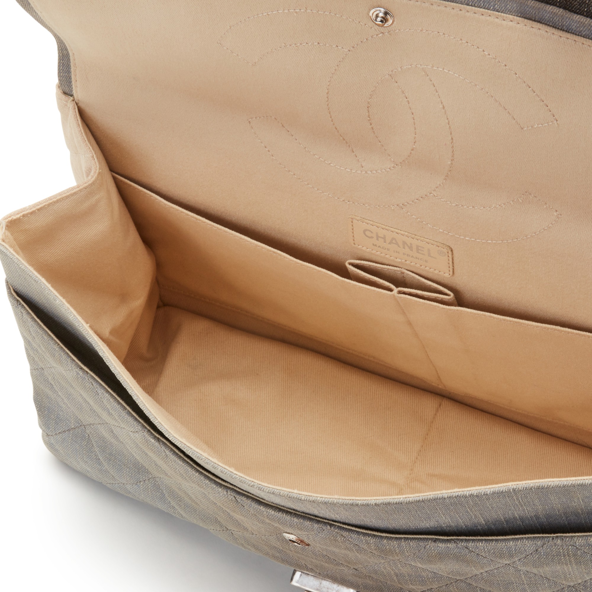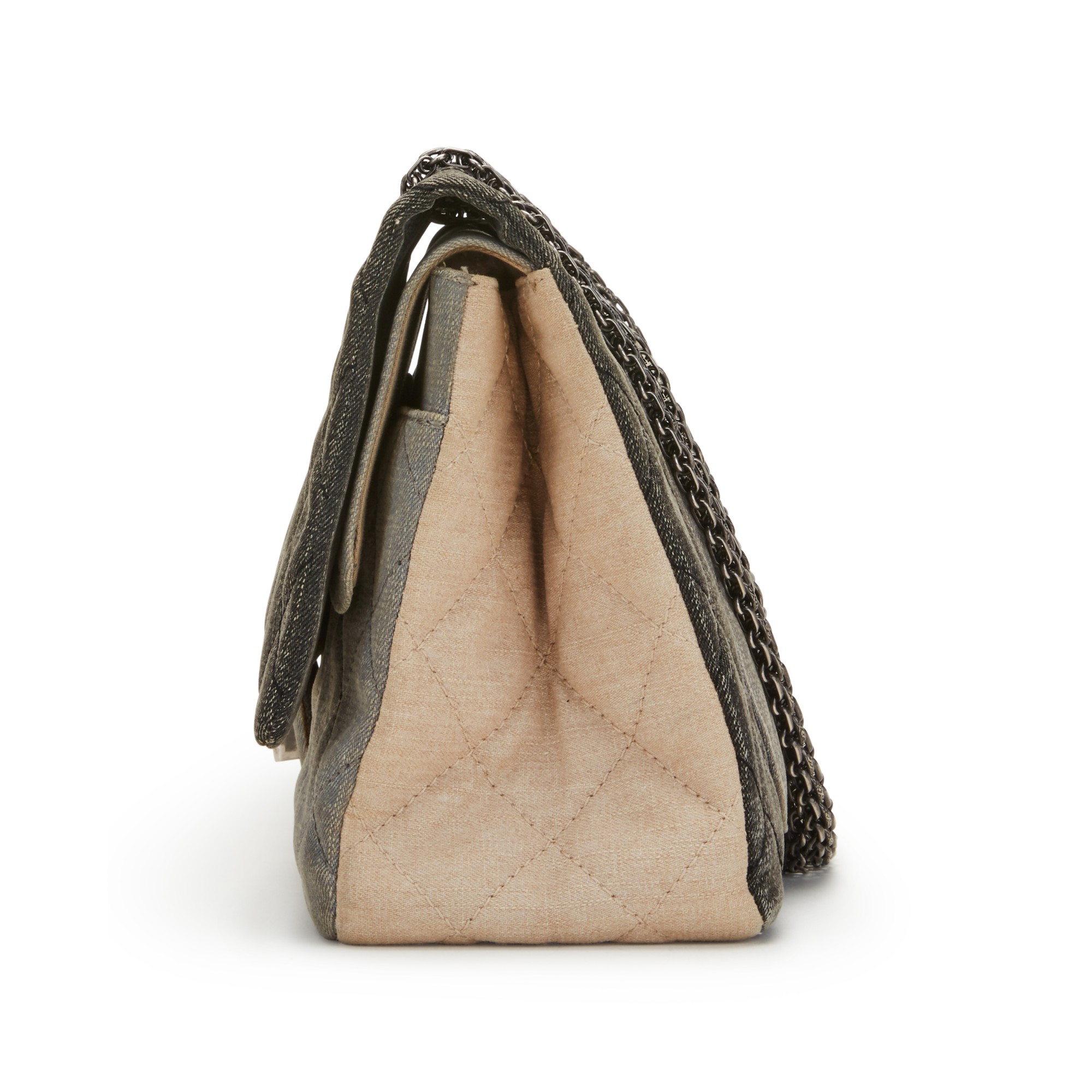 Chanel Light Blue, Dark Grey, & Beige Quilted Denim Double Flap 2.55 Reissue 228 Ruthenium Hardware, 2009/2010The interior is lined with canvasThis item is final sale