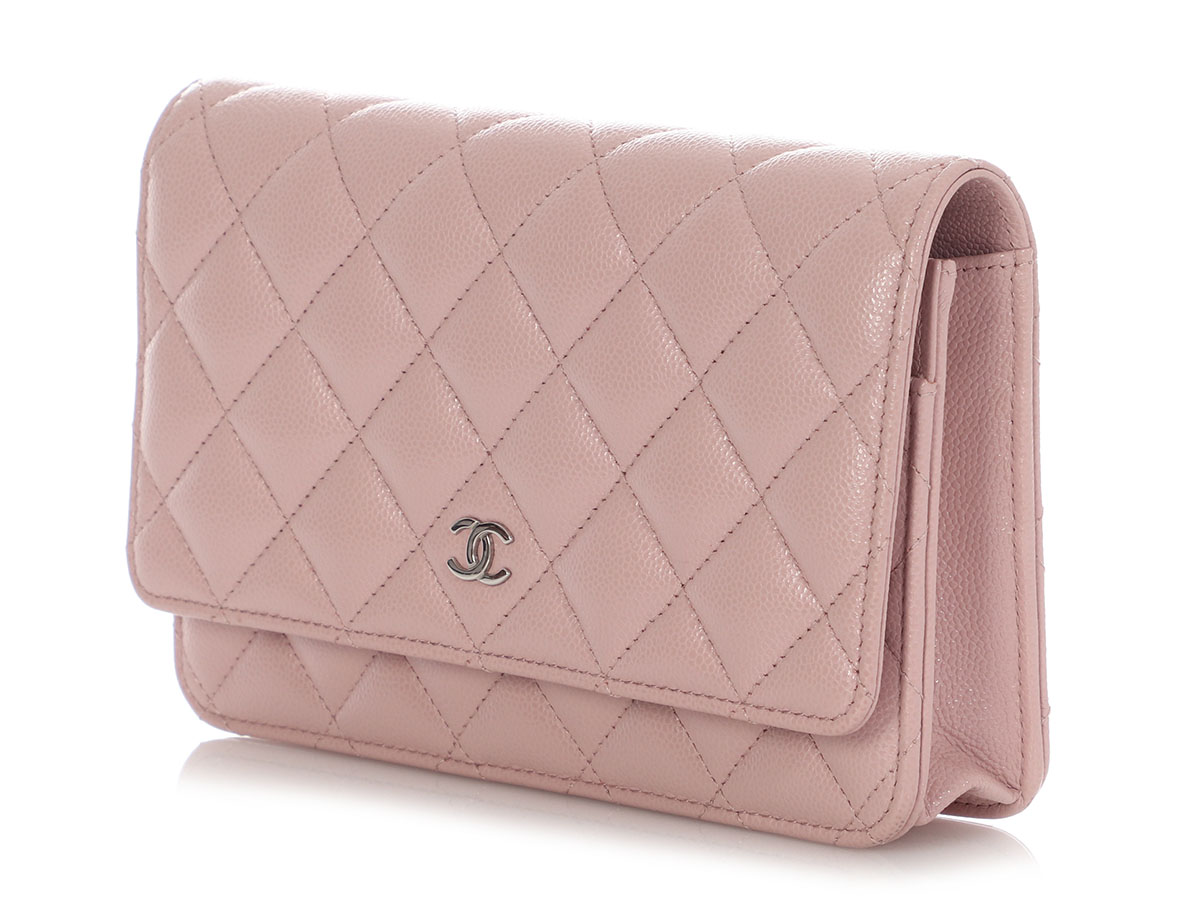 Light Pink Quilted Caviar Wallet on Chain WOC Silver Hardware, 2024