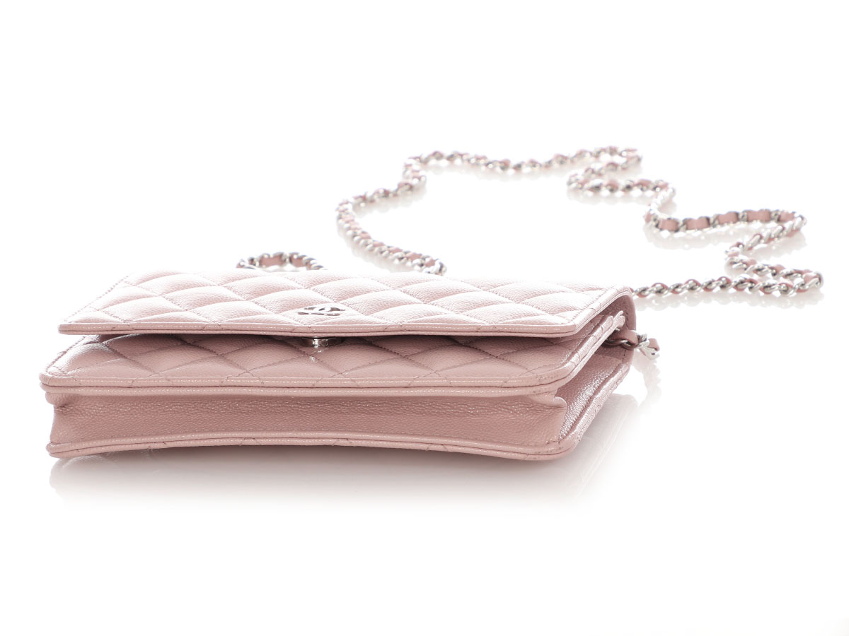 Chanel Light Pink Quilted Caviar Wallet on Chain WOC Silver Hardware, 2024The interior is lined in a tonal textile materialIncludes care booklet, dust bag, and boxThis item is final sale