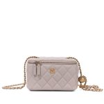 Light Purple Quilted Lambskin Long Vanity Case Pearl Crush Brushed Gold Hardware, 2021