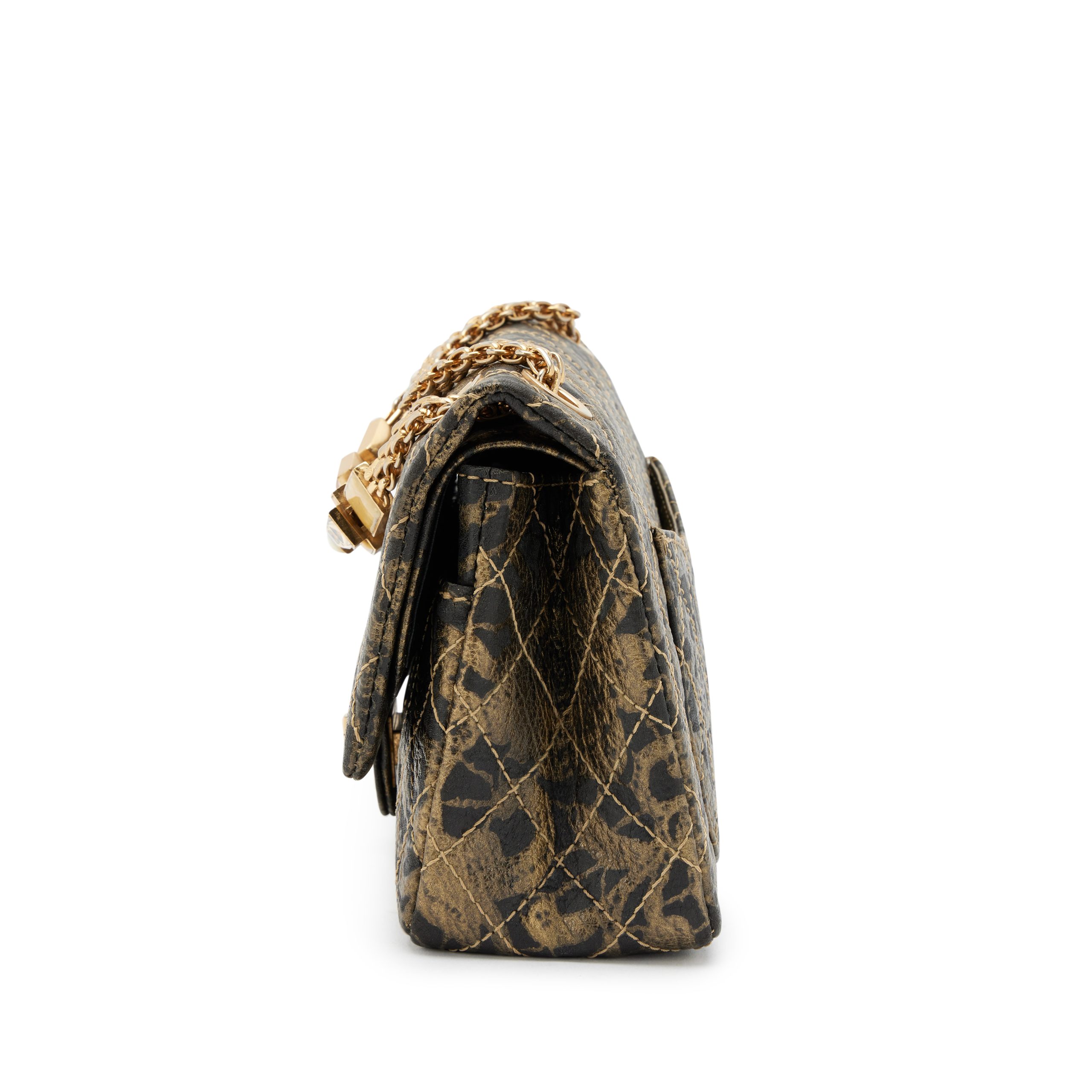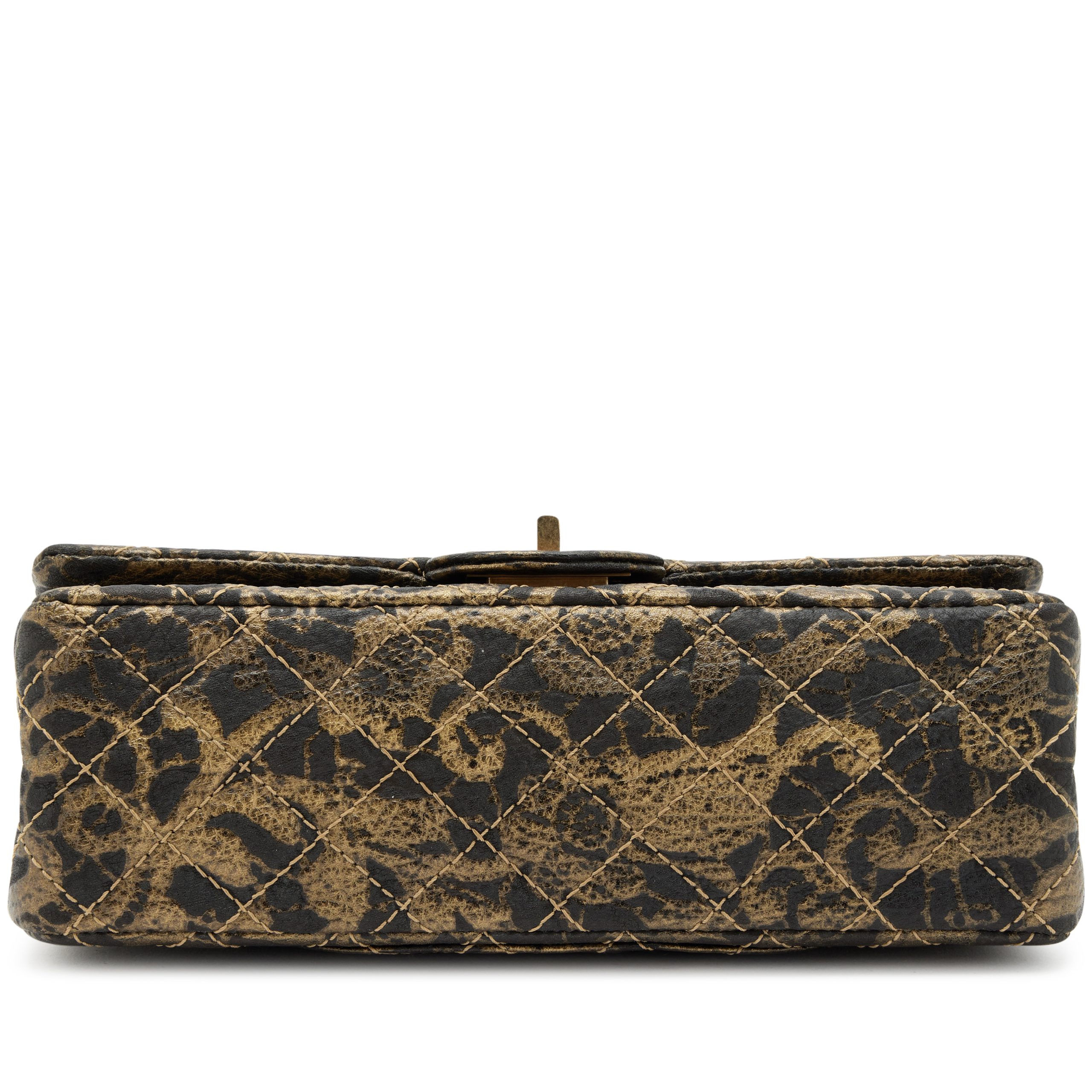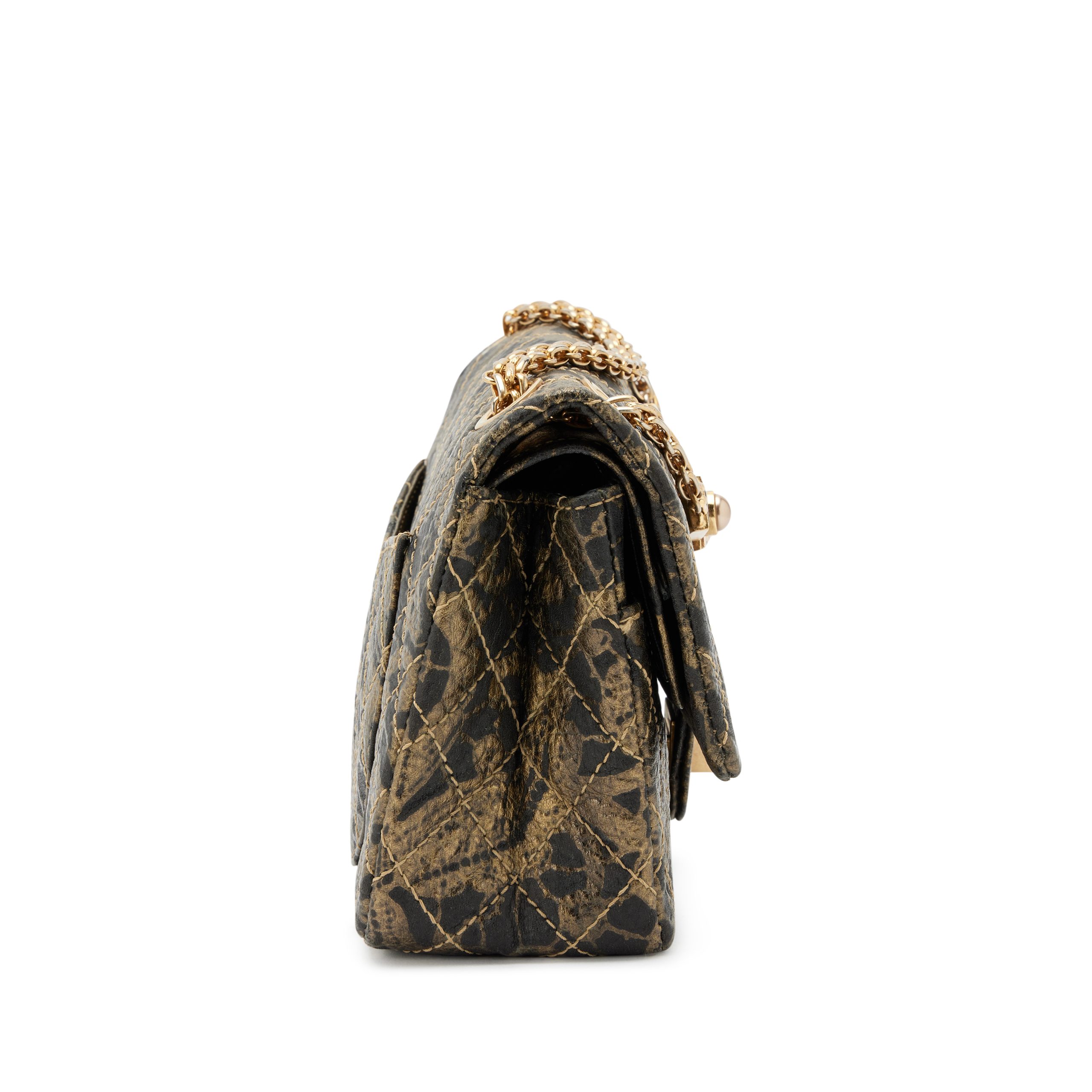 Limited Edition Gold and Black Painted Quilted Buffalo Paris-Moscow 225 Reissue 2.55 Double Jeweled Chain Flap Bag Antique Gold Hardware, 2009