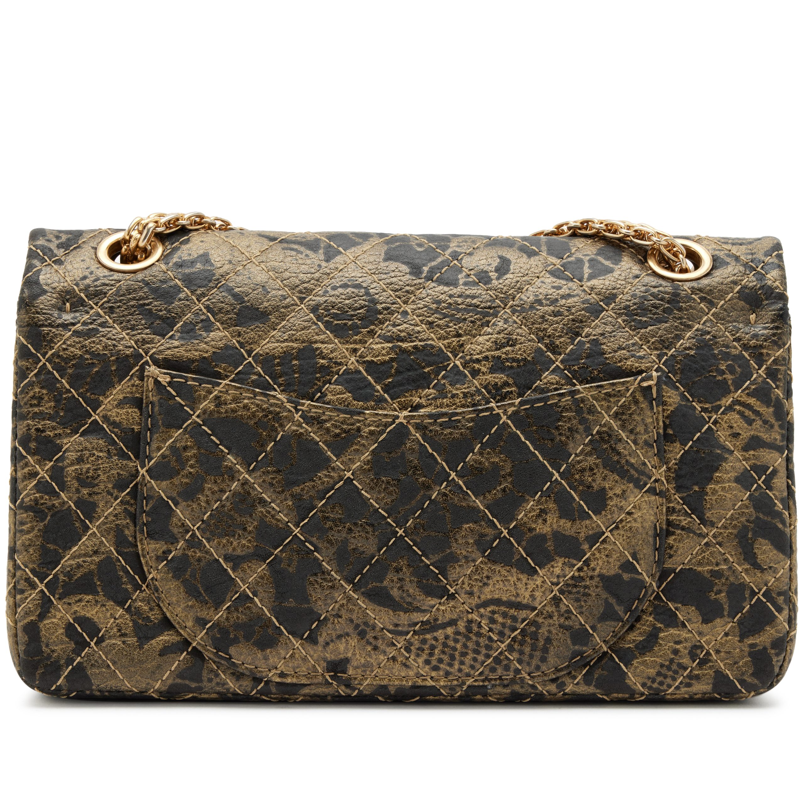 Chanel Limited Edition Gold and Black Painted Quilted Buffalo Paris-Moscow 225 Reissue 2.55 Double Jeweled Chain Flap Bag Antique Gold Hardware, 2009The interior is lined in a black leatherIncludes authenticity card, information booklet, camellia flower, ribbon, dust bag, and boxThis item is final sale
