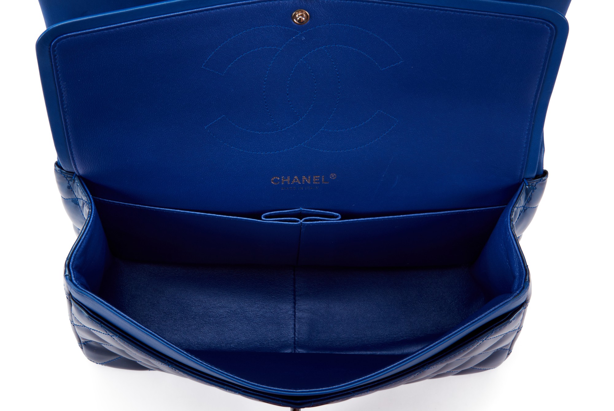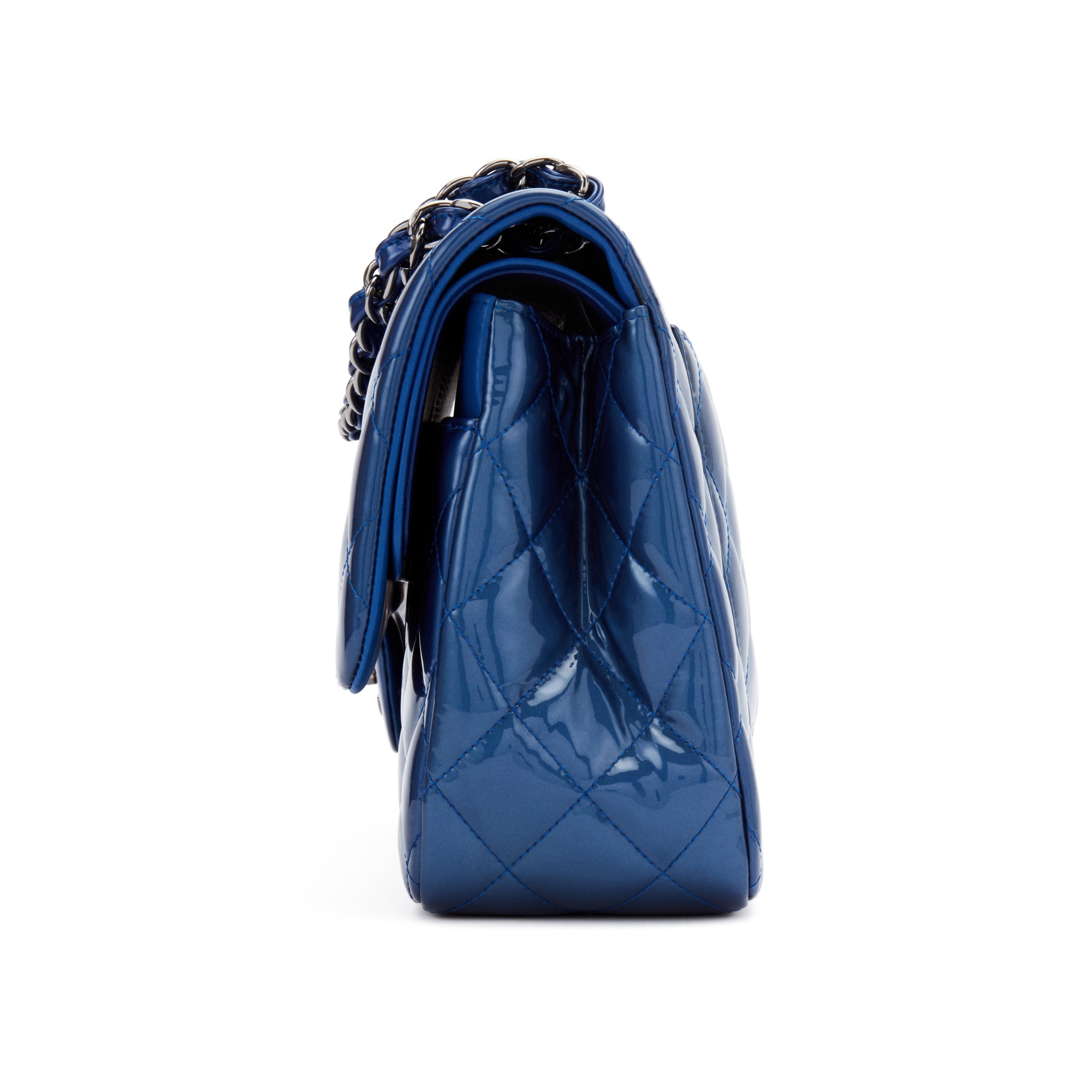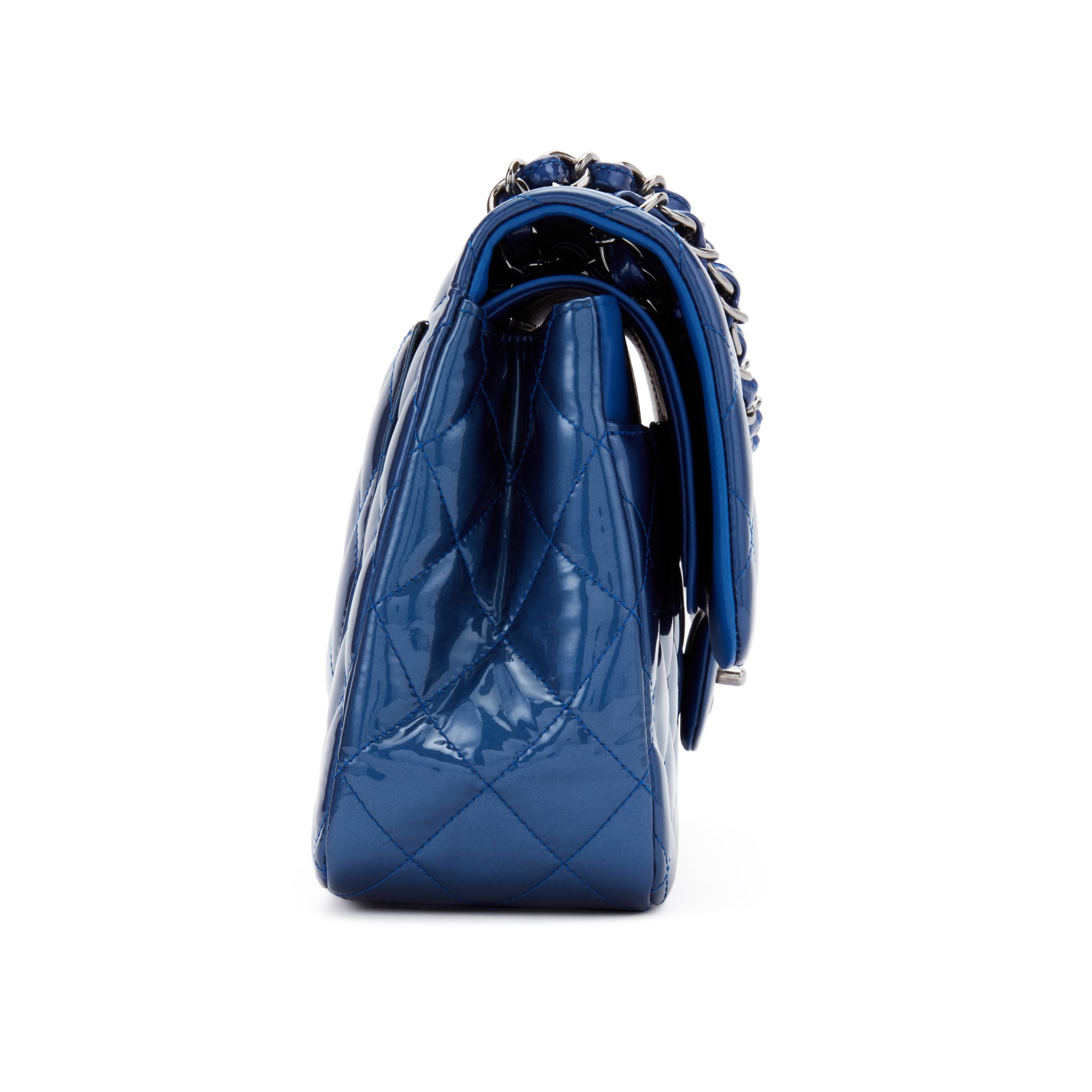 Chanel Metallic Blue Quilted Patent Jumbo Classic Double Flap Ruthenium Hardware, 2012-2013The interior is lined in tonal lambskin leatherThis item is final sale