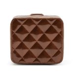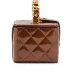Metallic Bronze Quilted Patent Mini Square Vanity Case Bag Antique Gold Hardware, 1994-1996