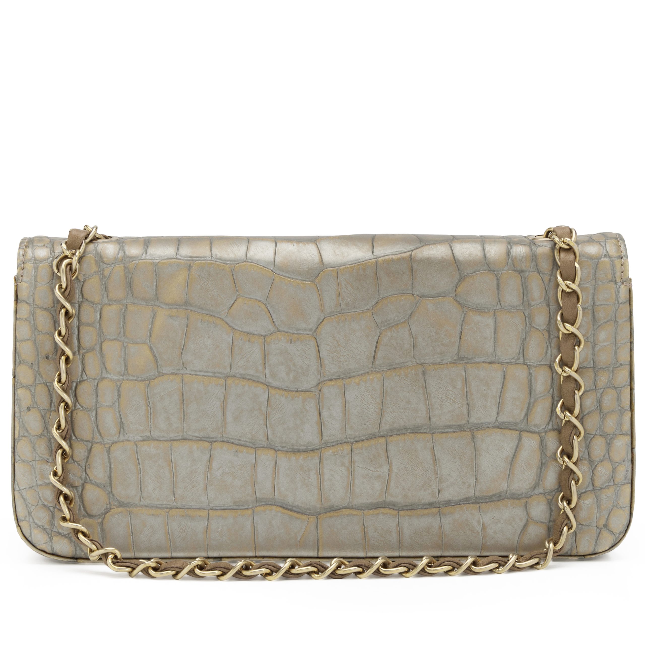 Metallic Silver and Taupe Alligator East West Classic Flap Bag Aged Gold Hardware, 2008