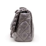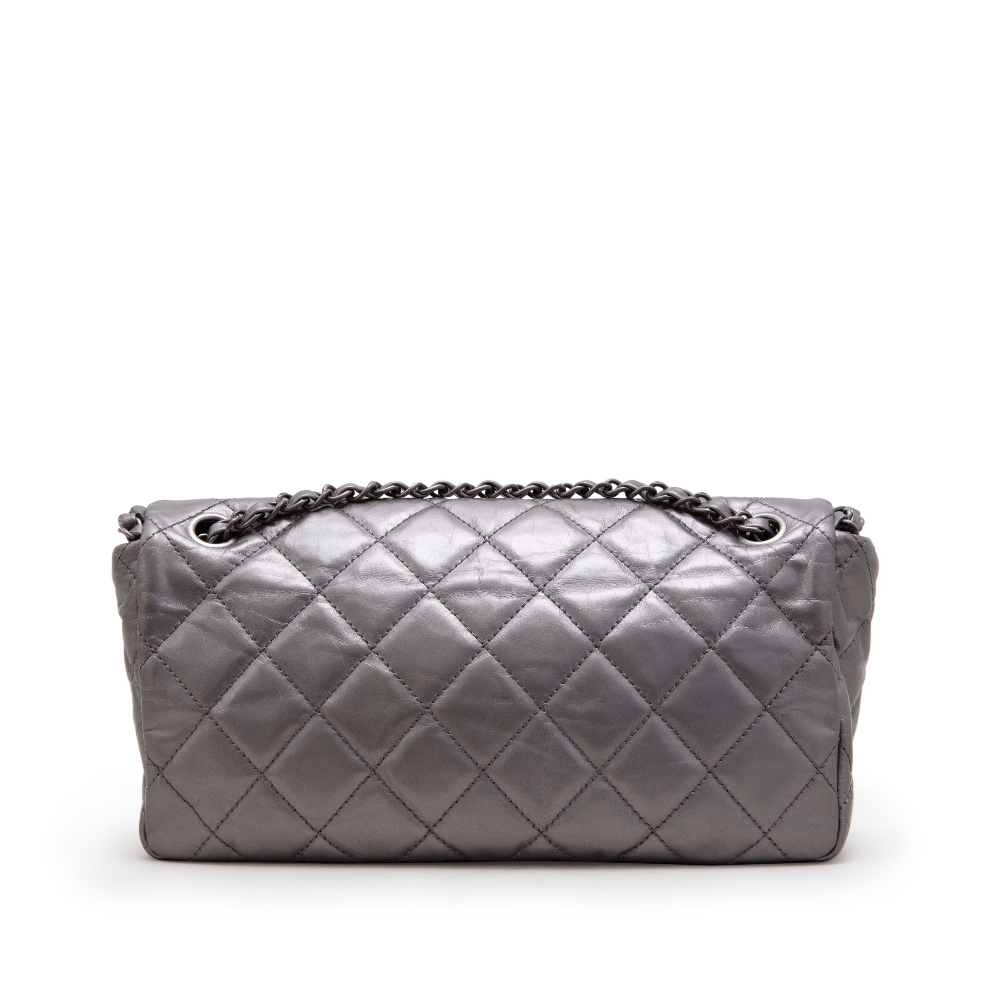 Metallic Silver Quilted Aged Calfskin Jumbo Chain Single Flap Ruthenium Hardware, 2012