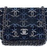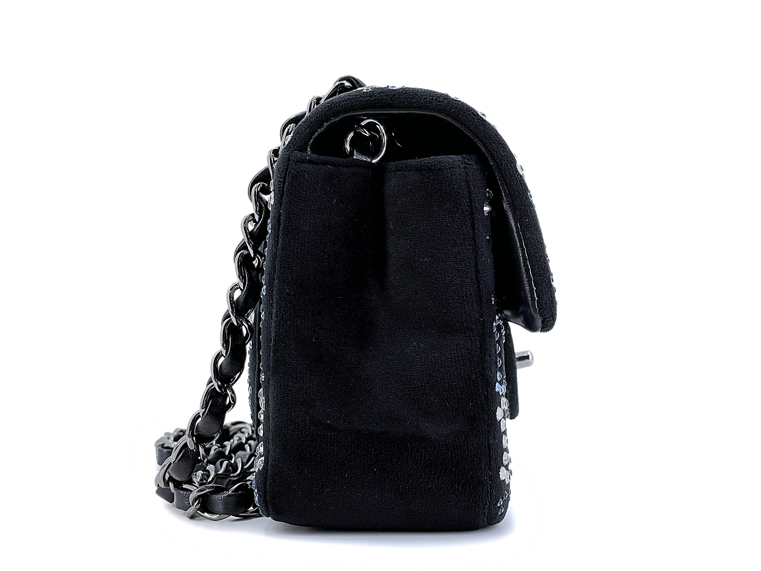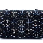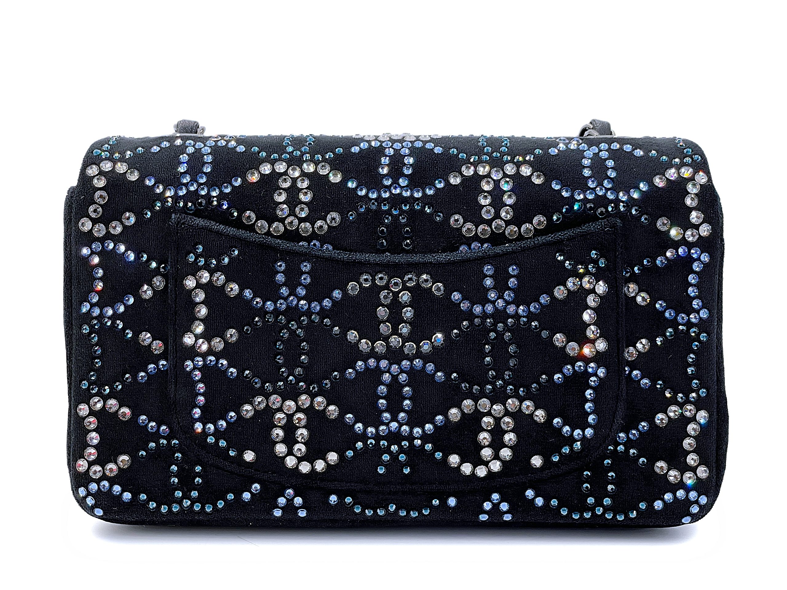 Midnight Navy Blue Velvet Crystal CC Embellished Rectangular Mini Flap Bag Ruthenium Hardware, 2020