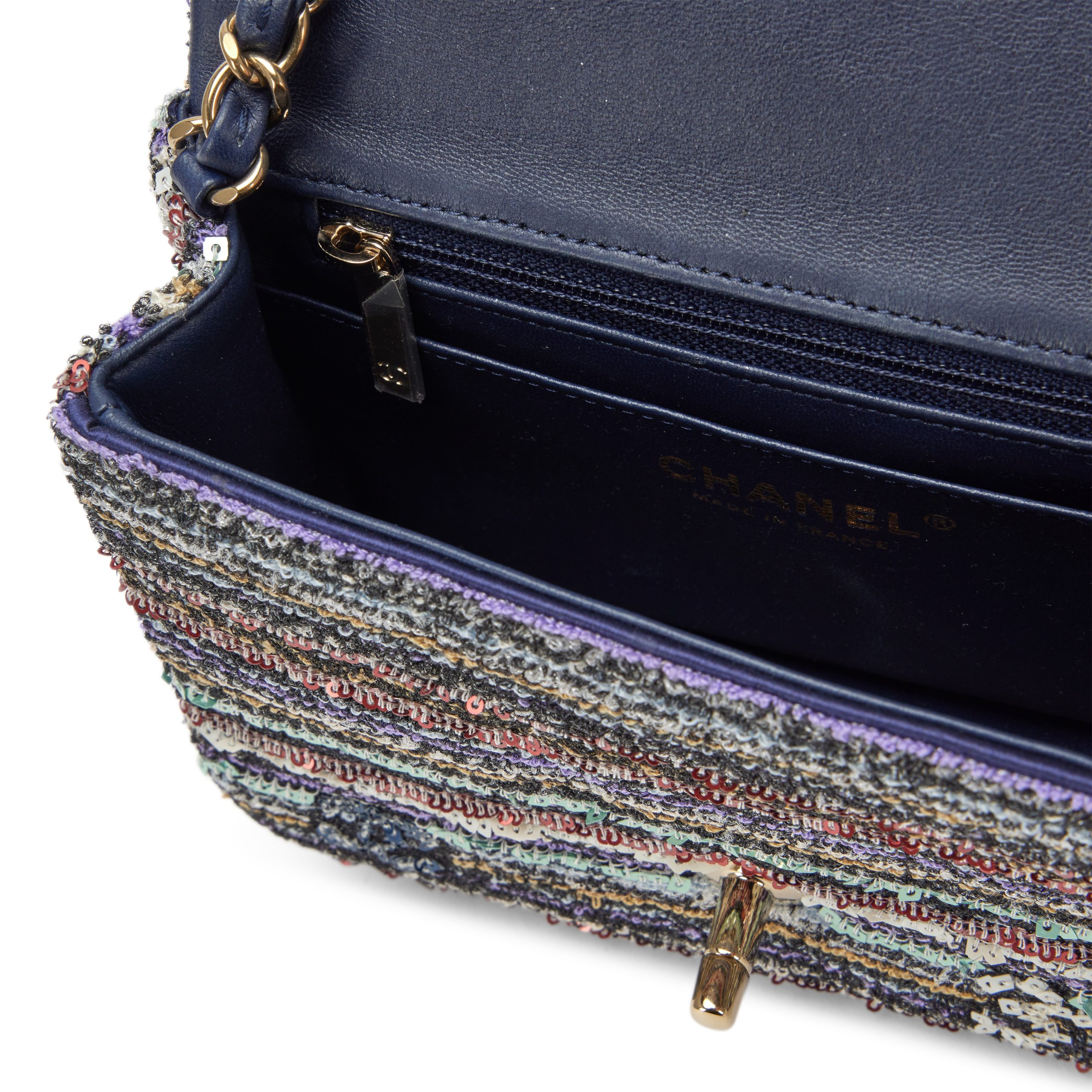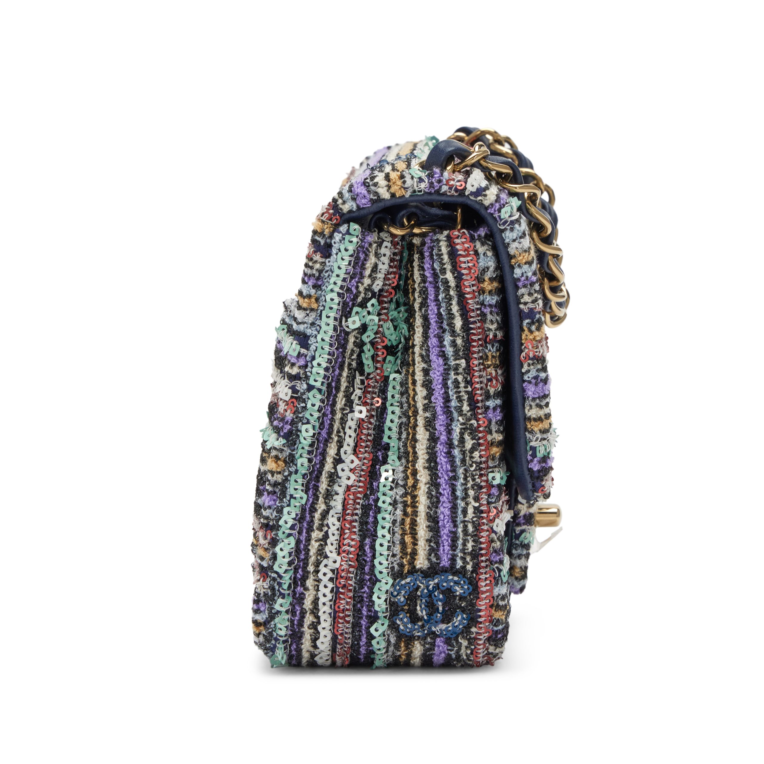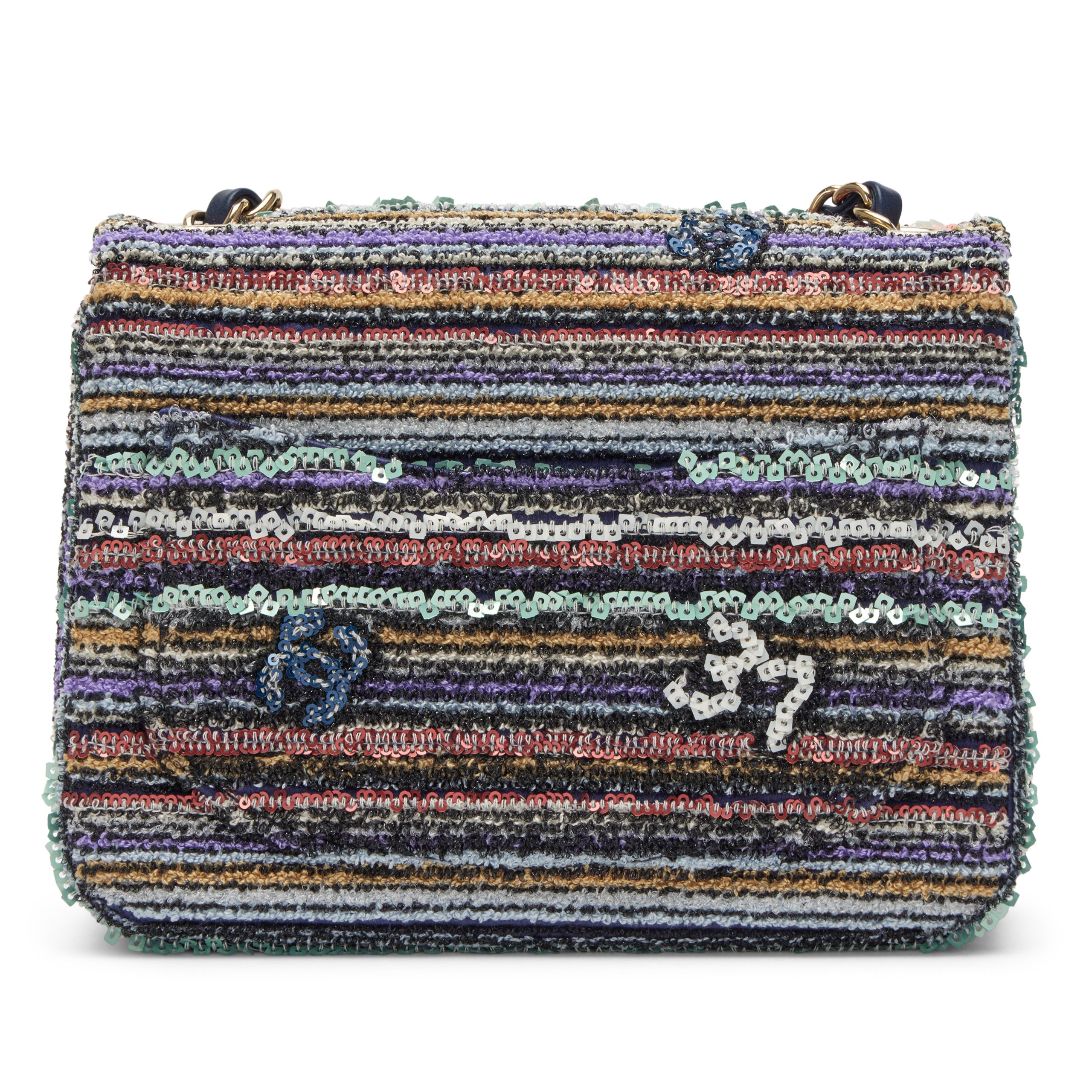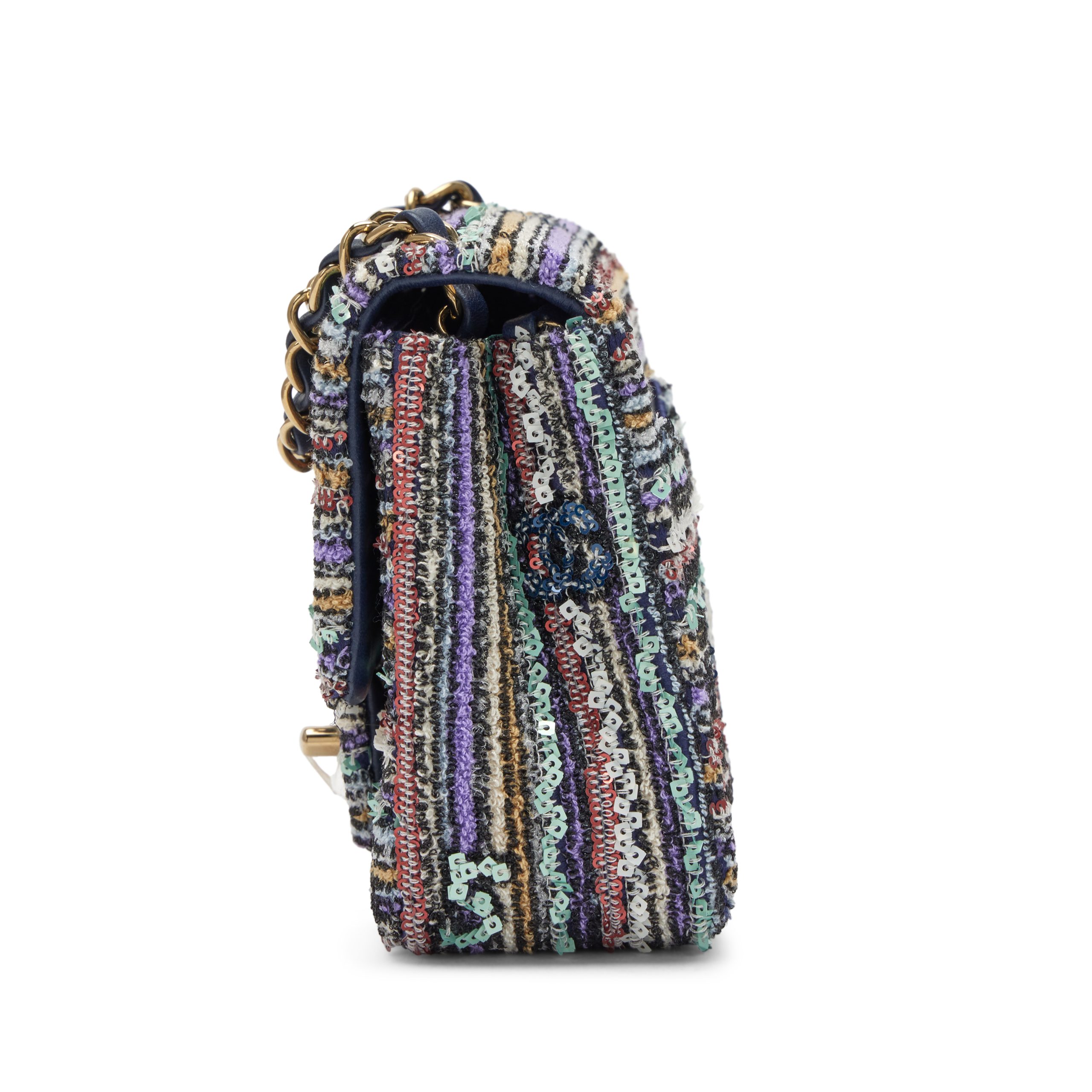 Chanel Multicolor Sequin Mini Square Half Flap Bag Pale Gold Hardware, 2023The interior is lined in a navy blue leatherIncludes dust bagThis item is final sale