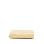 Mustard Yellow Quilted Caviar Card Holder Pale Gold Hardware