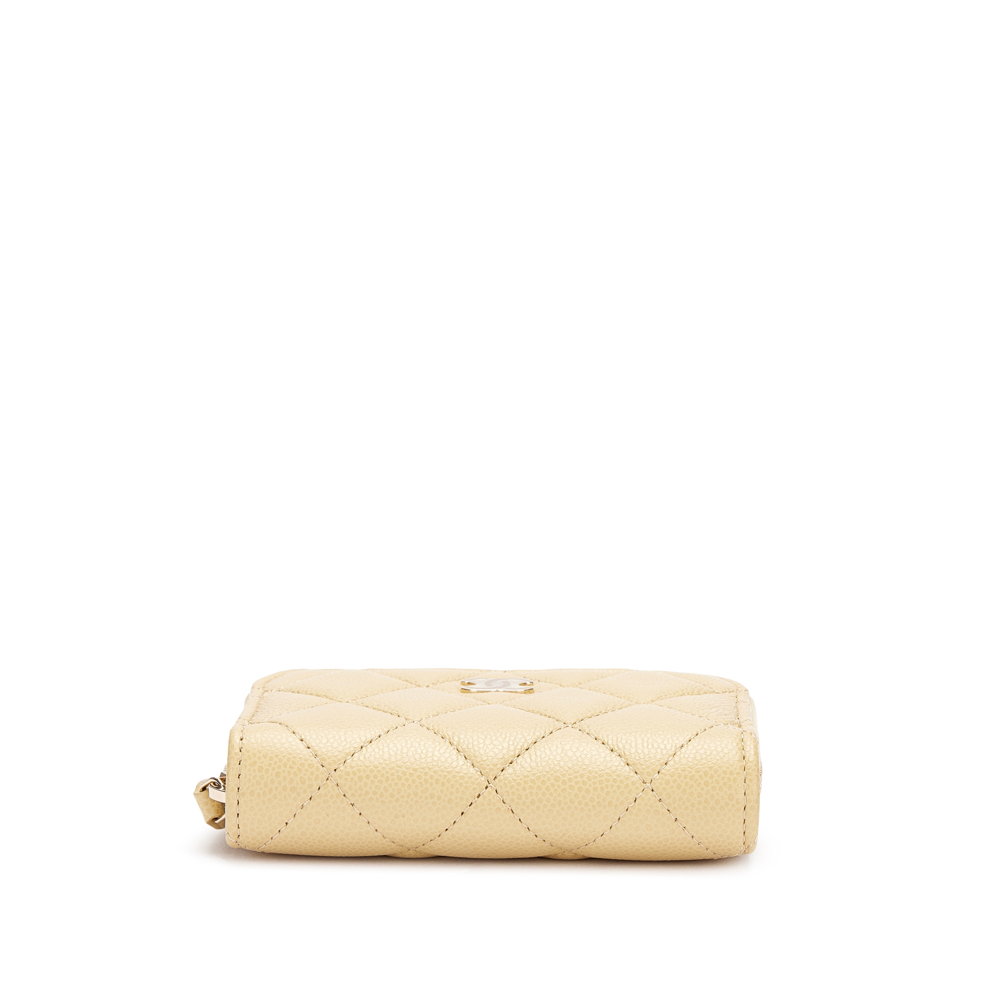 Chanel Mustard Yellow Quilted Caviar Card Holder Pale Gold HardwareThe interior is lined with tonal textile materialIncludes care booklet, dust bag and boxThis item is final sale