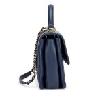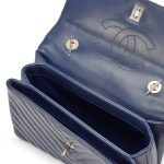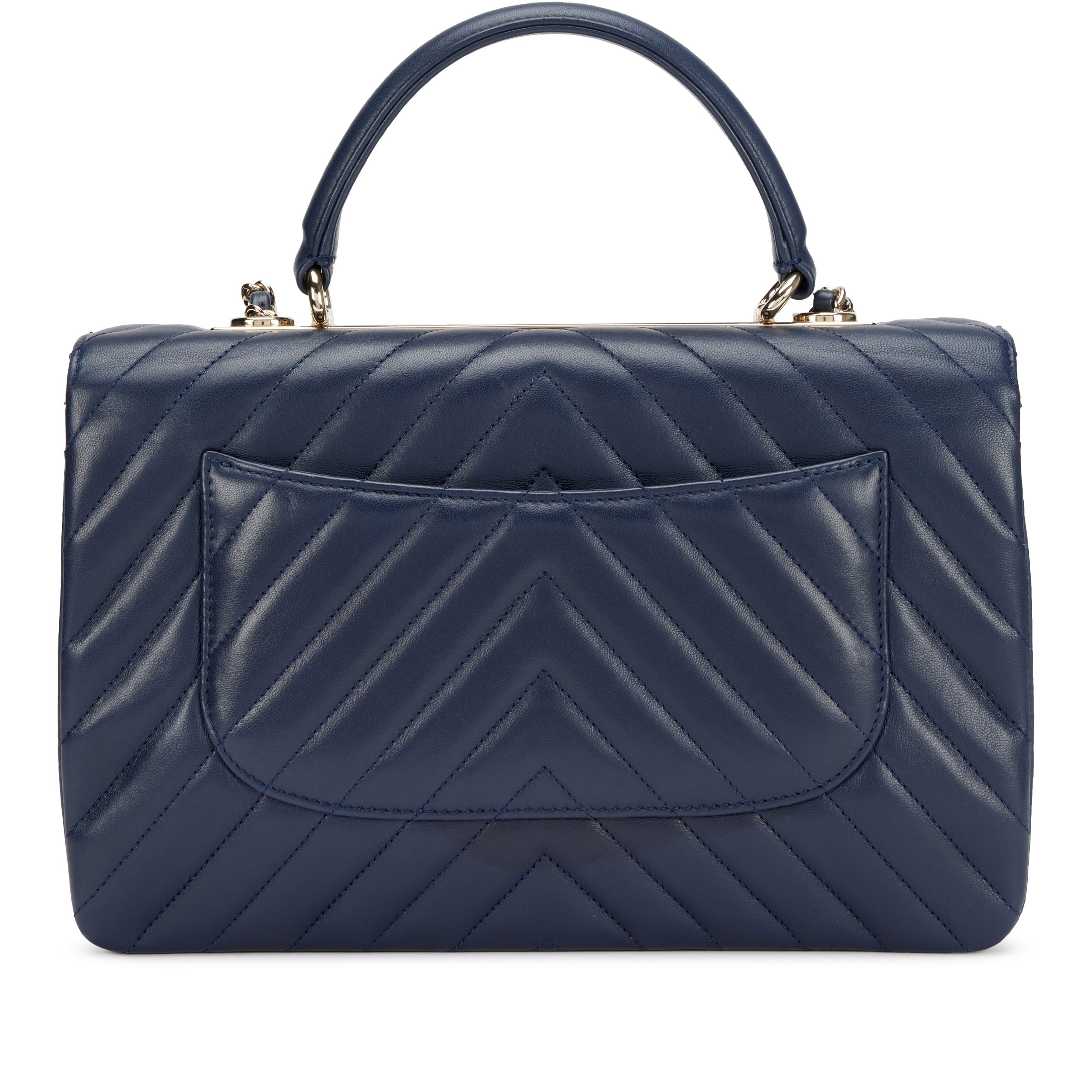 Navy Blue Chevron Quilted Lambskin Medium Trendy CC Dual Handle Flap Bag Gold Hardware, 2017-2018