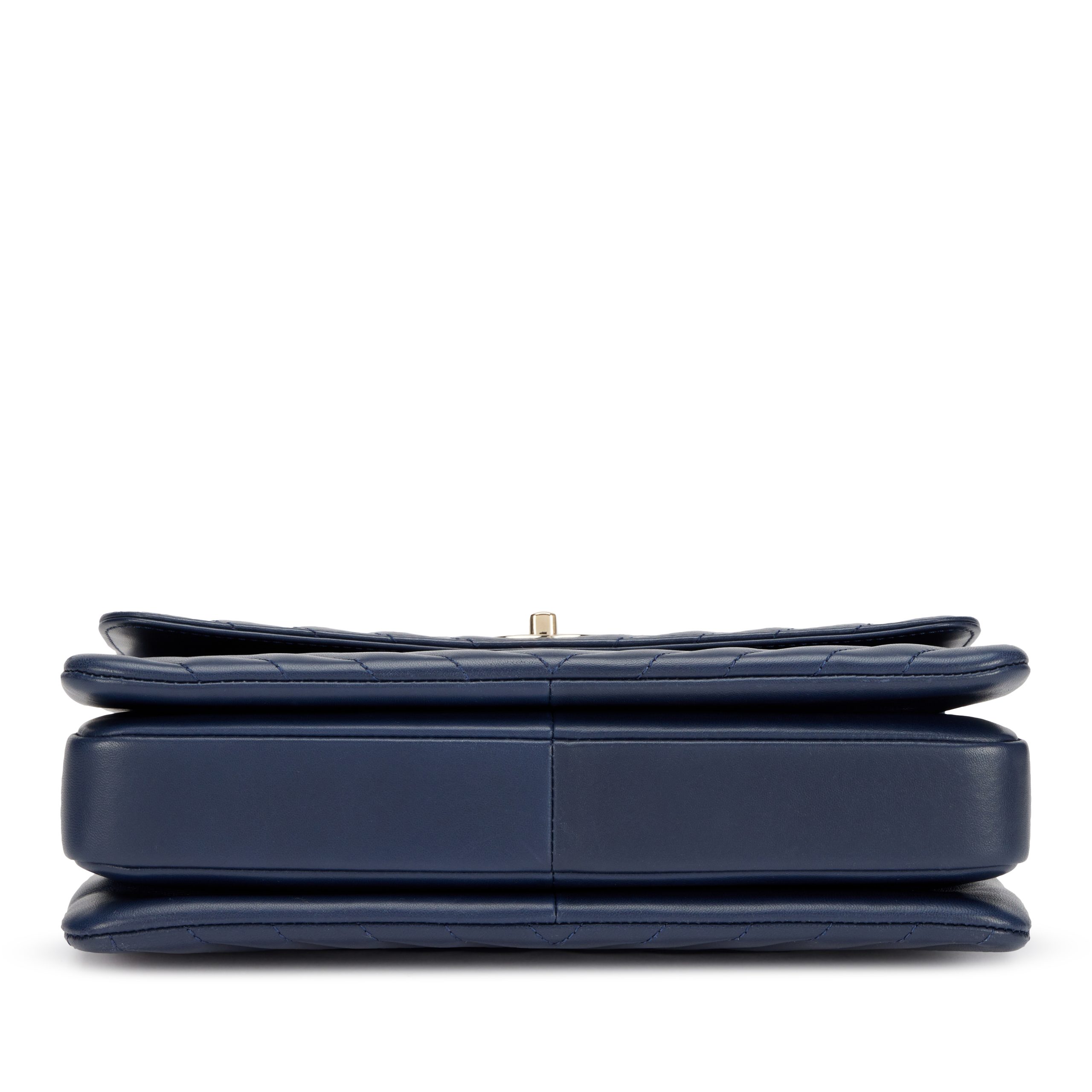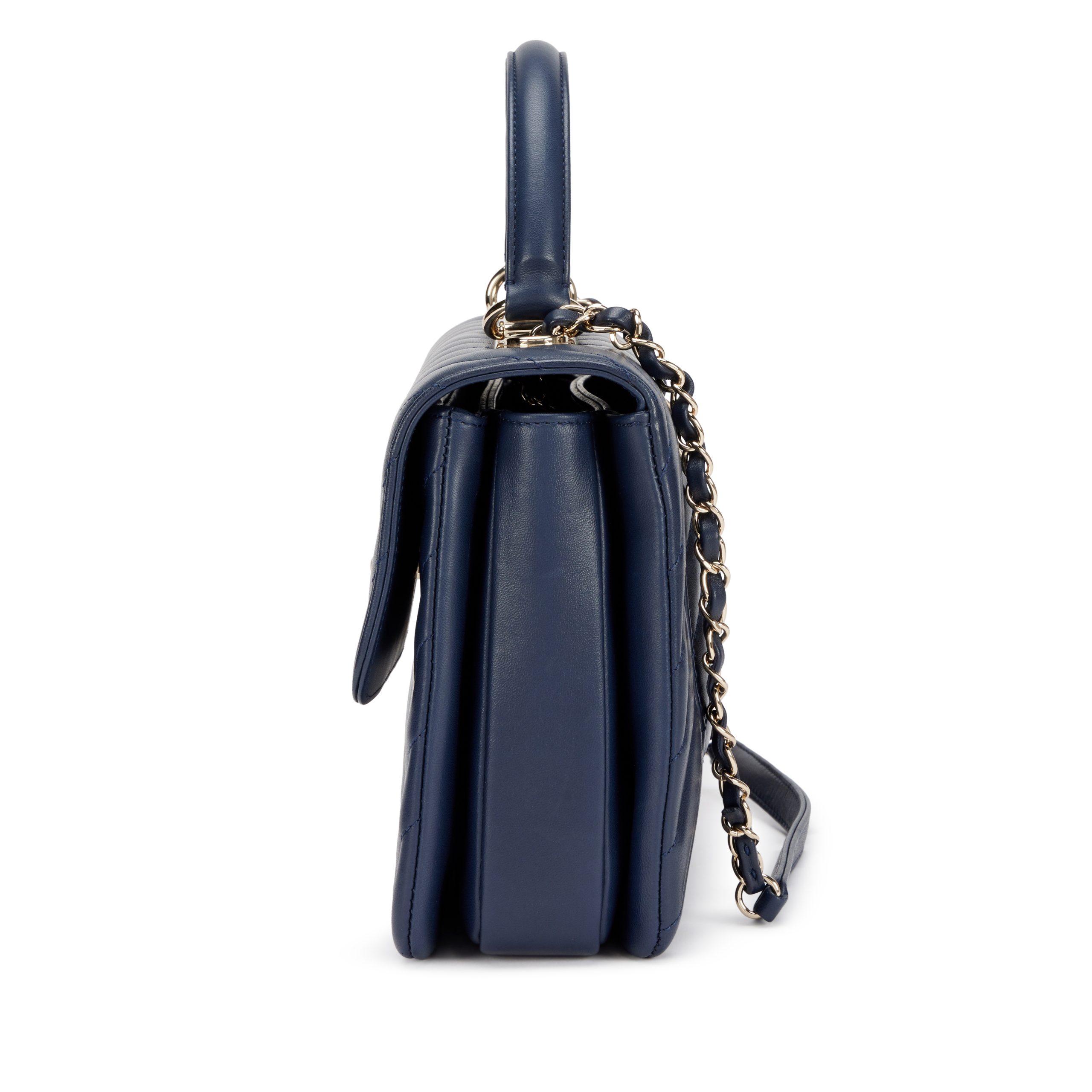 Chanel Navy Blue Chevron Quilted Lambskin Medium Trendy CC Dual Handle Flap Bag Gold Hardware, 2017-2018The interior is lined in a tonal leatherIncludes dust bagThis item is final sale