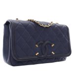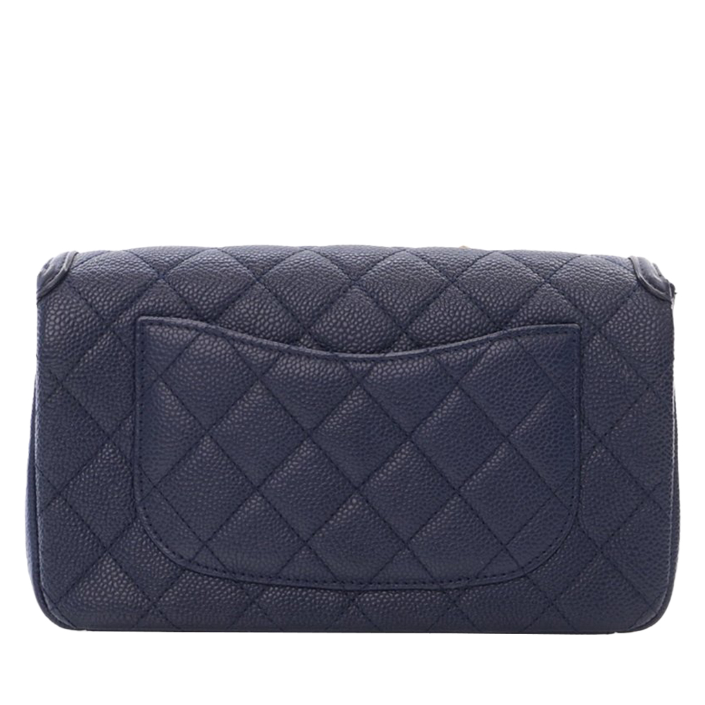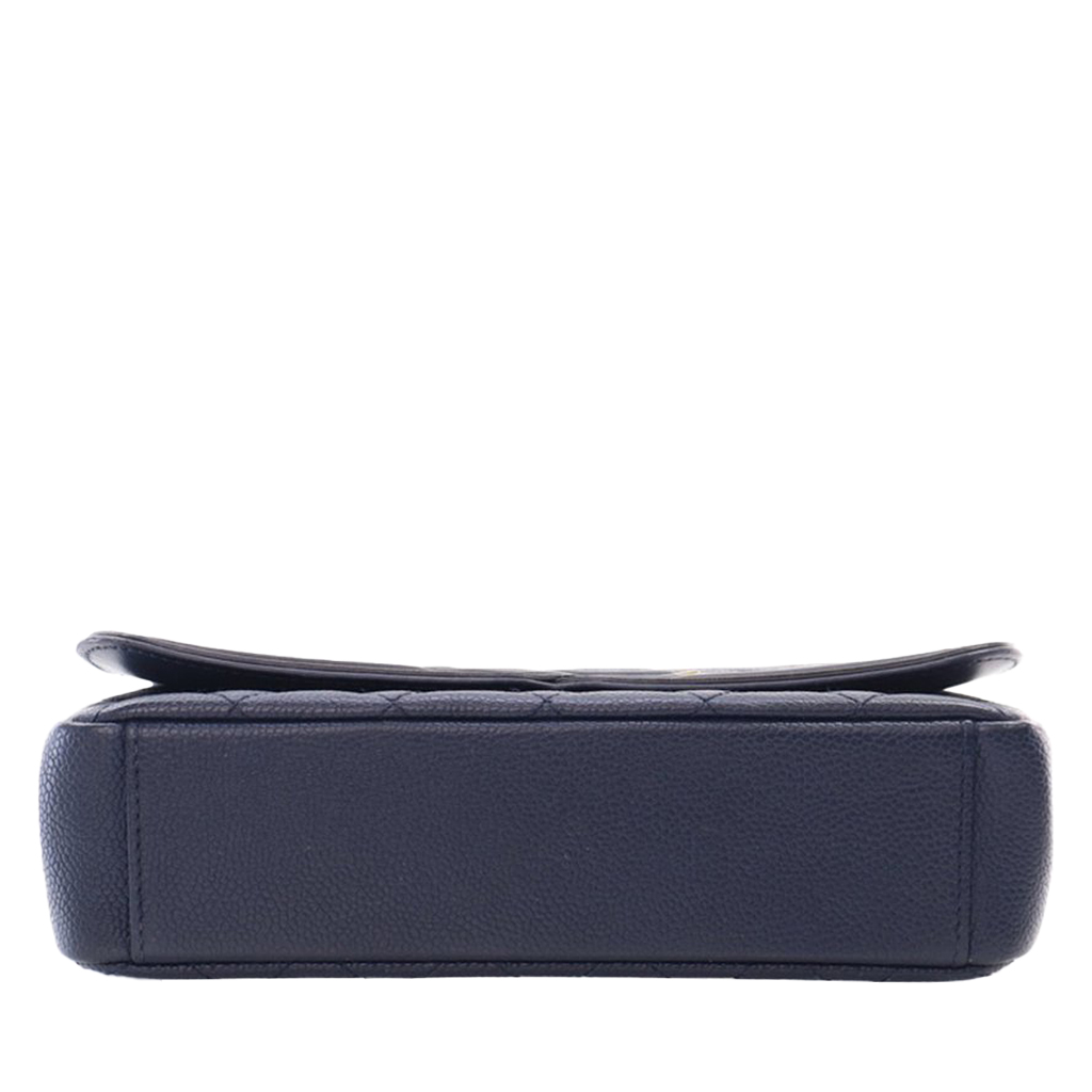 Navy Blue Quilted Caviar Small Filigree Flap Bag Gold Hardware, 2016-2017