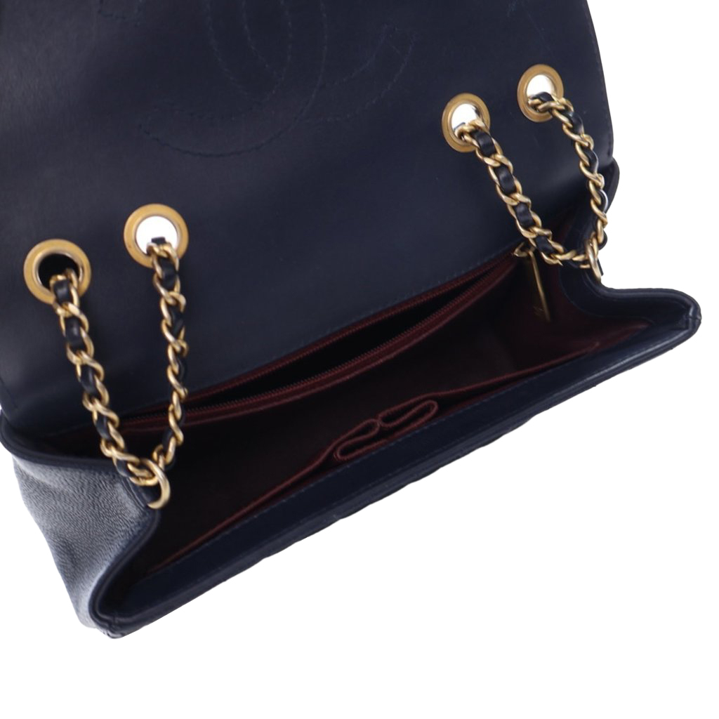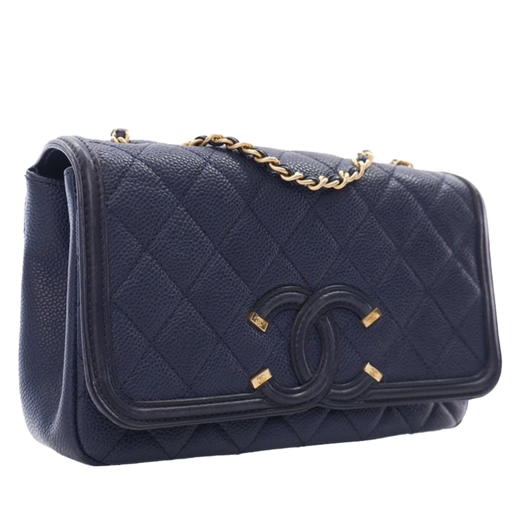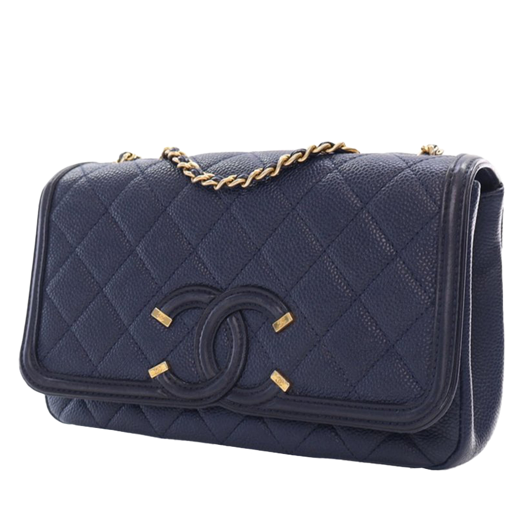 Chanel Navy Blue Quilted Caviar Small Filigree Flap Bag Gold Hardware, 2016-2017The interior is lined in a burgundy textile materialIncludes authenticity cardThis item is final sale