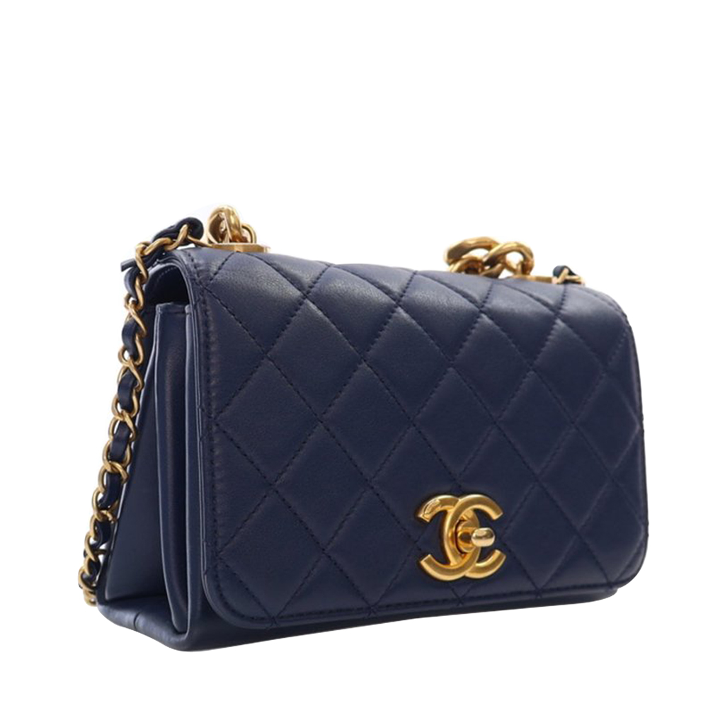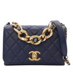 Navy Calfskin Pearl Jewel Chain Mini Flap Bag Aged Gold Hardware, 2021