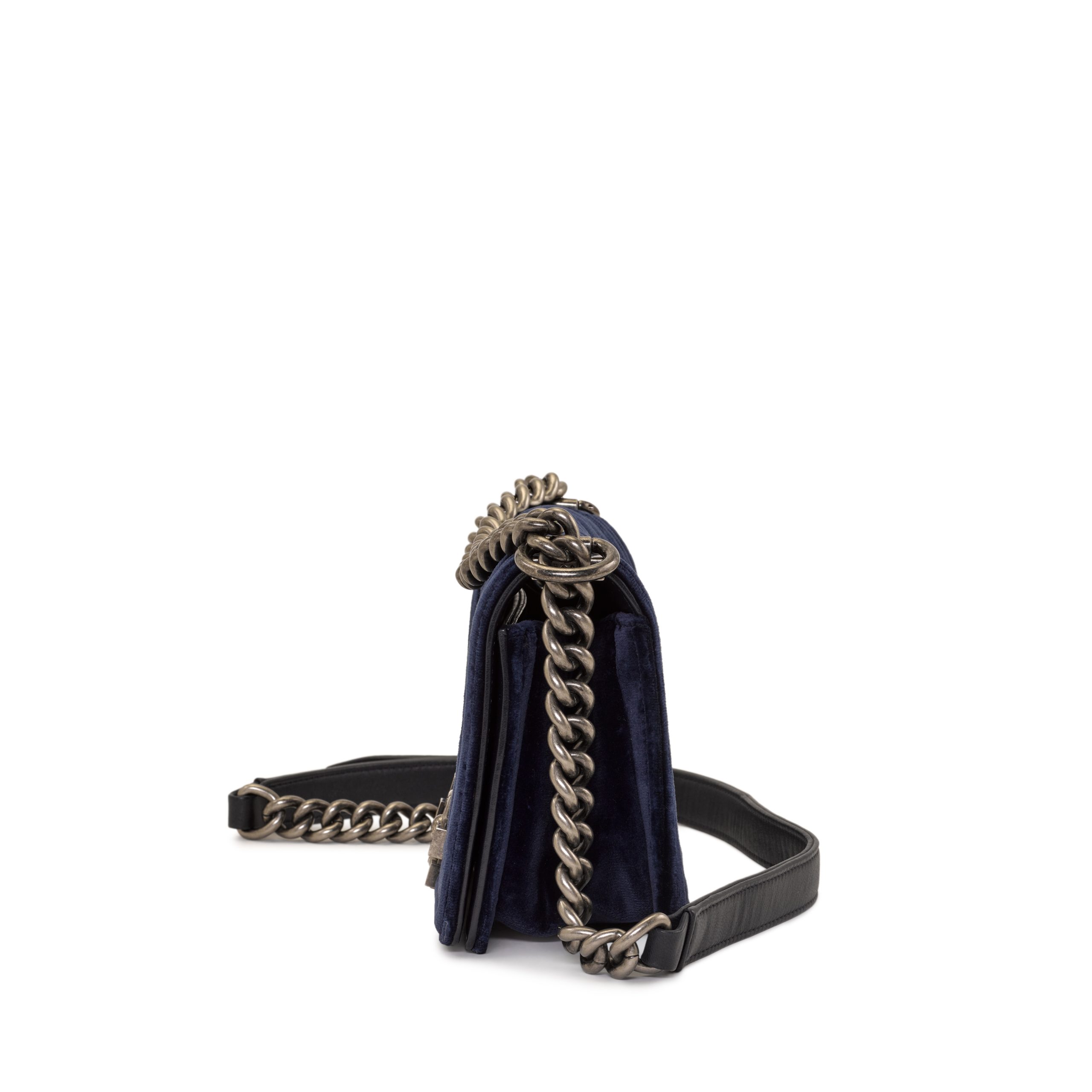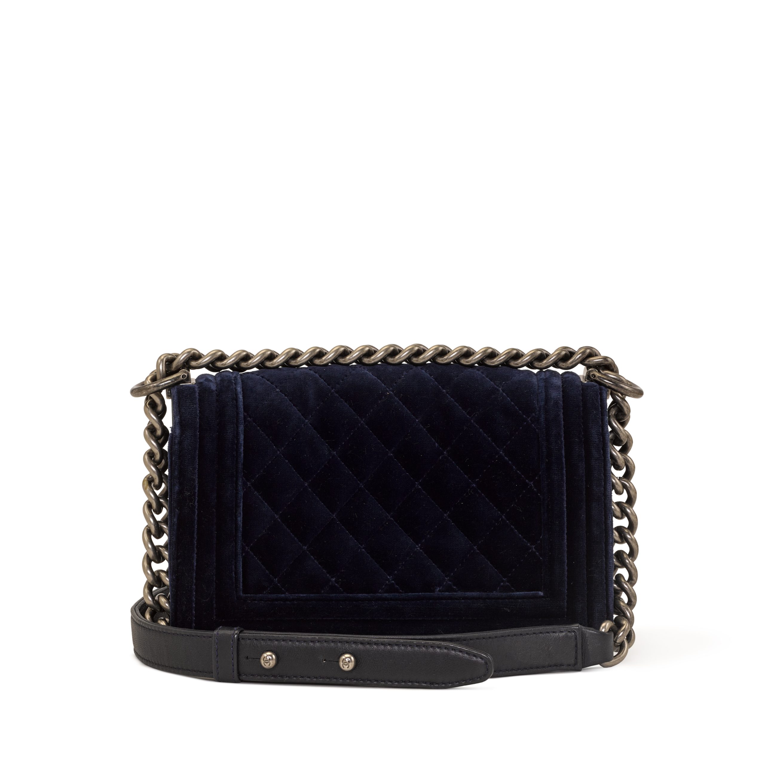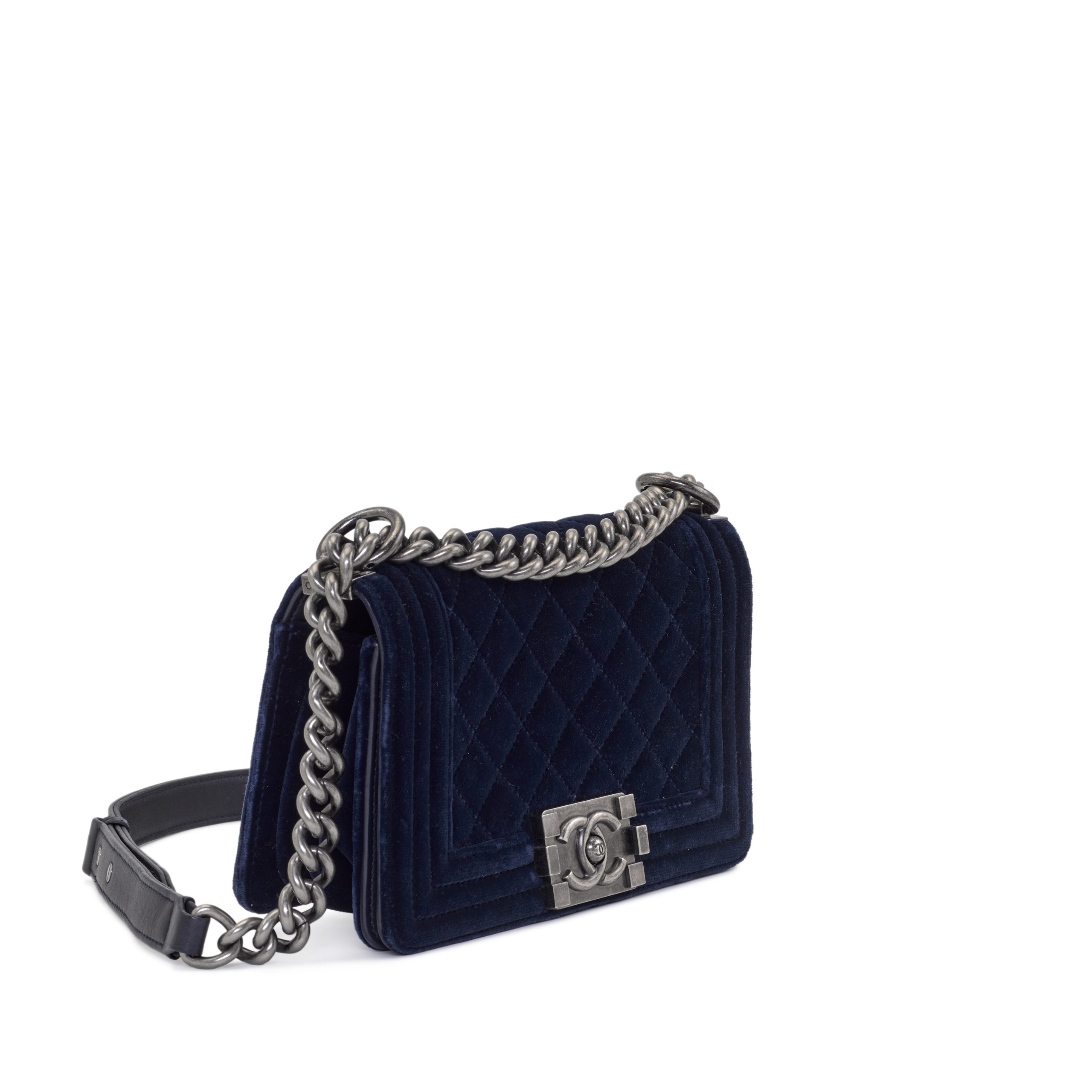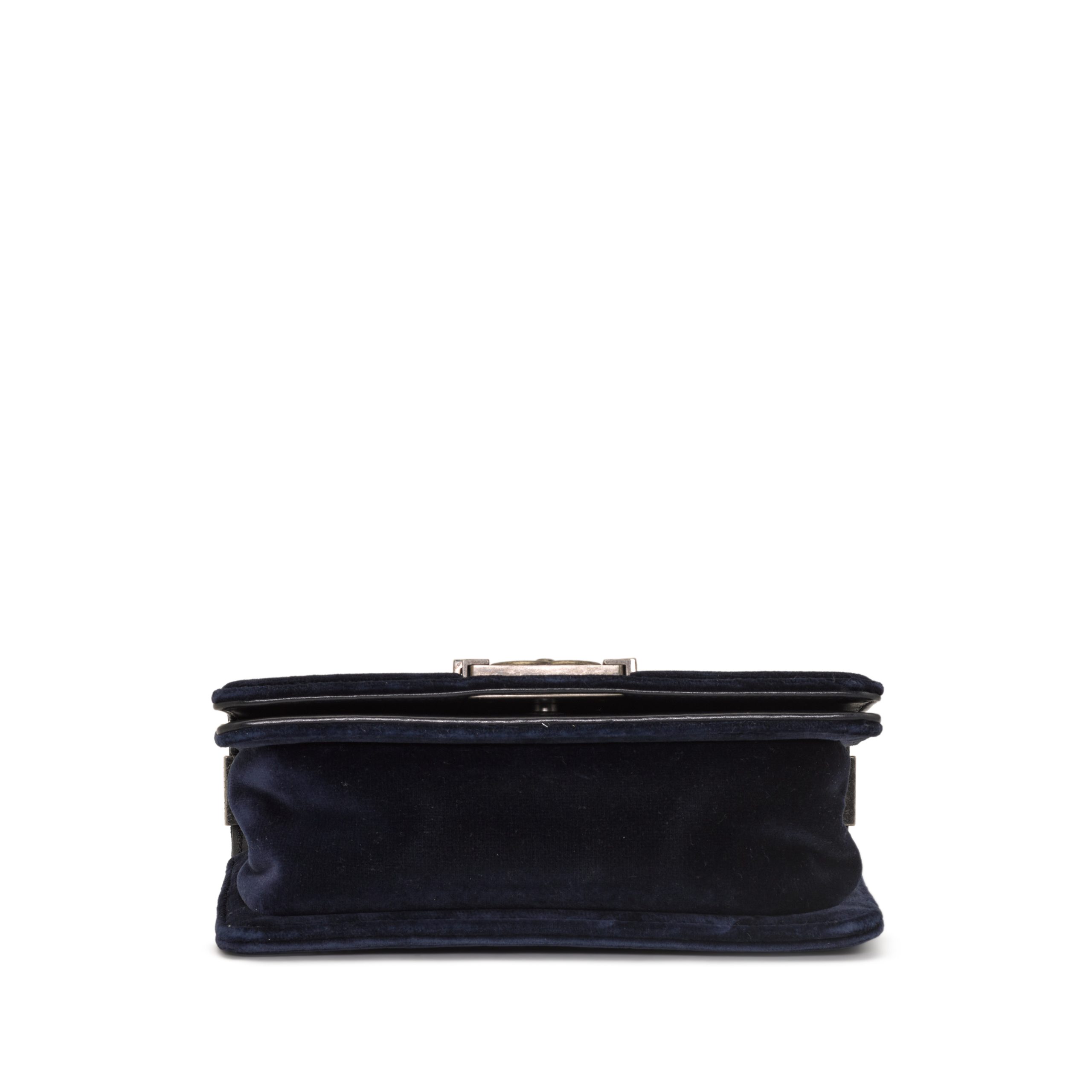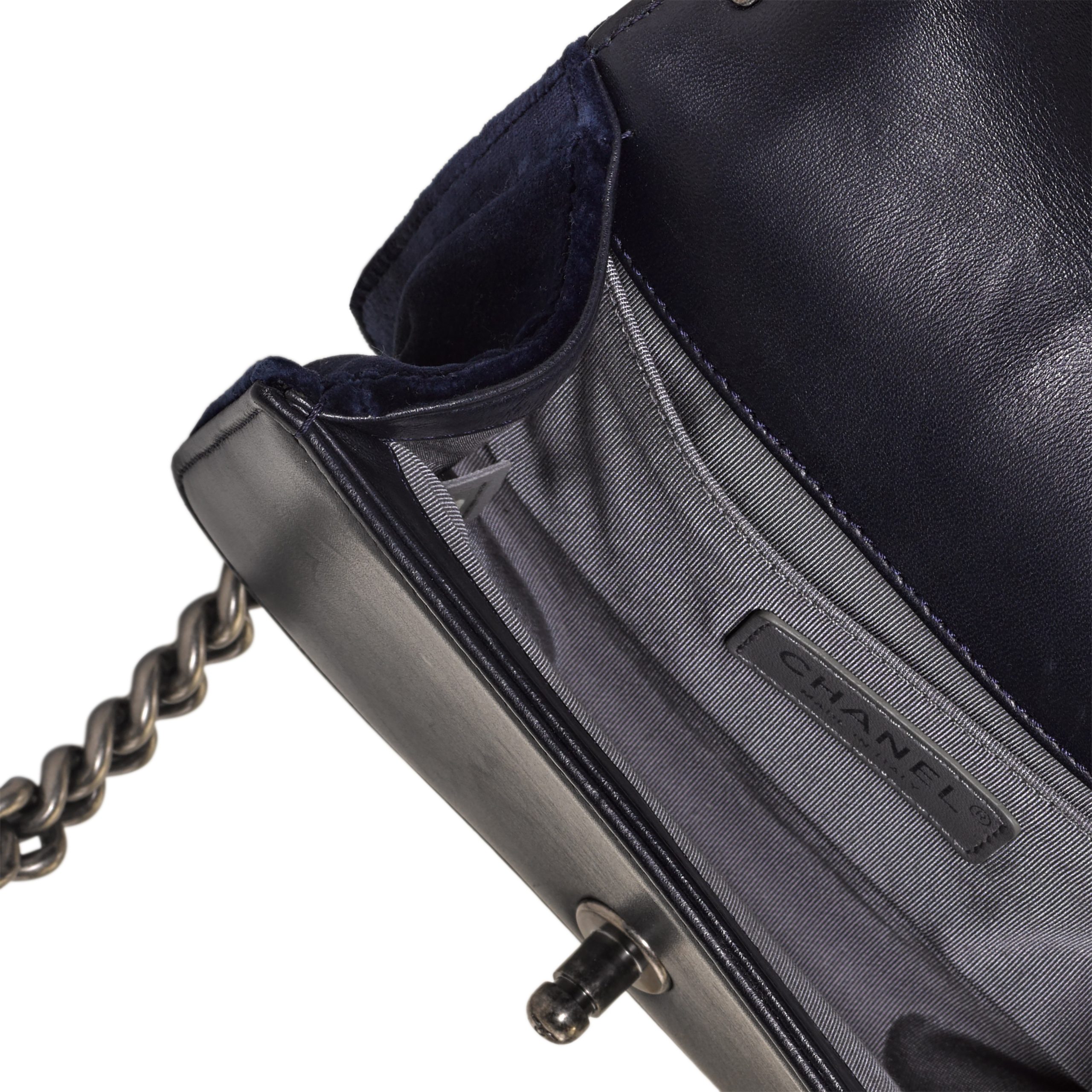 Chanel Navy Quilted Velvet and Lambskin Small Boy Bag Ruthenium Hardware, 2013-14The interior is lined with grey textile materialThis item is final sale