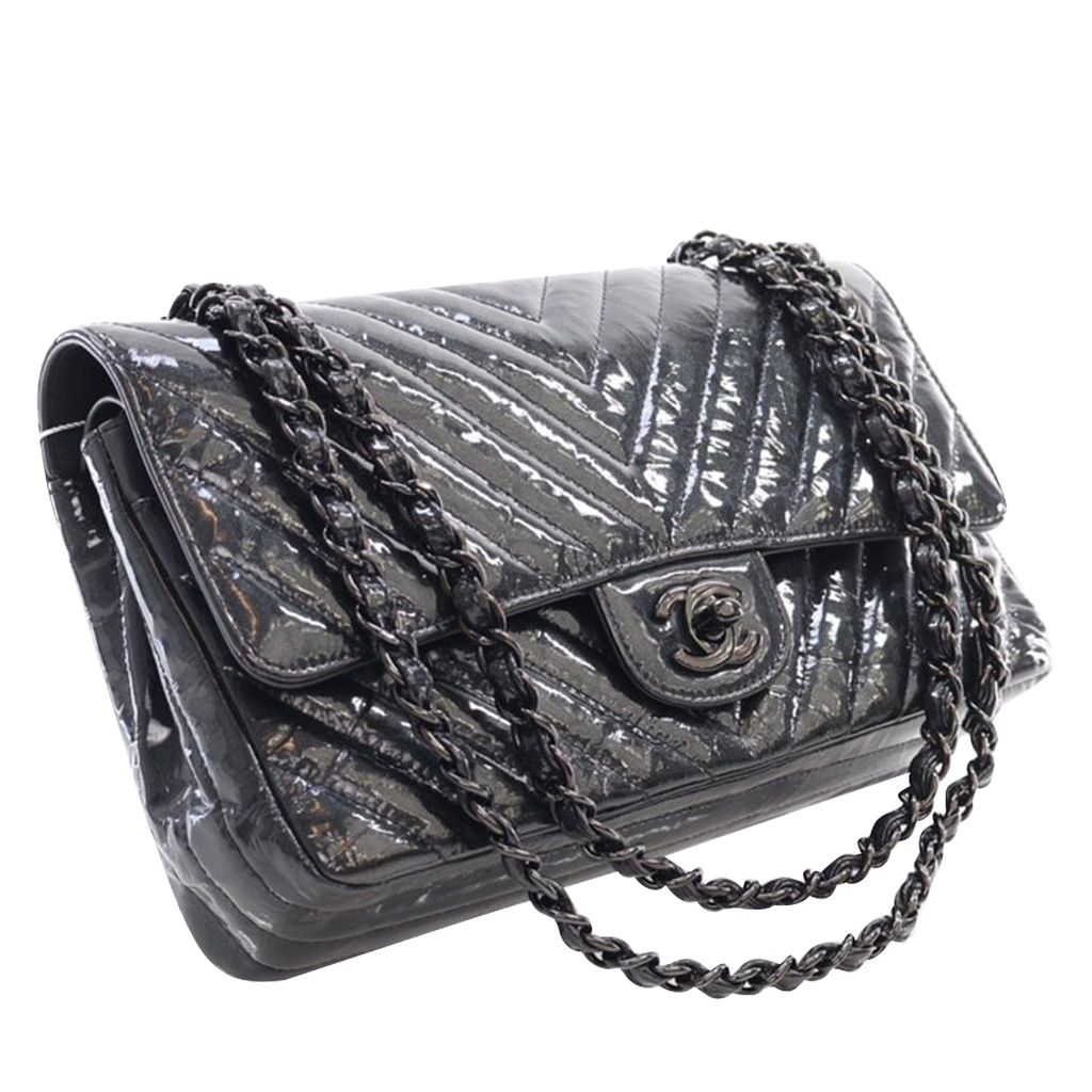 Chanel Patent So Black Medium Classic Double Flap Bag, 2018-2019The interior is lined in a tonal leatherIncludes authenticity card and dust bagThis item is final sale