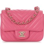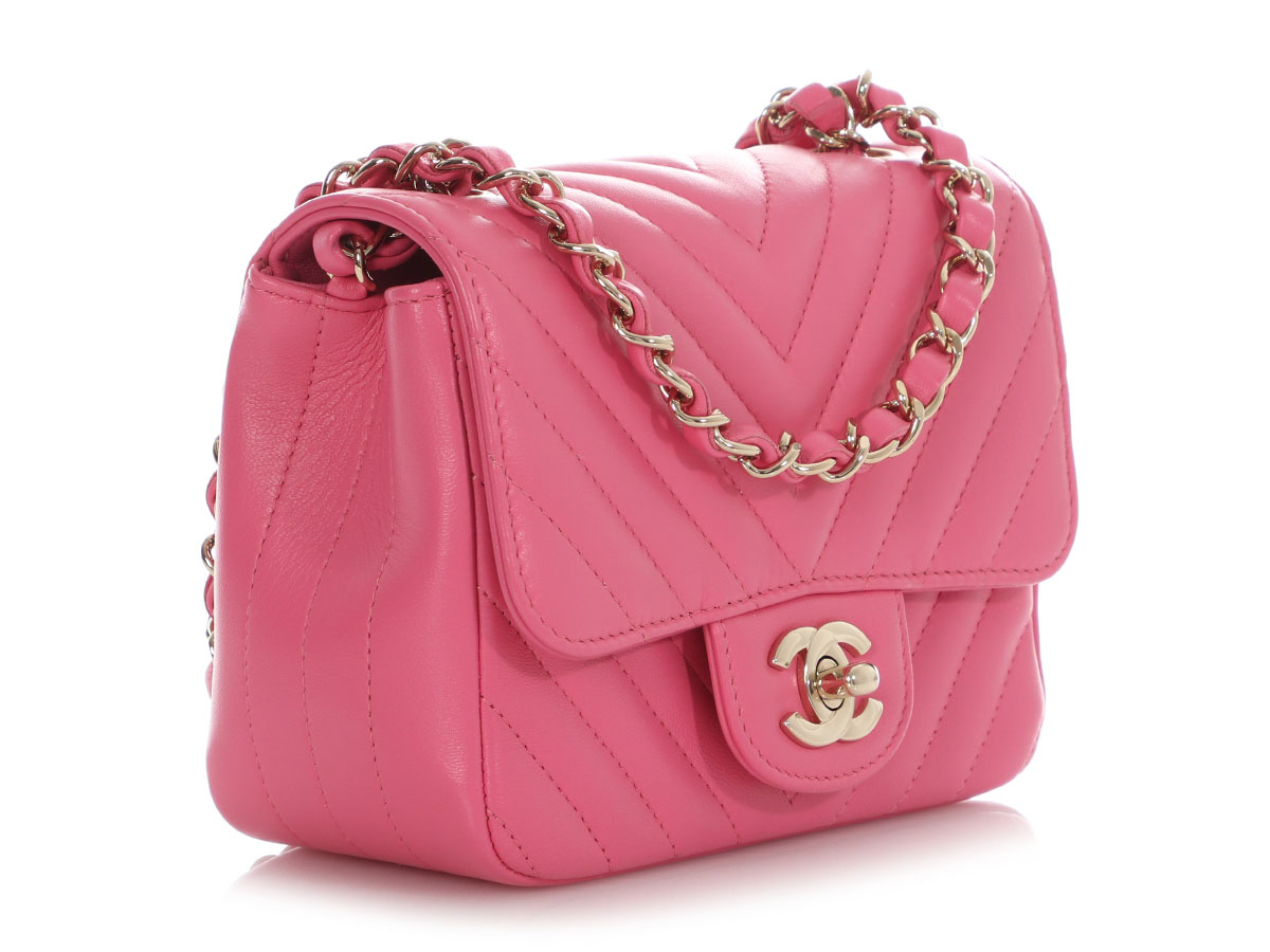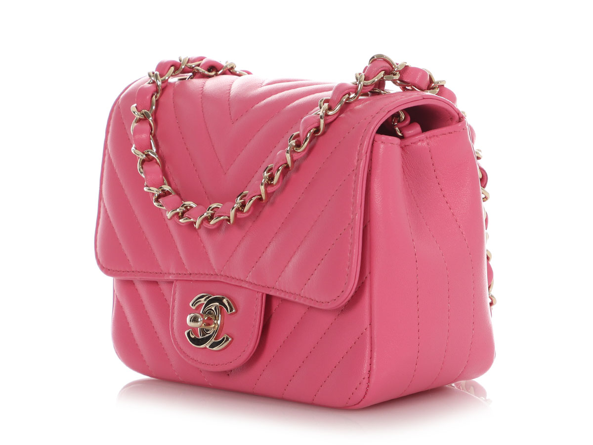 Chanel Pink Chevron-Quilted Lambskin Mini Classic Flap Bag Gold Hardware, 2019The interior is lined in a tonal leatherIncludes authenticity card, dust bag, and boxThis item is final sale