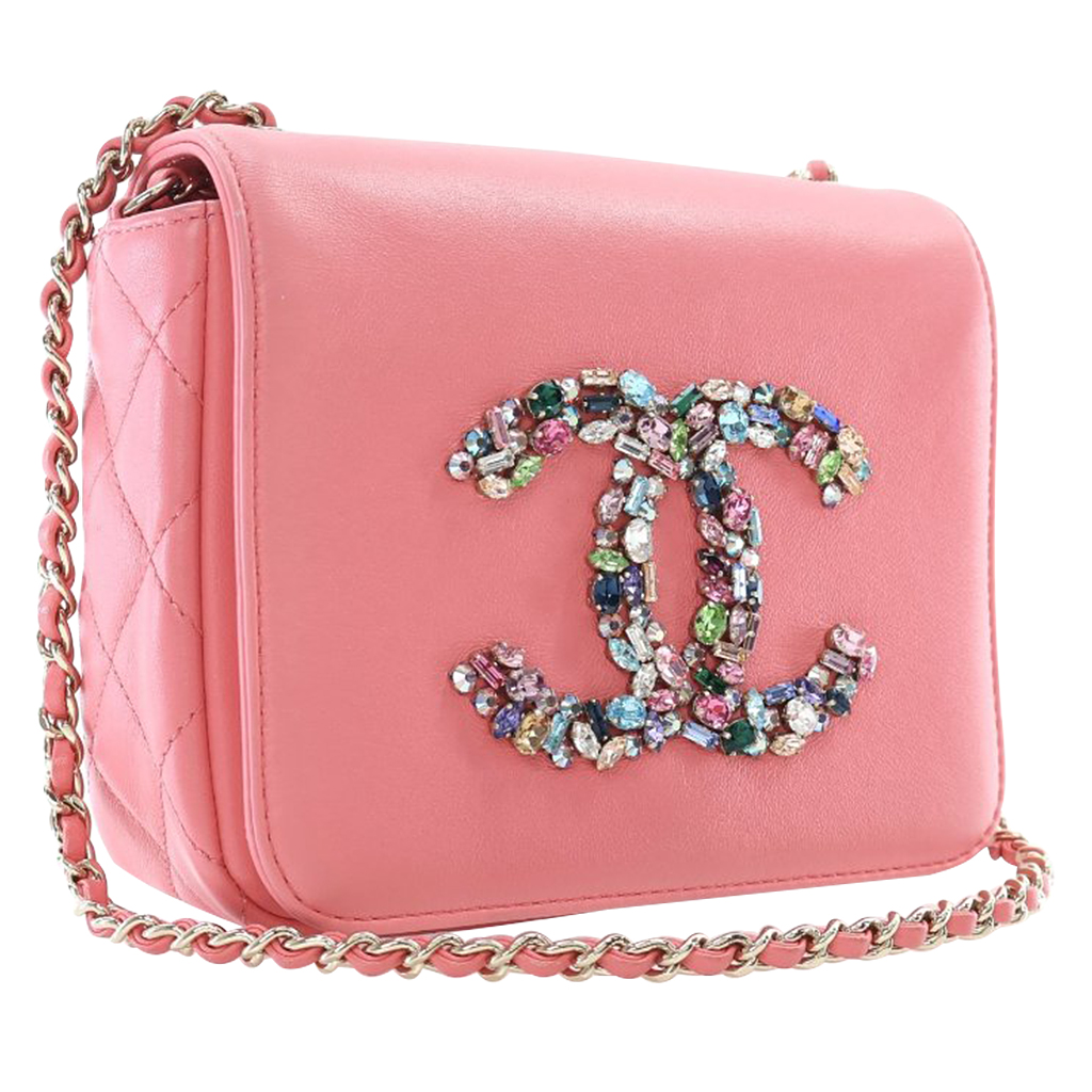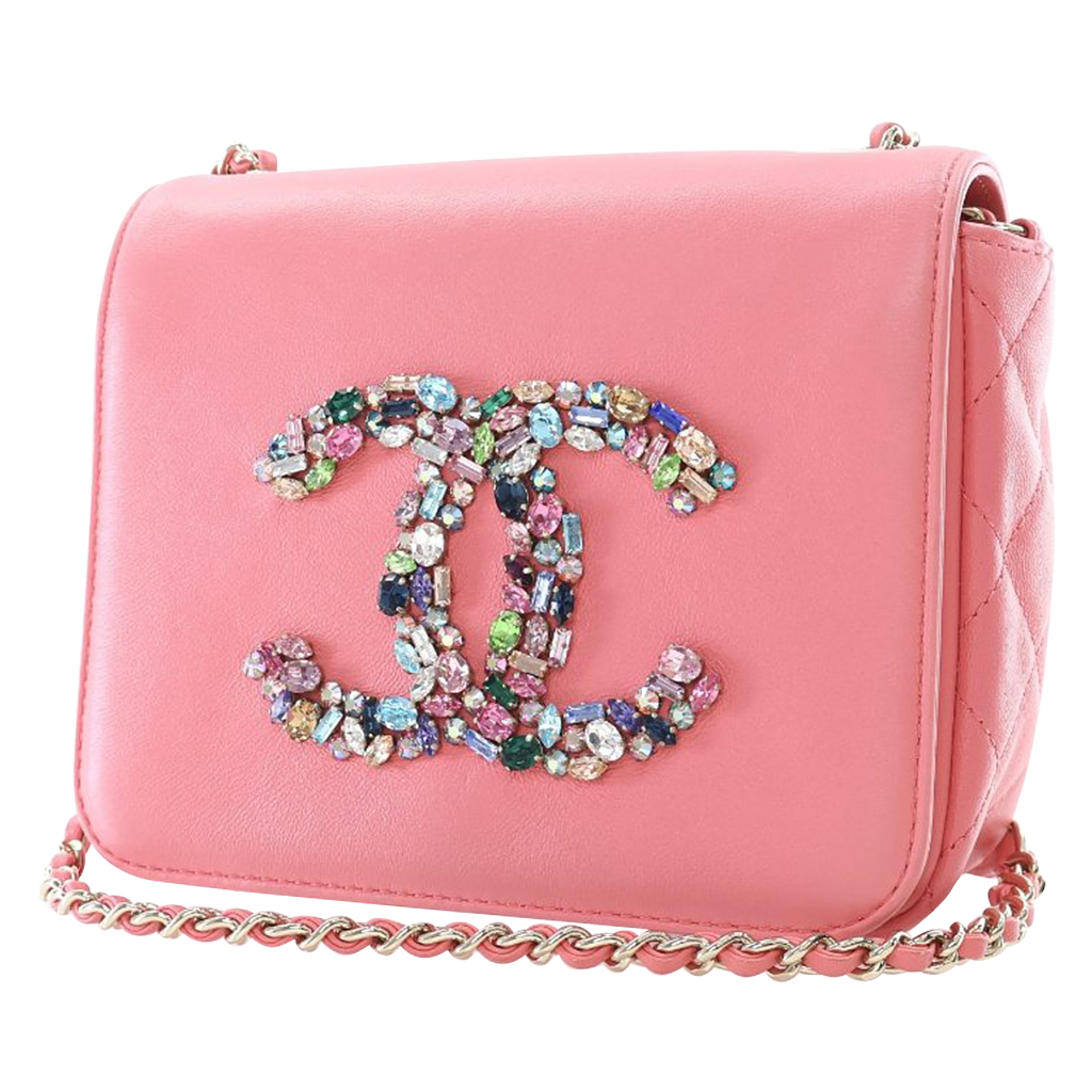 Chanel Pink Lambskin Giant Crystal CC Mini Flap Bag Gold Hardware, 2020The interior is lined in a tonal textile materialIncludes authenticity cardThis item is final sale