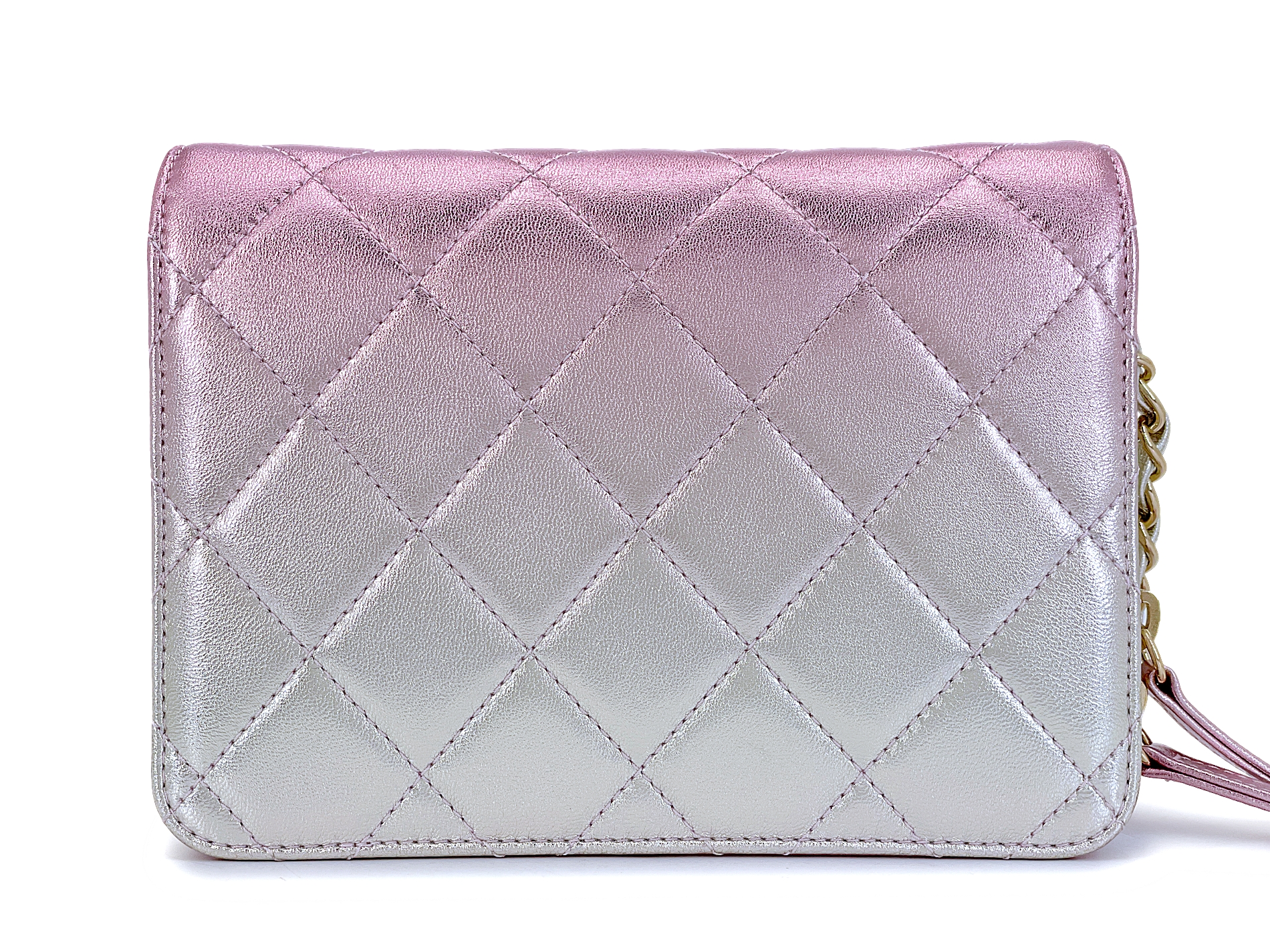 Pink Lavender Metallic Ombre Lambskin Wallet Mini Flap Bag Gold Hardware, 2022