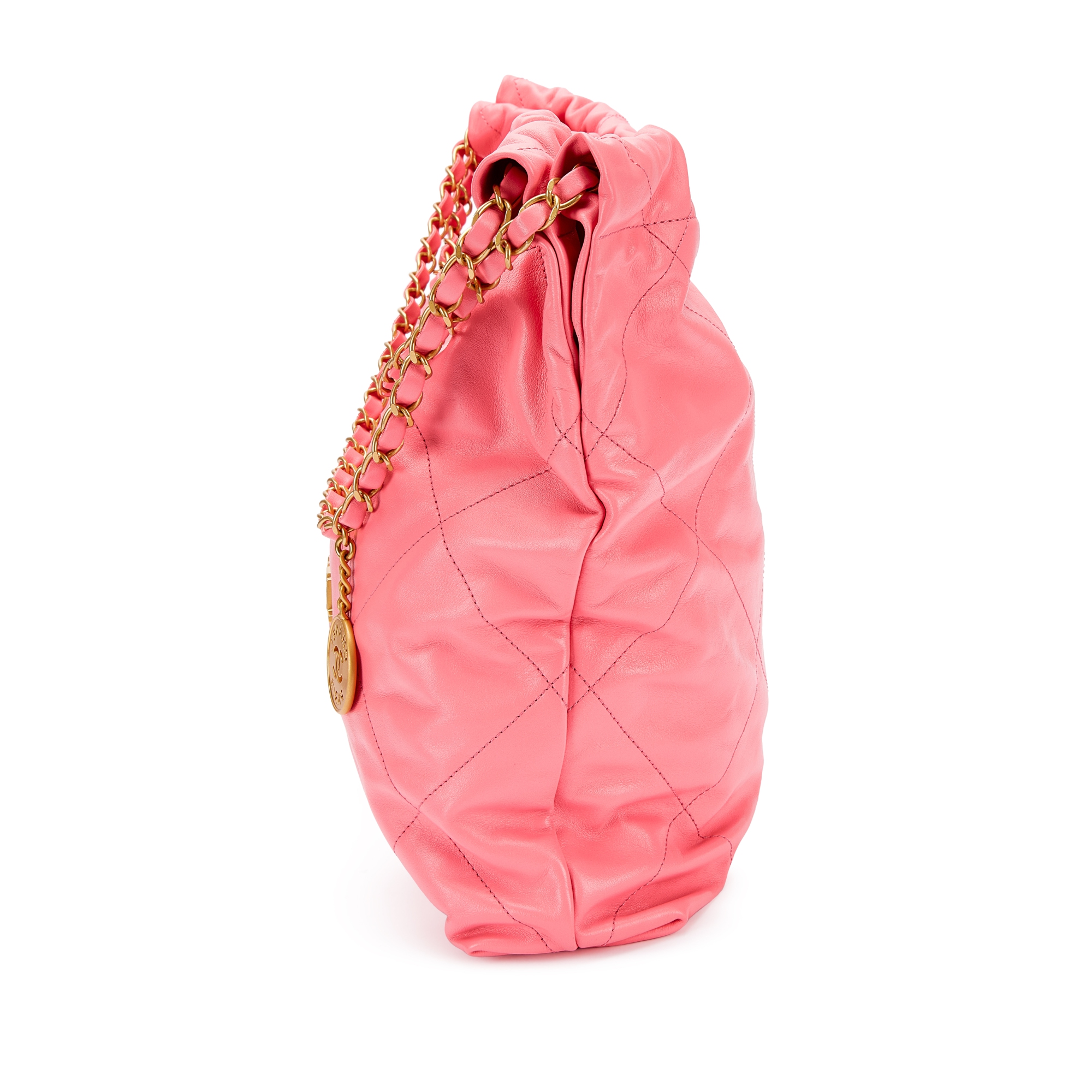 Pink Quilted Calfskin Chanel 22 Brushed Gold Hardware