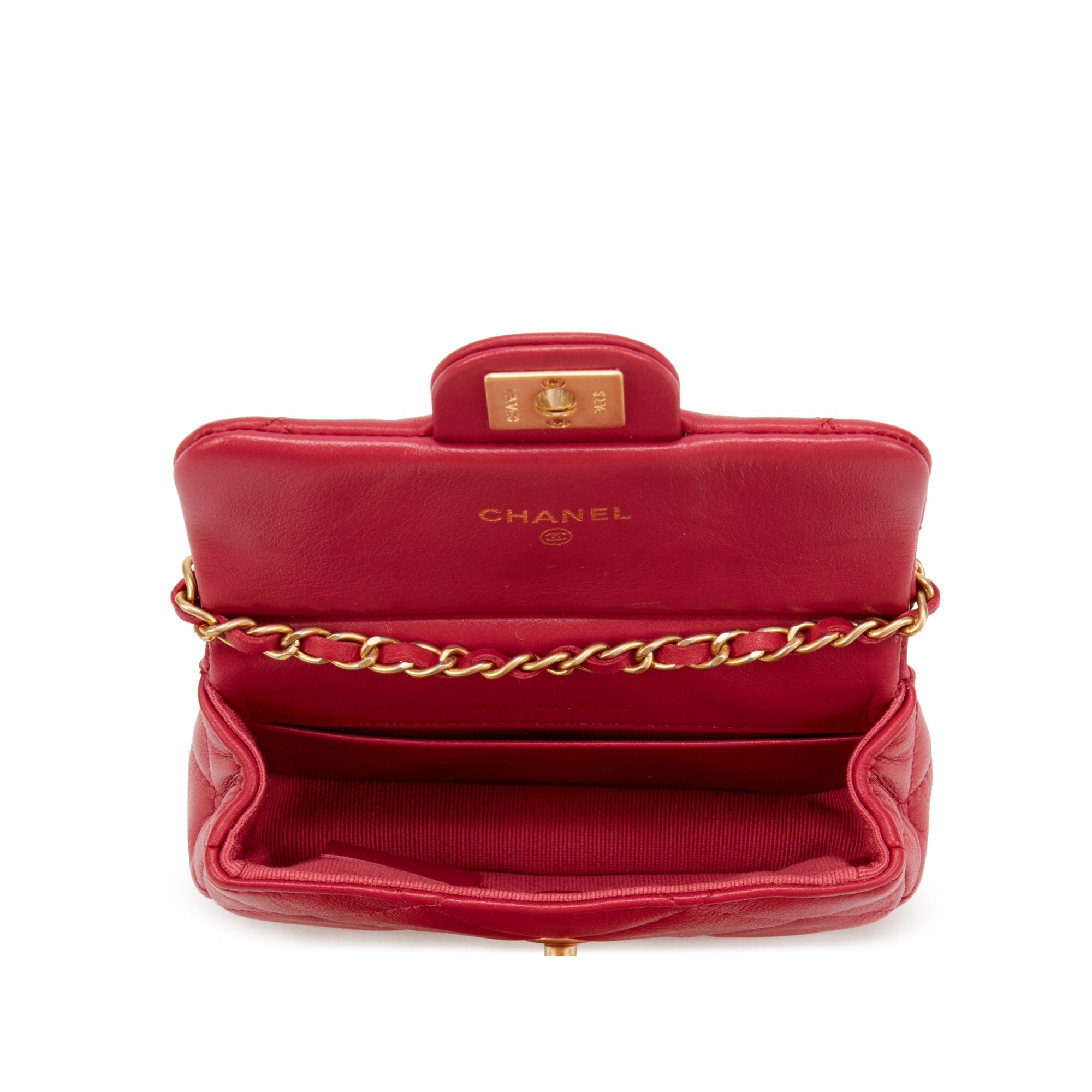 Chanel Pink Quilted Calfskin Flap Card Holder with Chain Gold Hardware, 2021The interior is lined in pink textile materialThis piece was featured on the runway, Look 16, during the 2021 Pre-Fall Mtiers d’Art Le Chteau des Dames collectionIncludes original tag, authenticity card, dustbag, ribbon, camellia flower, and boxThis item is final sale