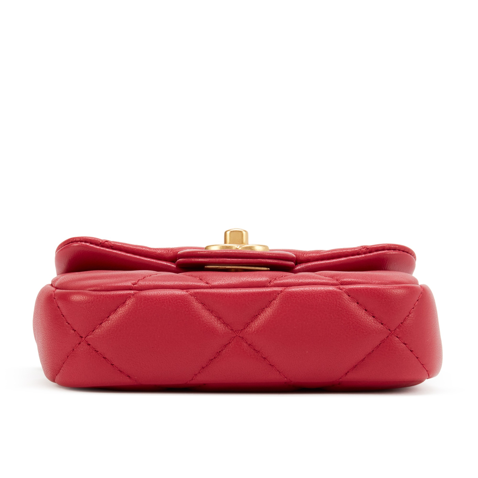 Pink Quilted Calfskin Flap Card Holder with Chain Gold Hardware, 2021