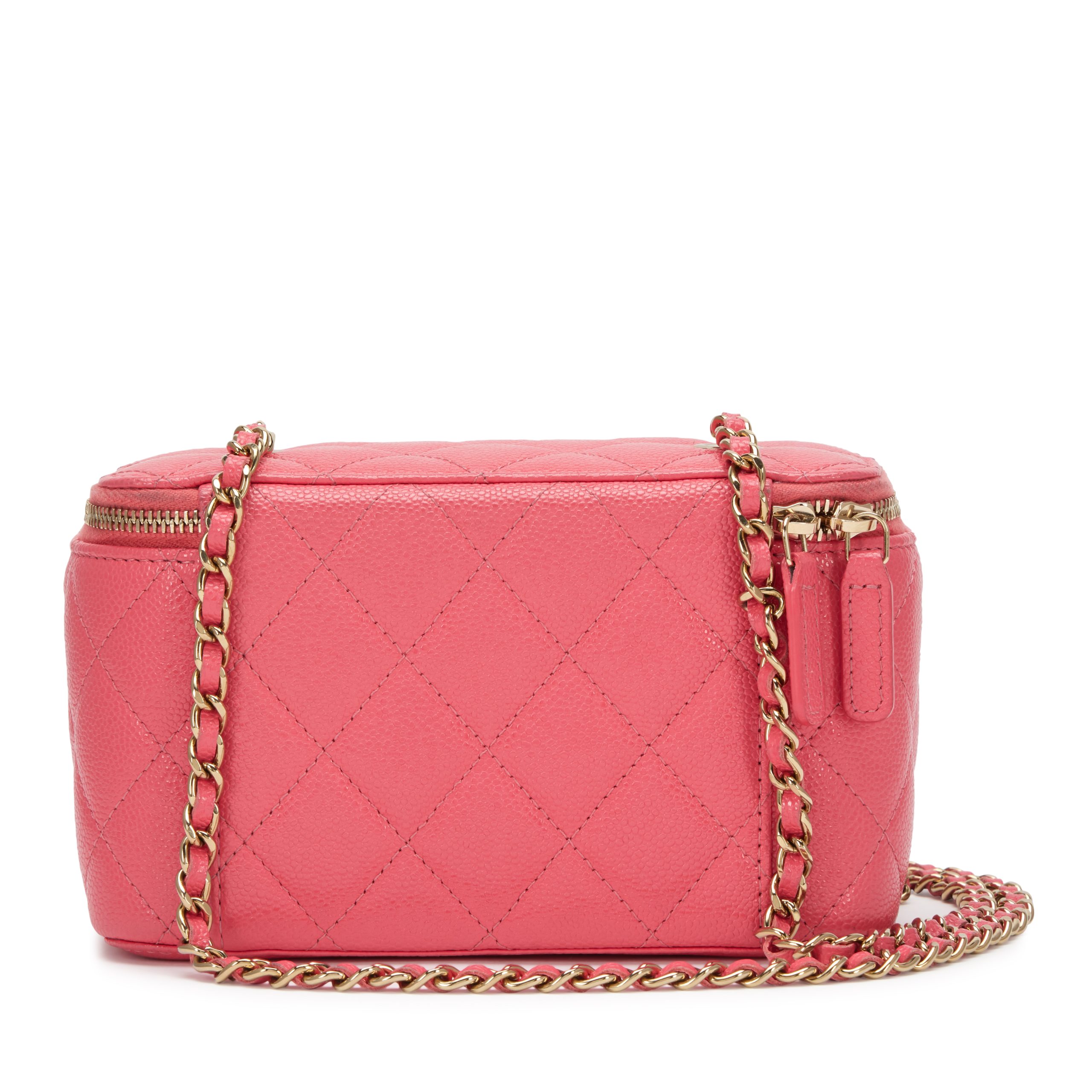 Pink Quilted Caviar Small Vanity Case With Chain Gold Hardware, 2023