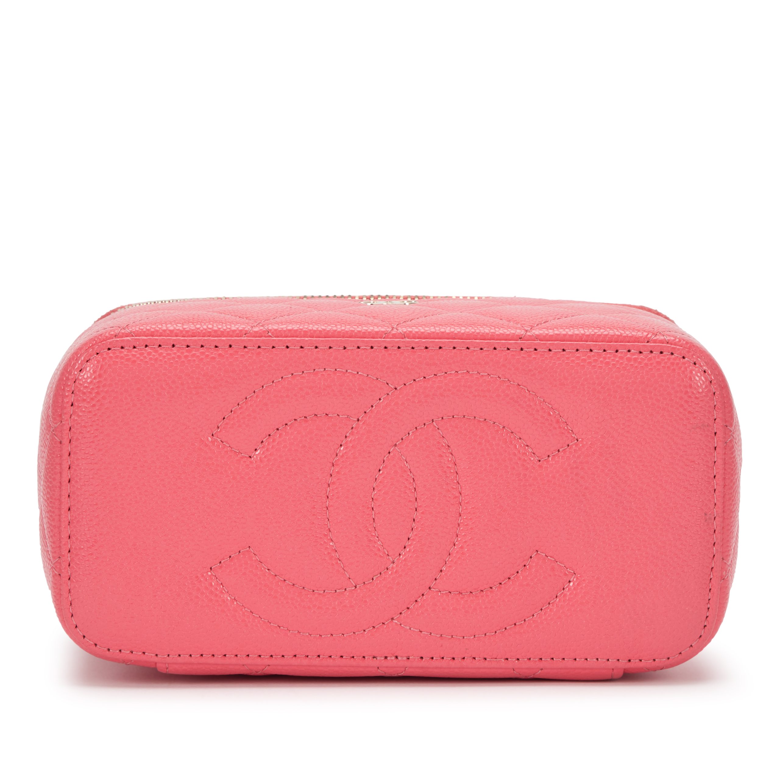 Chanel Pink Quilted Caviar Small Vanity Case With Chain Gold Hardware, 2023The interior is lined in a tonal leatherIncludes tag, information booklet, dust bag, and boxThis item is final sale