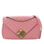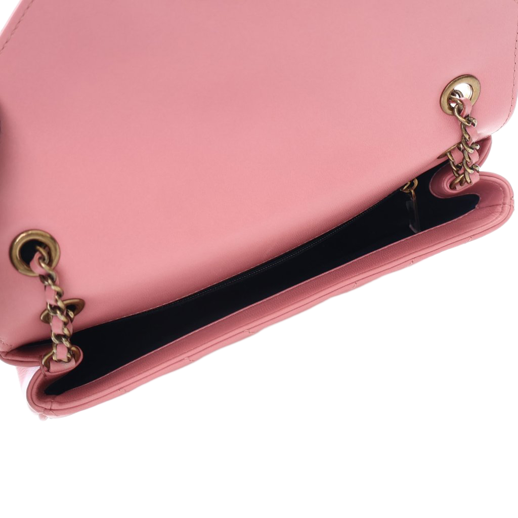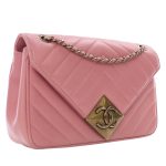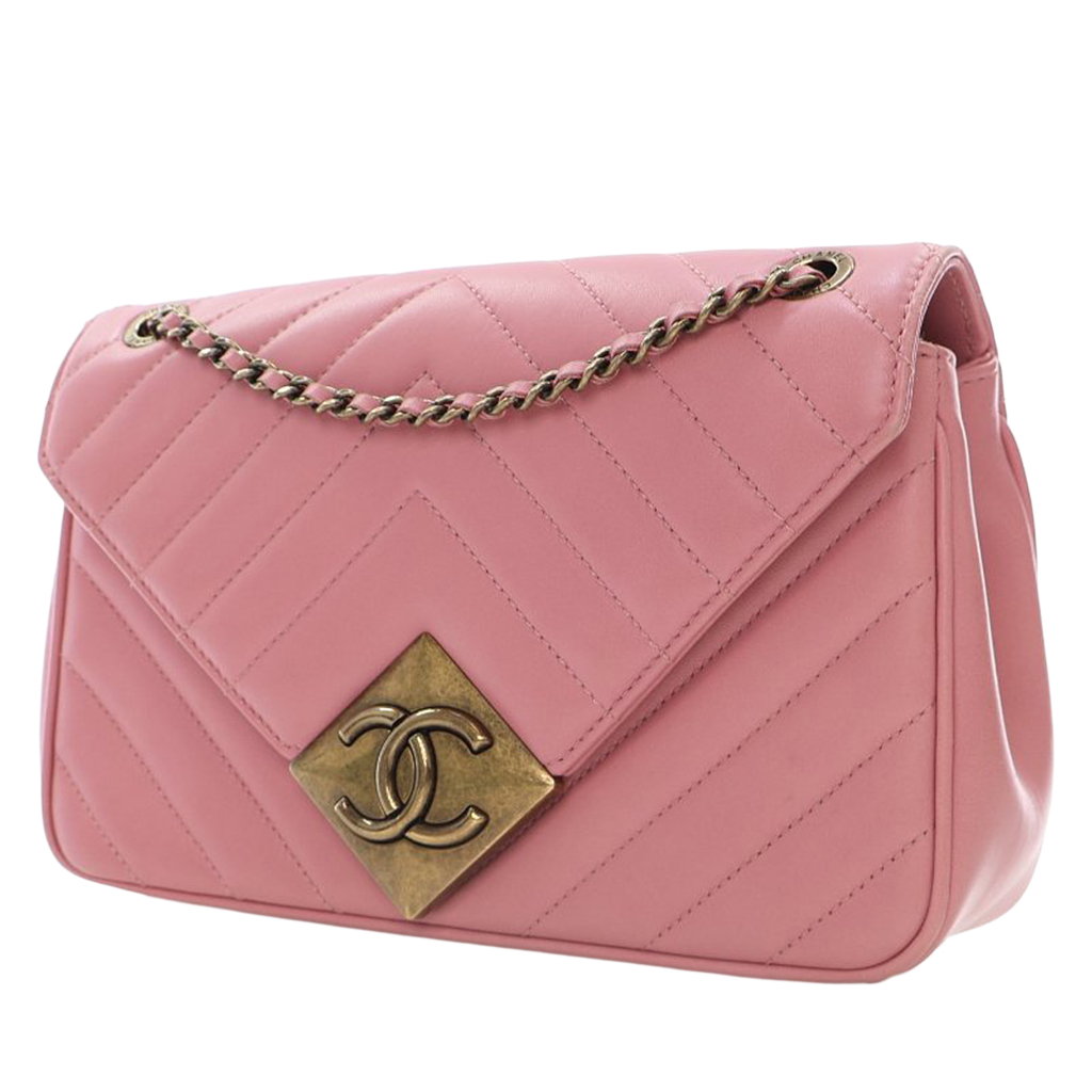 Pink Quilted Chevron Lambskin Mini Pyramid CC Flap Bag Aged Gold Hardware, 2015-2016