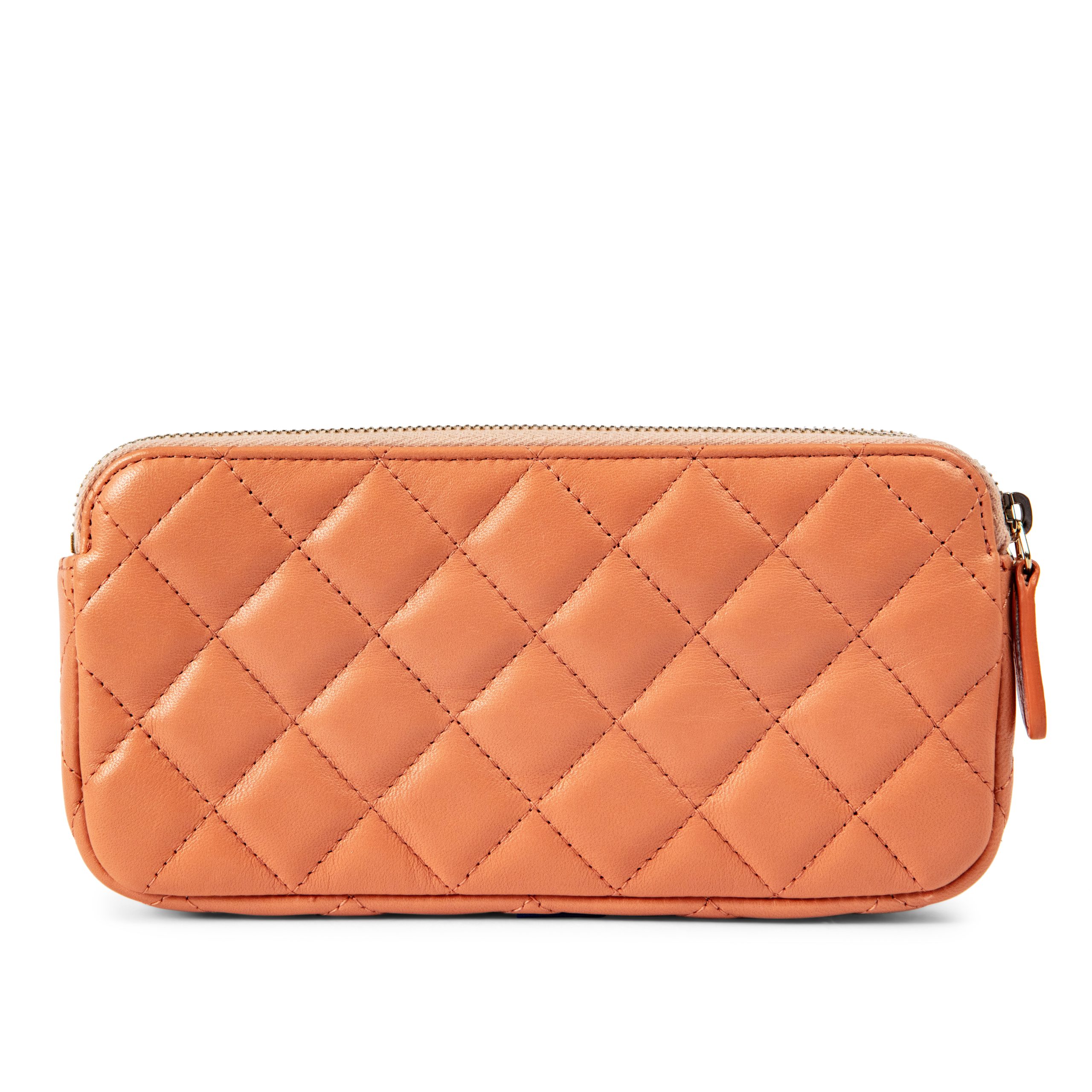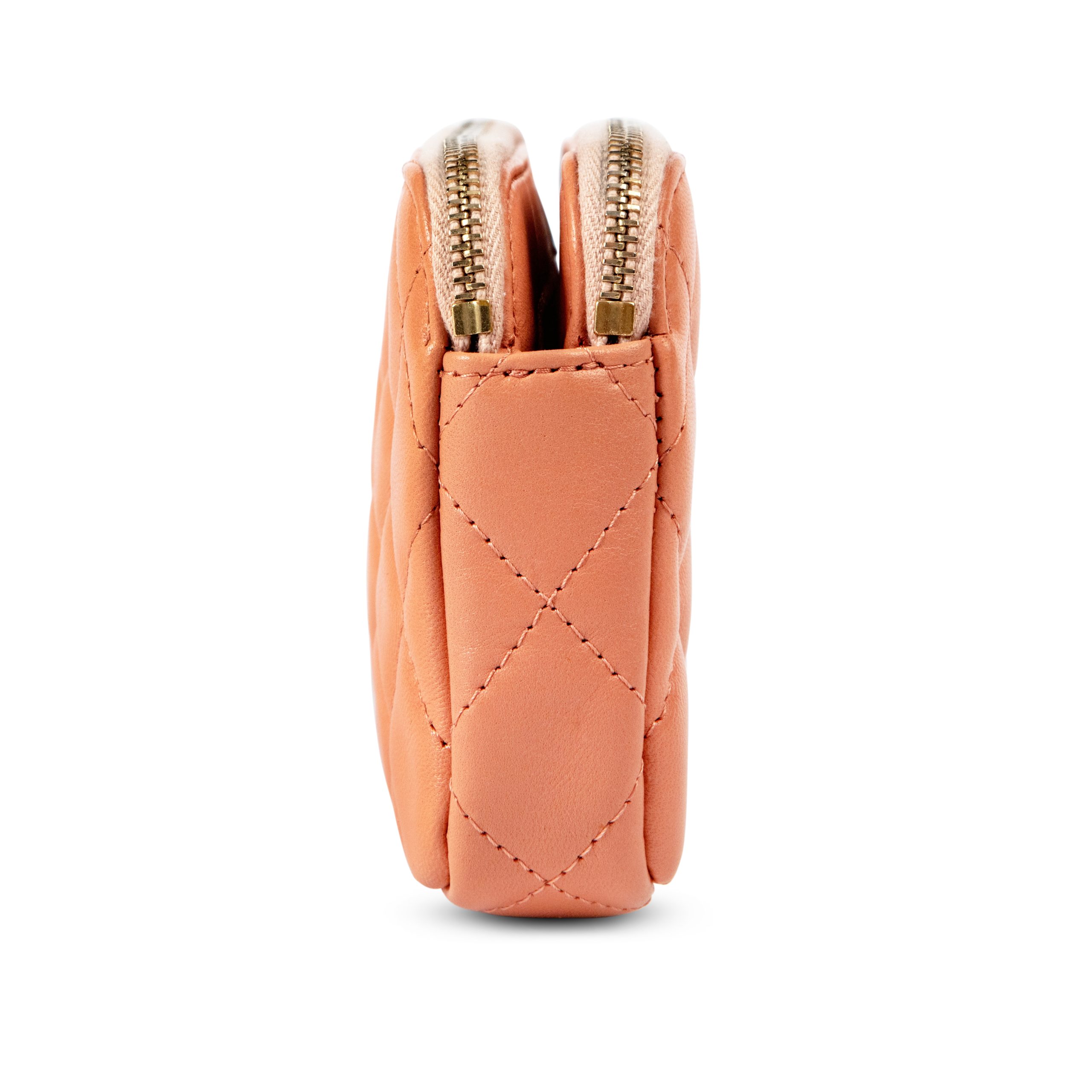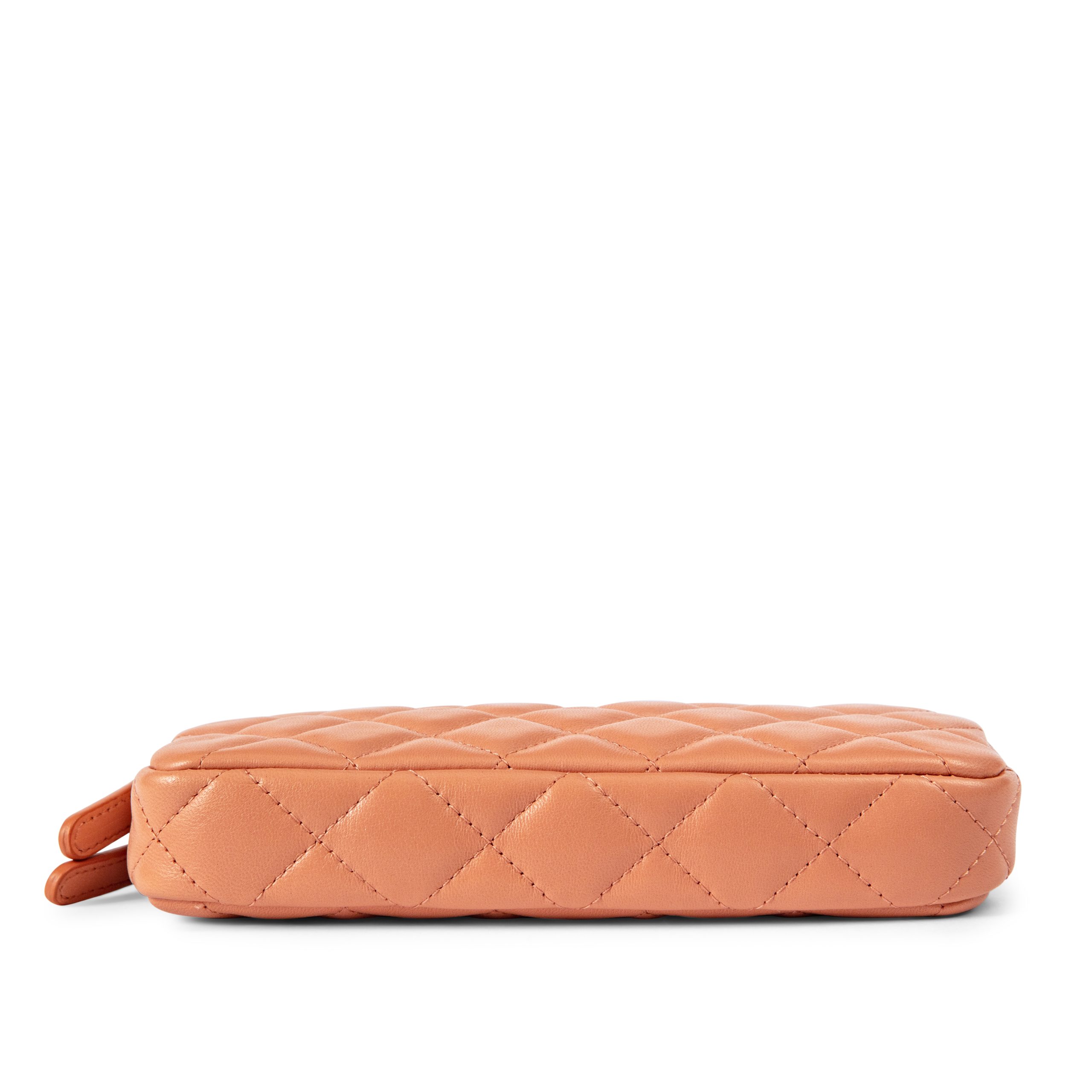 Pink Quilted Lambskin Double Zip Clutch With Chain Gold Hardware, 2018