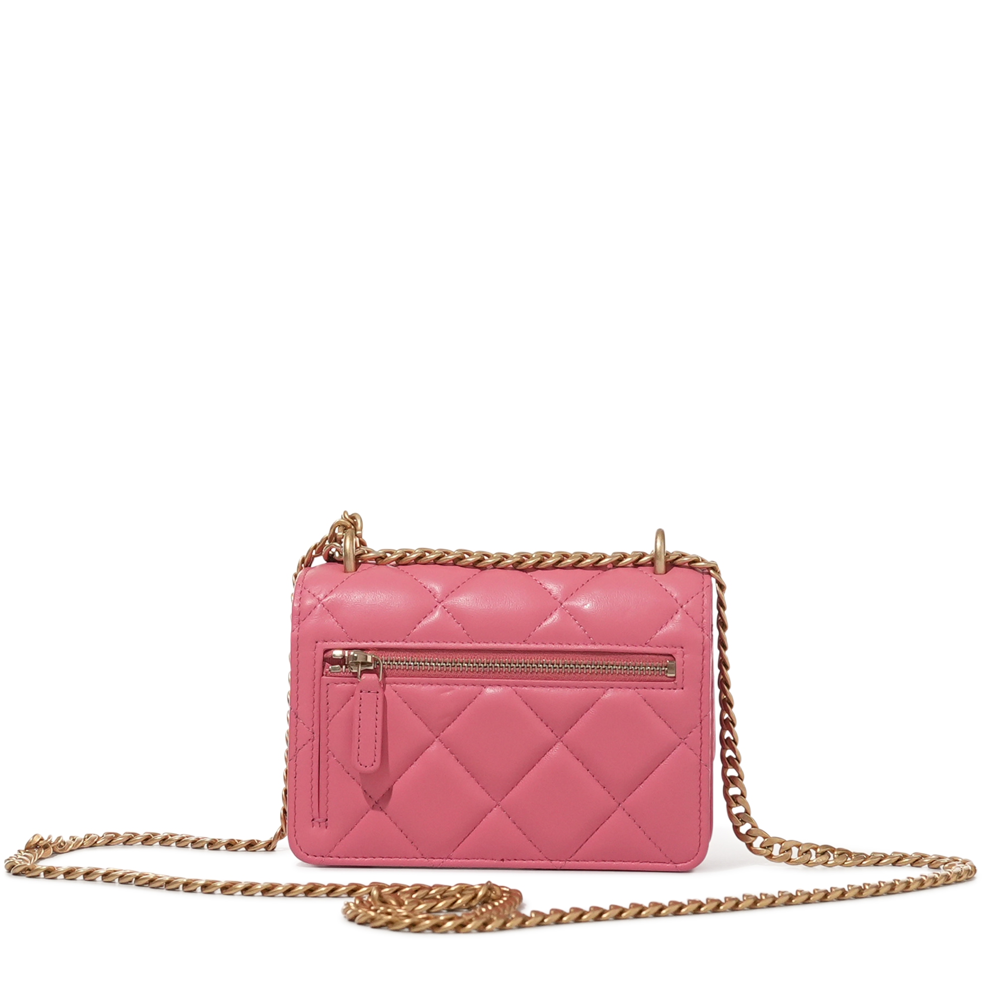 Pink Quilted Lambskin Flap Bag Aged Gold Hardware, 2021