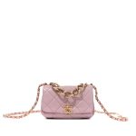 Pink Quilted Lambskin Flap Bag Gold Hardware