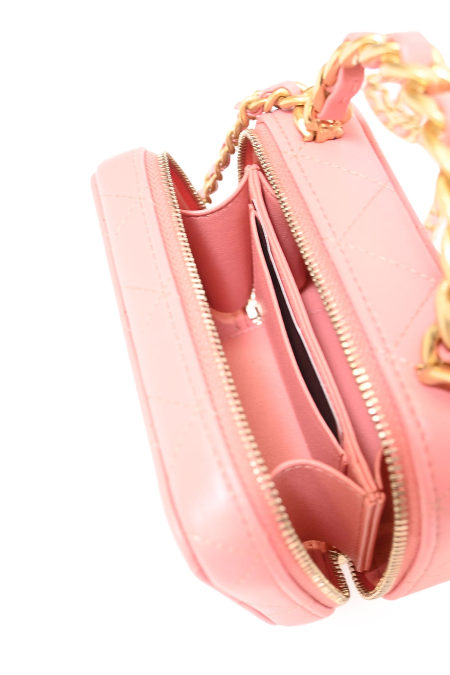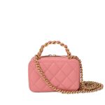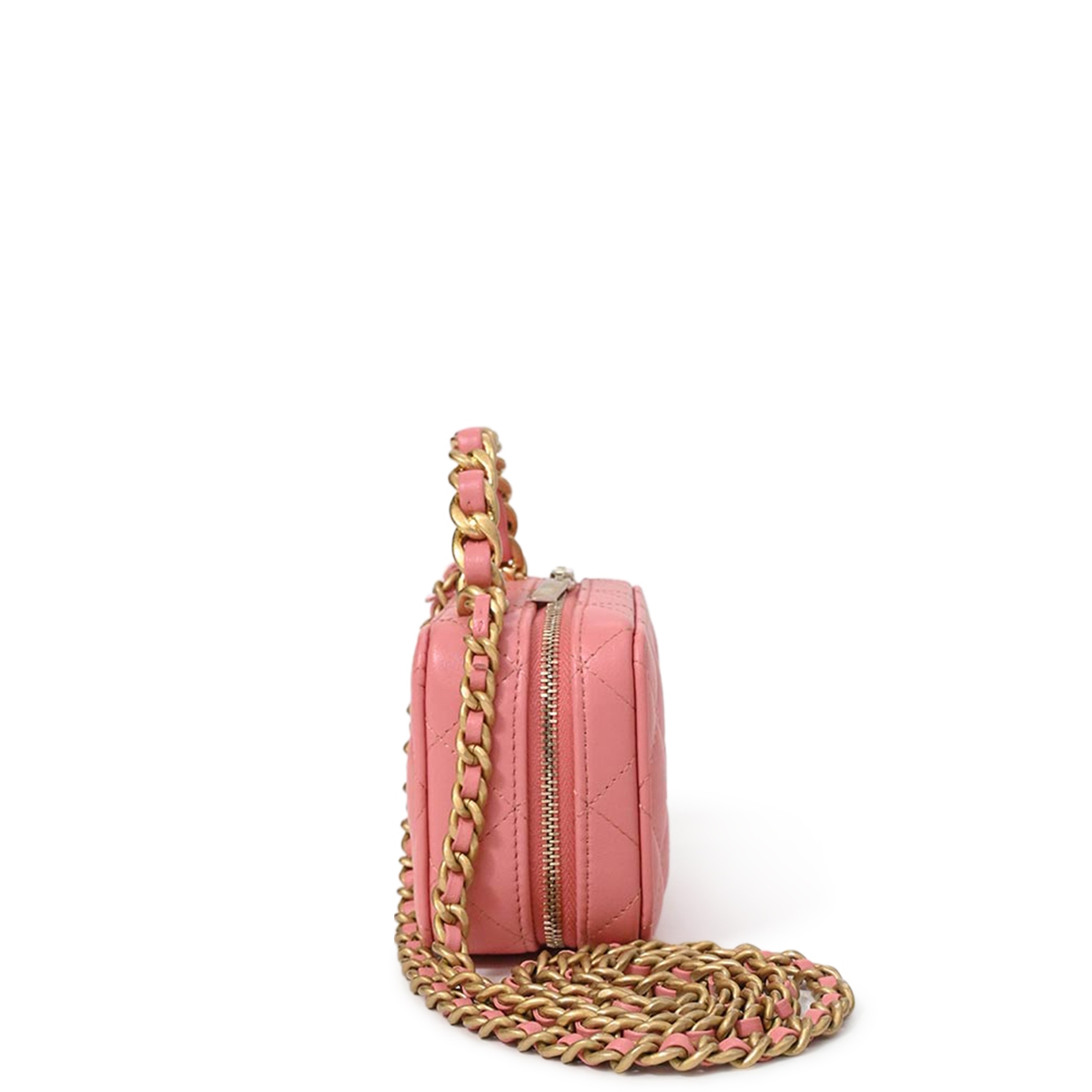Pink Quilted Lambskin Top Handle Vanity Case Aged Gold Hardware, 2022