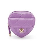 Purple Quilted Lambskin Heart Zipped Arm Coin Purse Gold Hardware, 2022