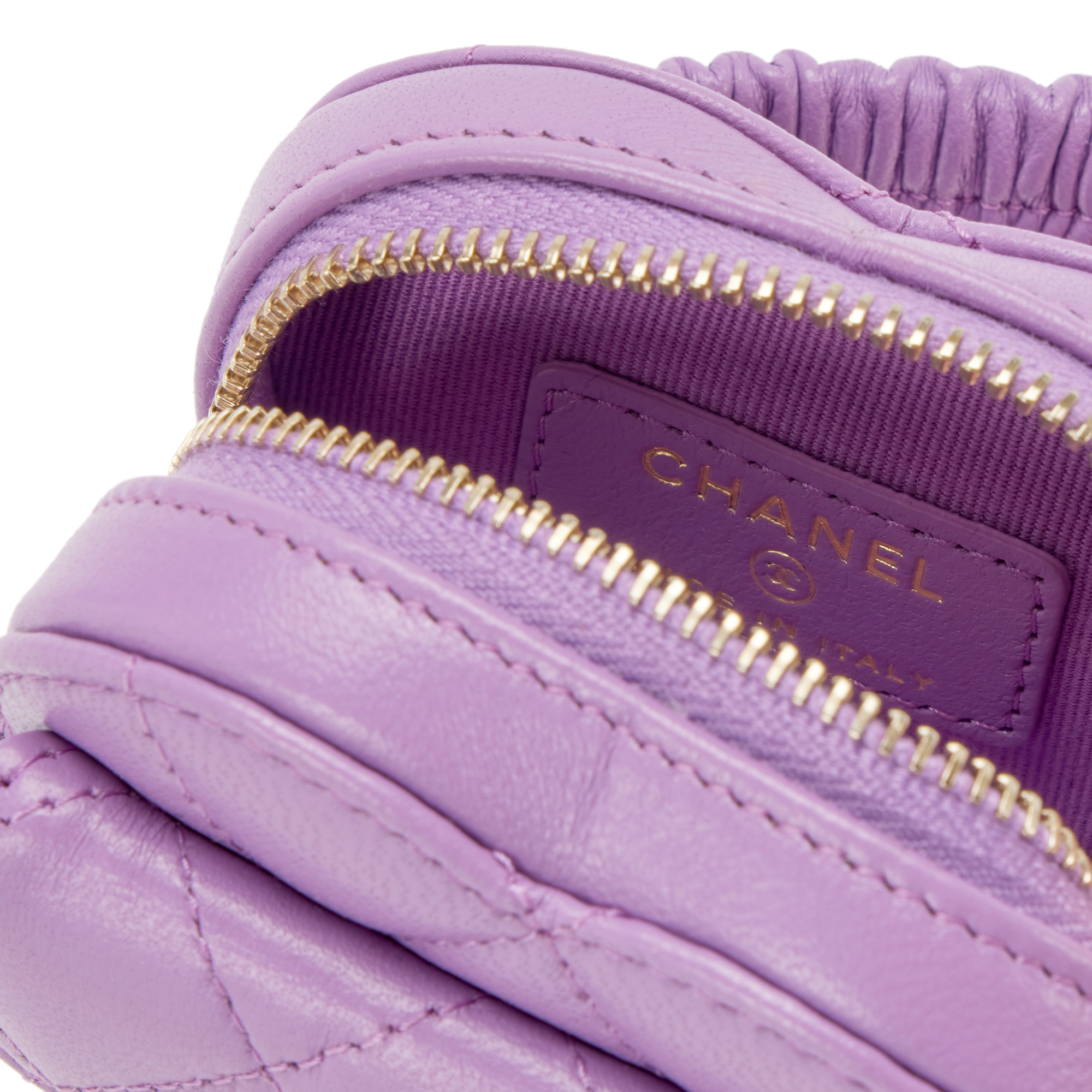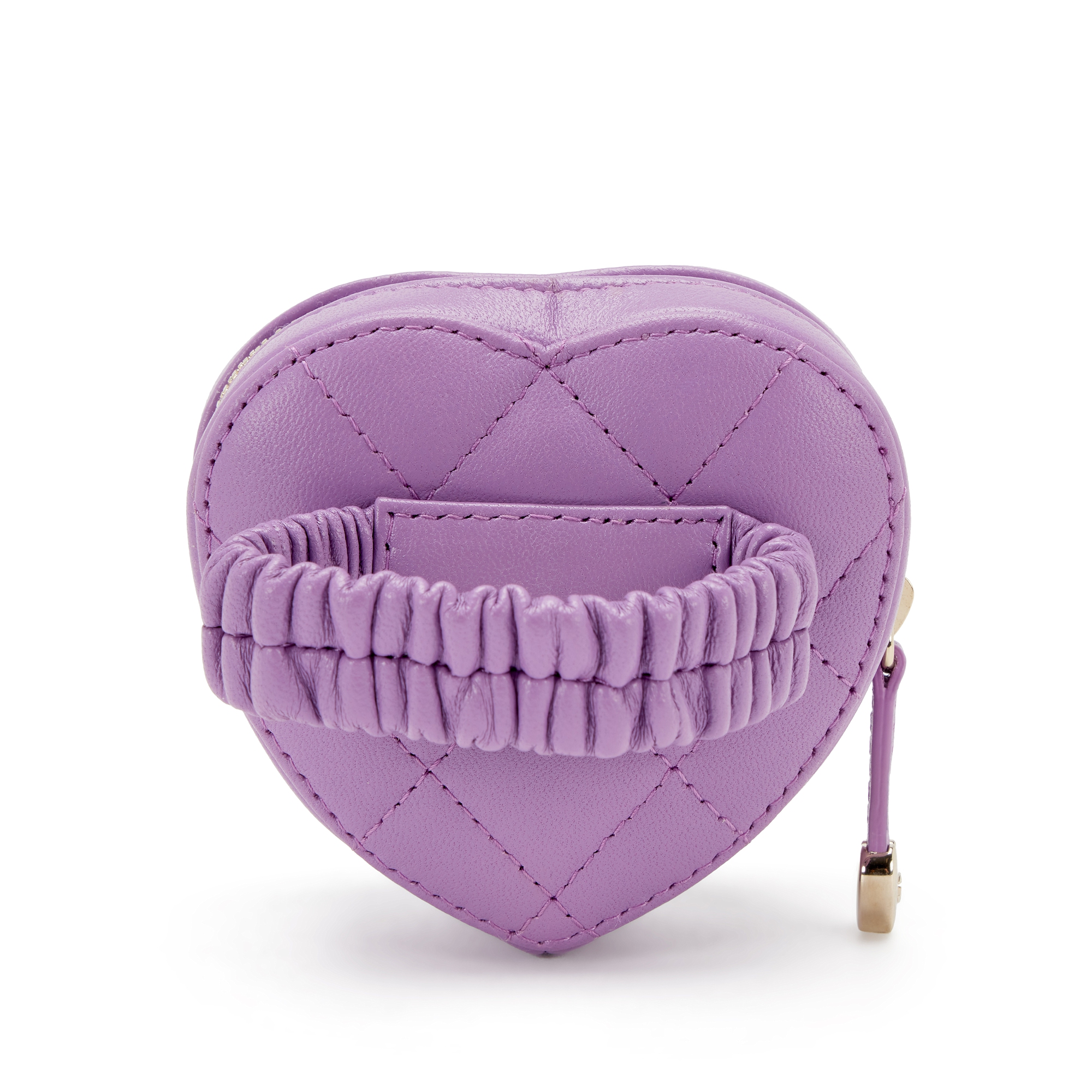 Chanel Purple Quilted Lambskin Heart Zipped Arm Coin Purse Gold Hardware, 2022The interior is lined in a tonal textileIncludes dust bagThis item is final sale