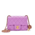 Be the first to review “Purple Quilted Lambskin Pearl Crush Flap Bag Brushed Gold Hardware”
