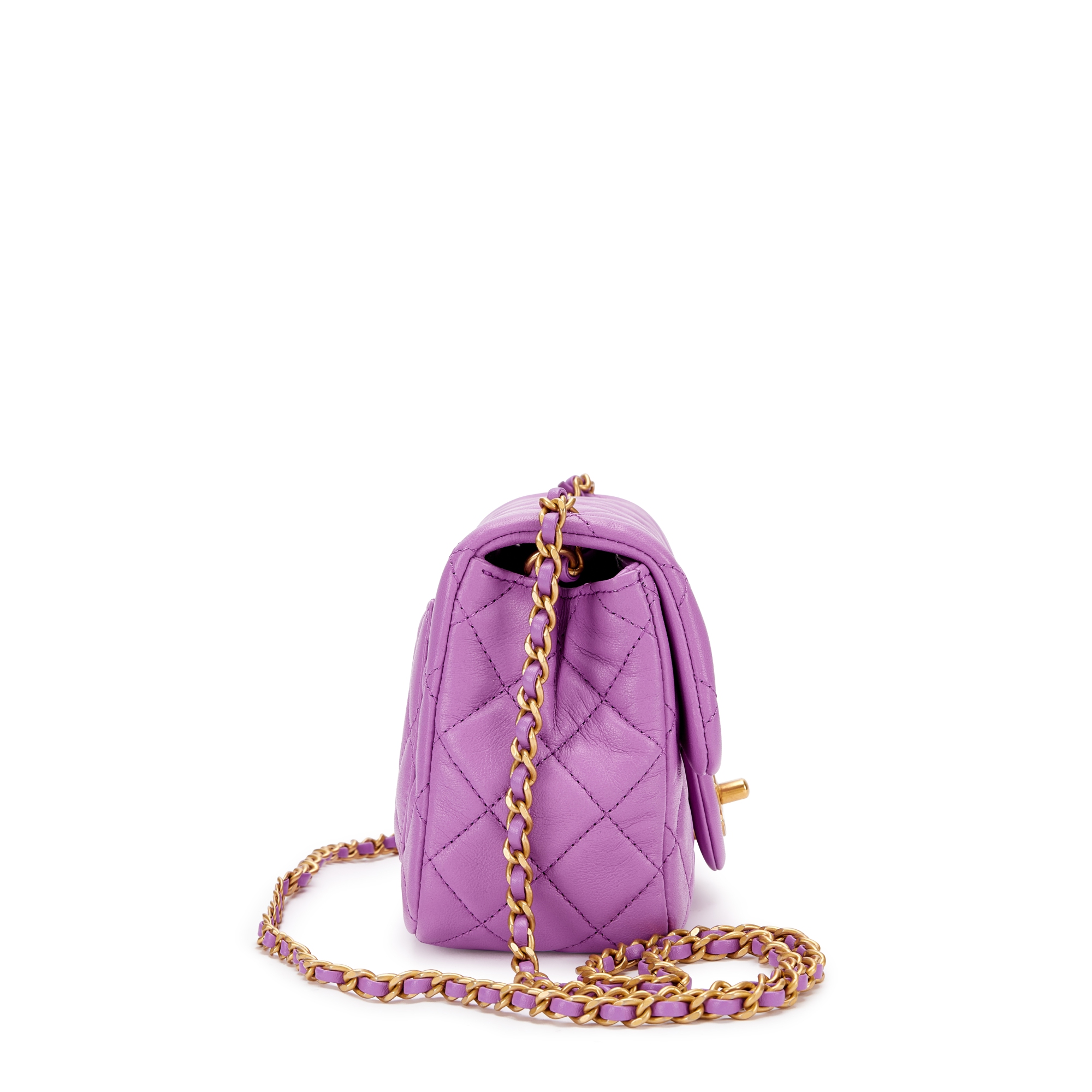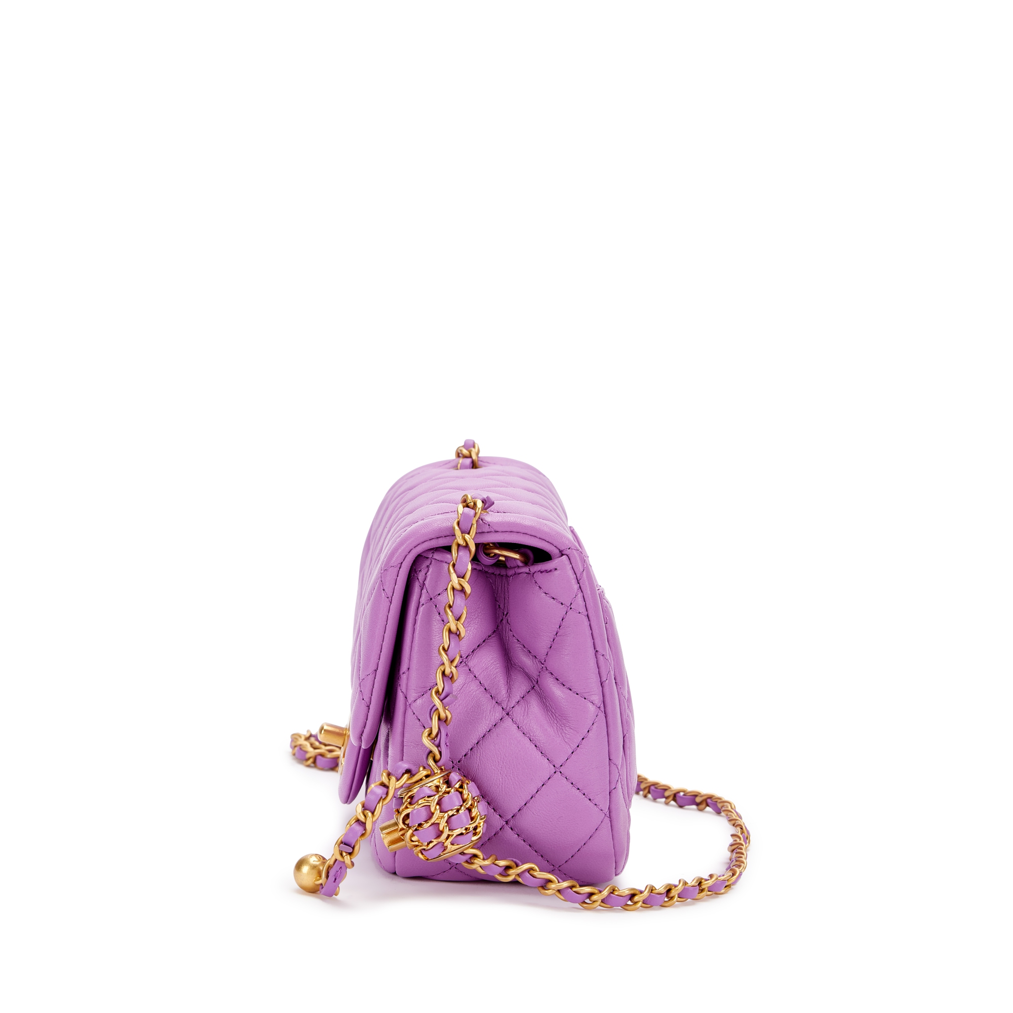 Purple Quilted Lambskin Pearl Crush Flap Bag Brushed Gold Hardware