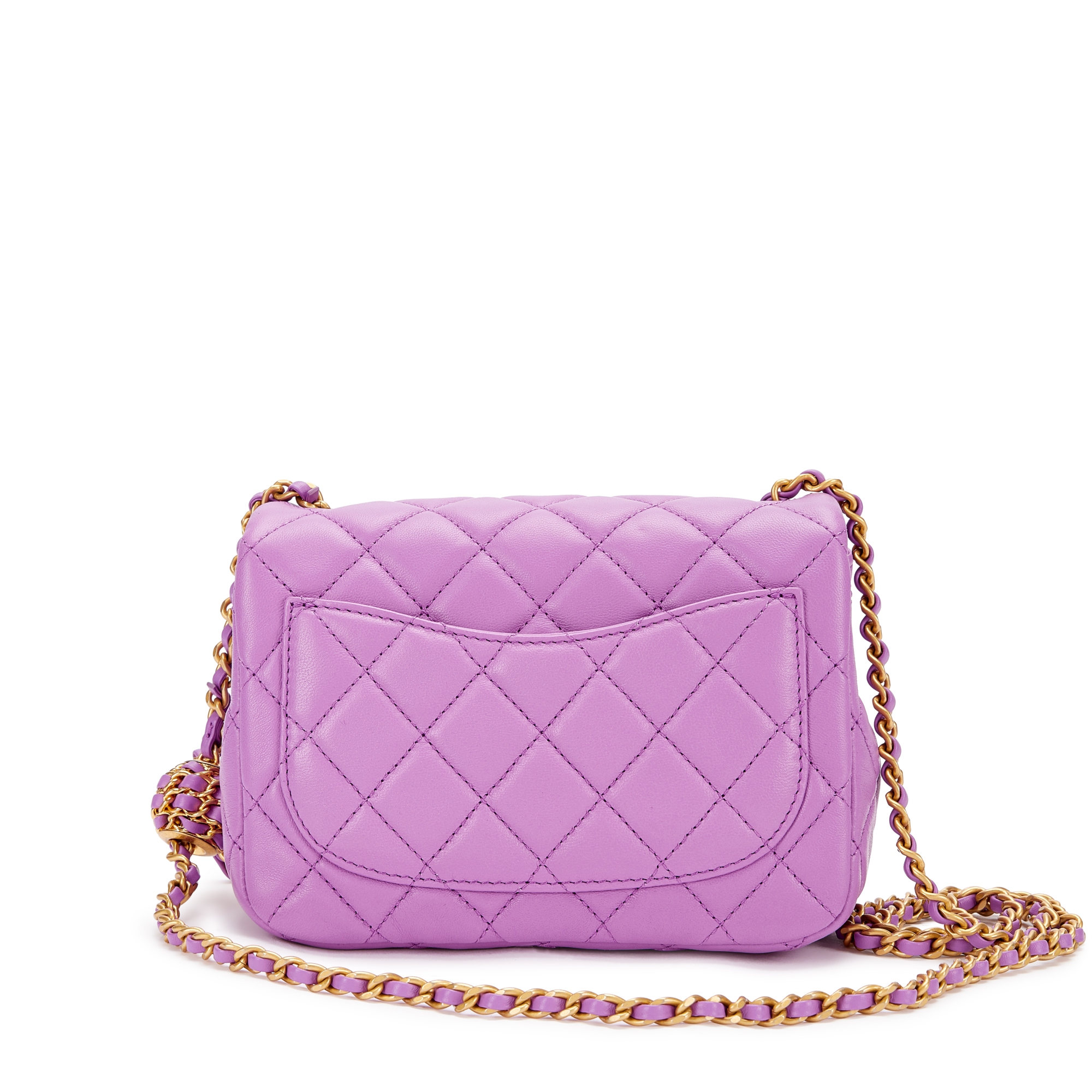 Chanel Purple Quilted Lambskin Pearl Crush Flap Bag Brushed Gold HardwareThe interior is lined with Gold leatherIncludes dust bagThis item is final sale