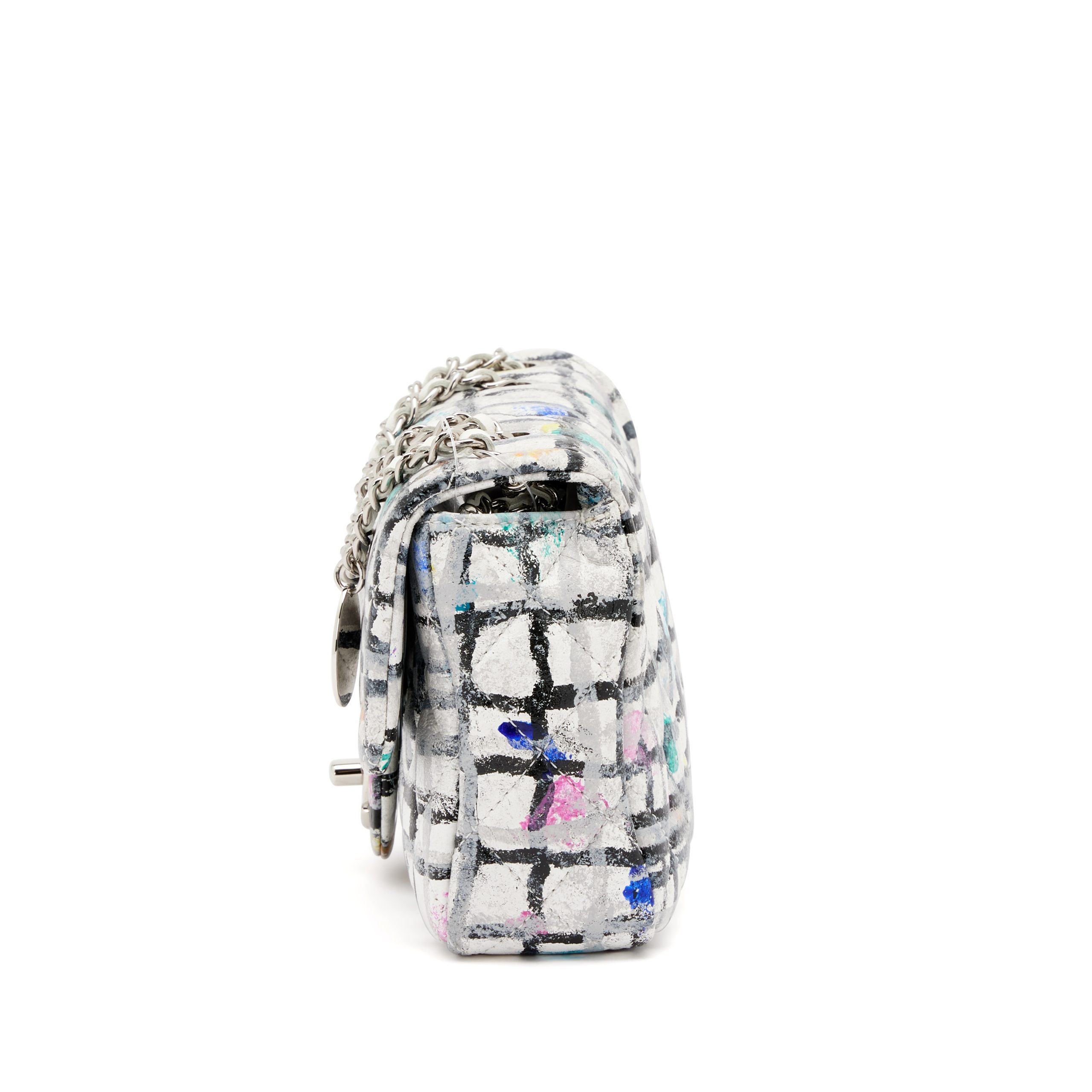 Rainbow Hand Painted Quilted Calfskin Graffiti Mini Single Flap Silver Hardware, 2014