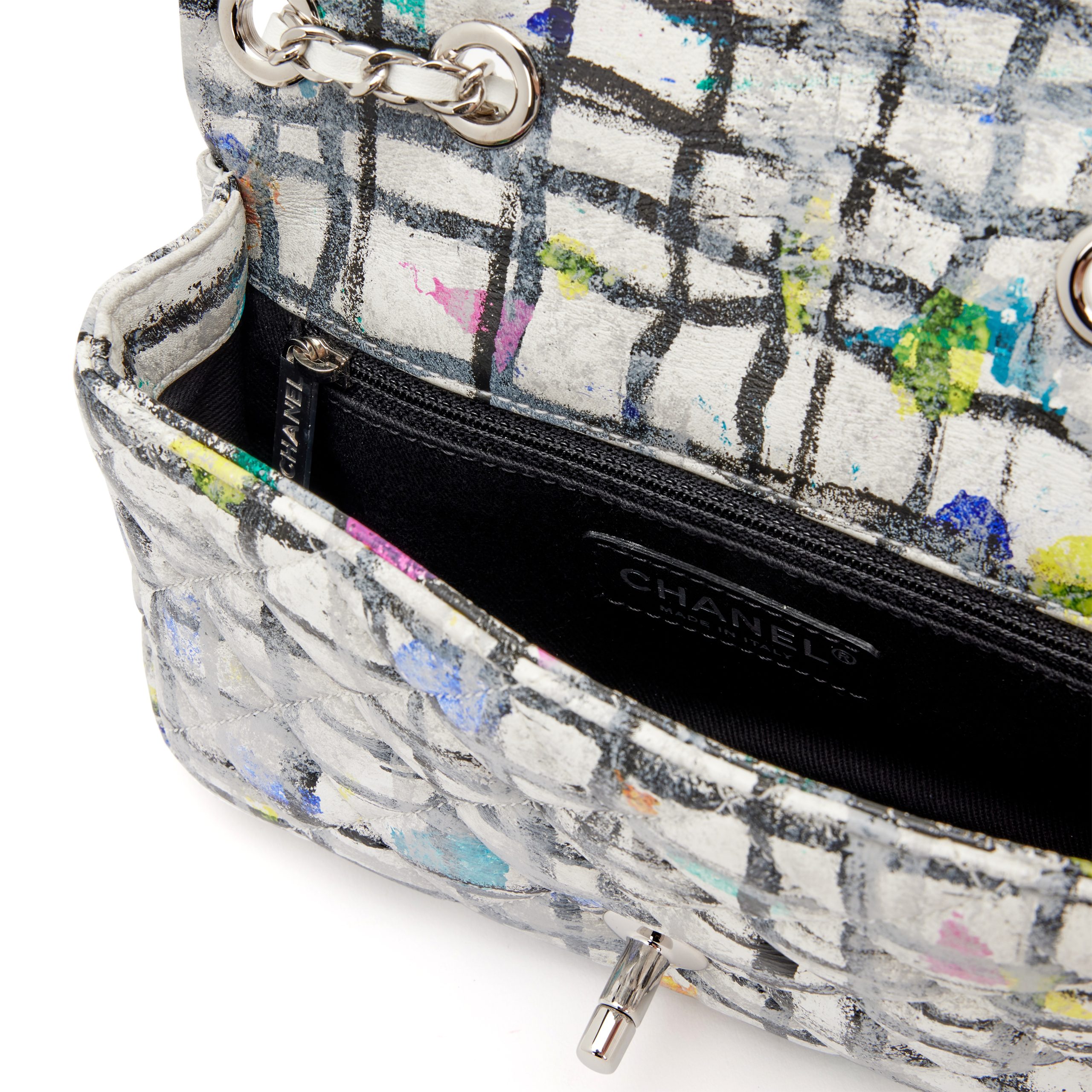 Chanel Rainbow Hand Painted Quilted Calfskin Graffiti Mini Single Flap Silver Hardware, 2014The interior is lined in a black textile materialIncludes authenticity card, tag, dust bag, and boxThis item is final sale