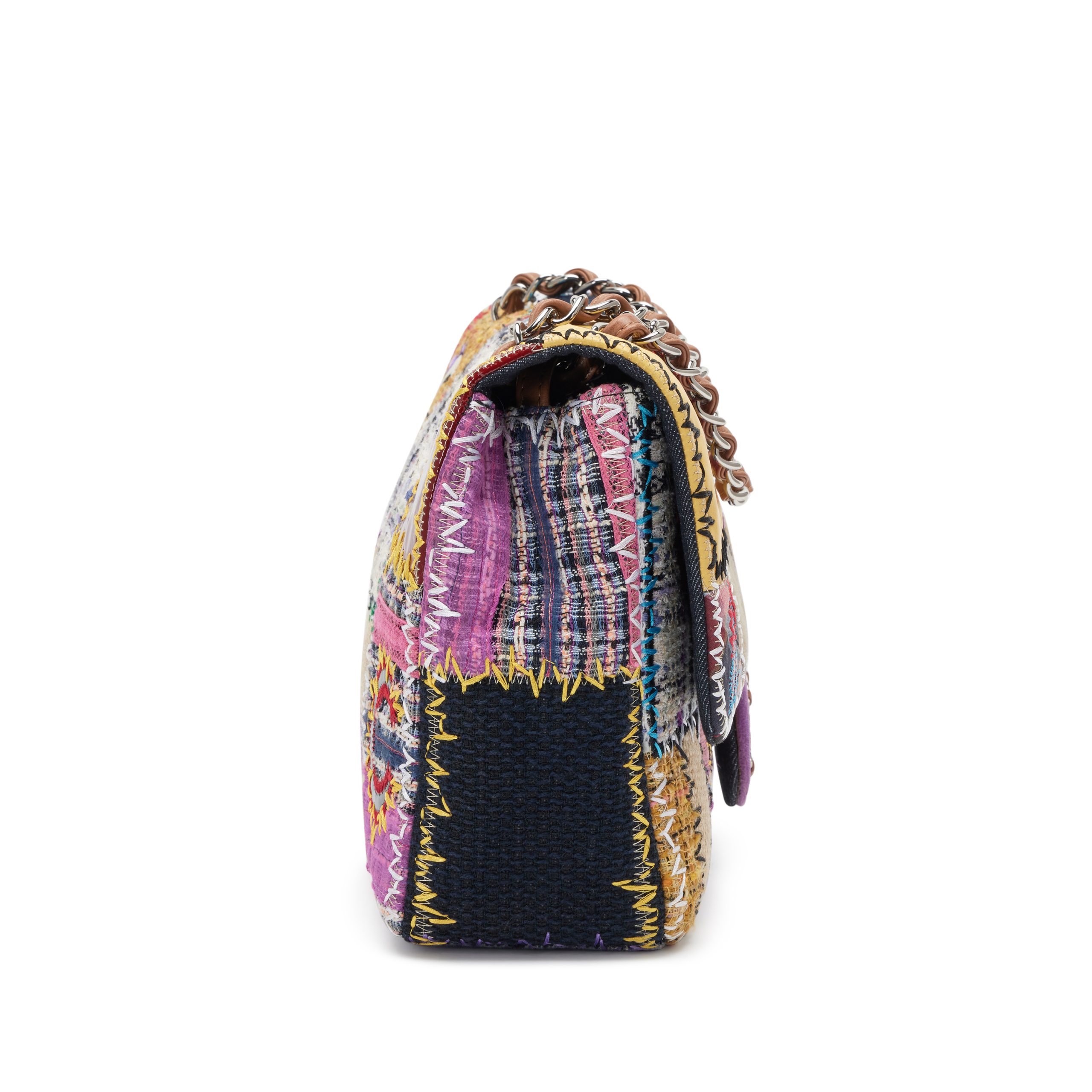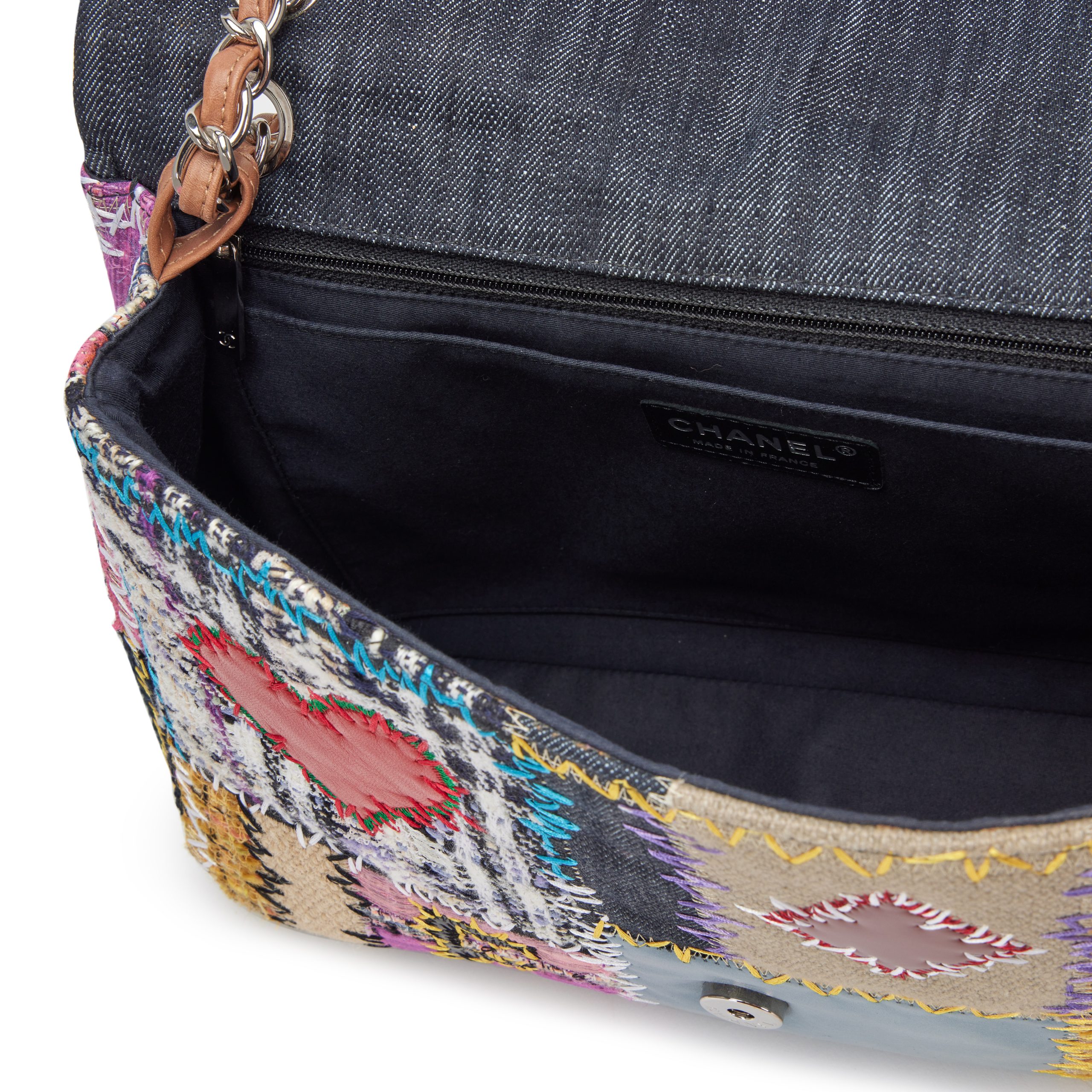 Chanel Rainbow Tweed, Textile and Leather Patchwork Denim Jumbo Single Flap Bag Silver Hardware, 2011The interior is lined in a navy blue textile materialIncludes authenticity card, information booklet, dust bag, boxThis item is final sale