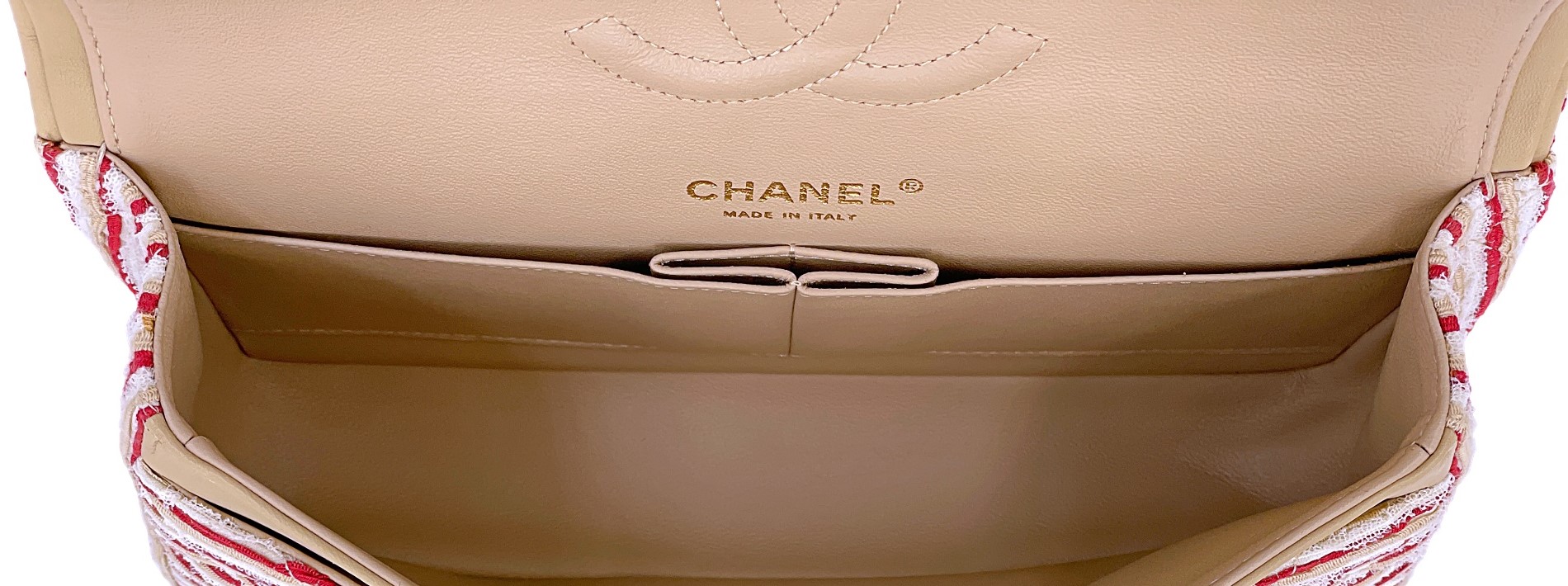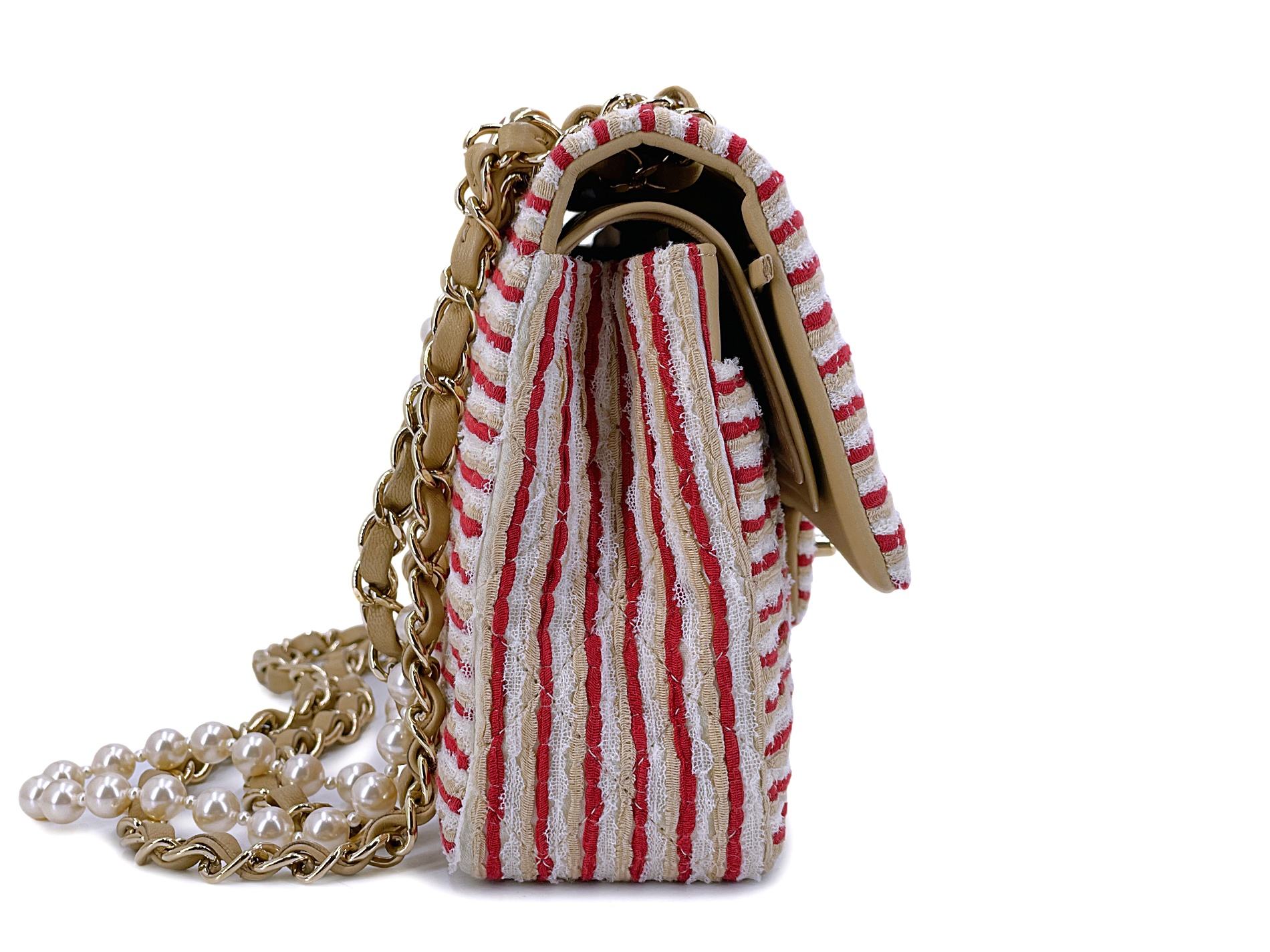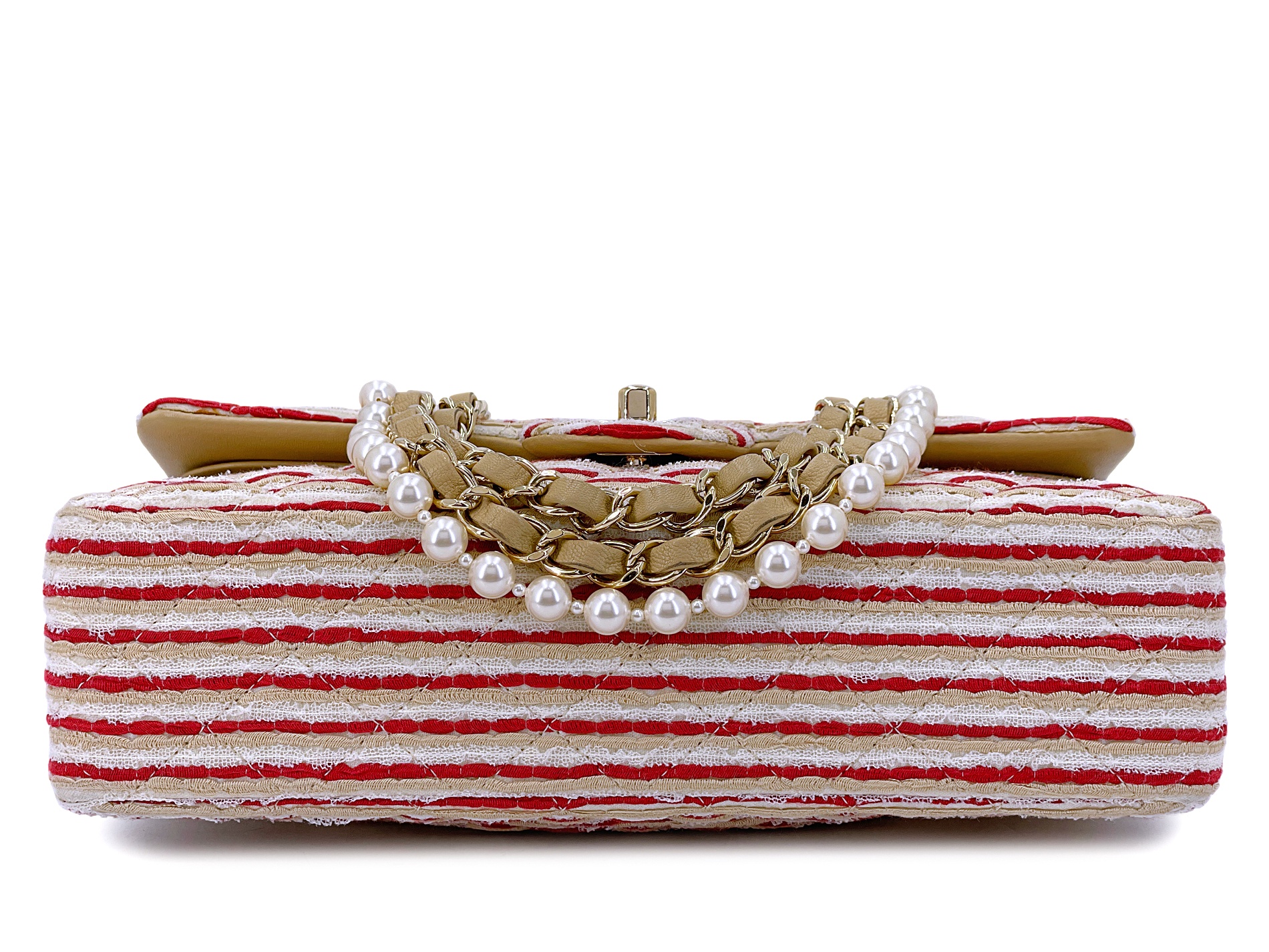 Chanel Red and White Canvas Striped Coco Sailor Pearl Medium Classic Double Flap Bag Gold Hardware, 2014The interior is lined in a beige leatherIncludes authenticity card and dust bagThis item is final sale