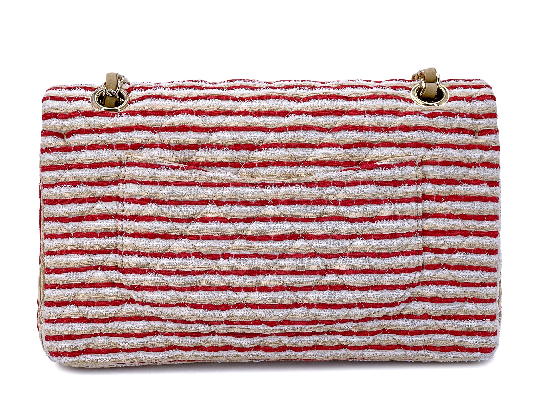 Red and White Canvas Striped Coco Sailor Pearl Medium Classic Double Flap Bag Gold Hardware, 2014