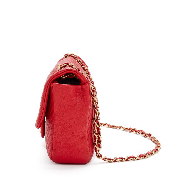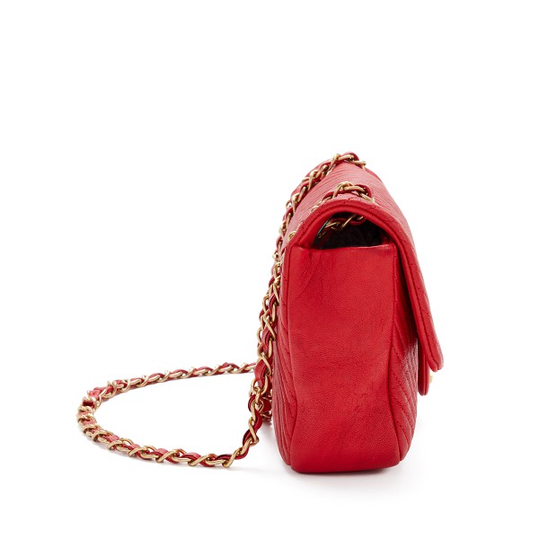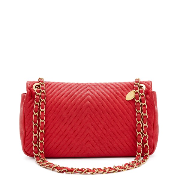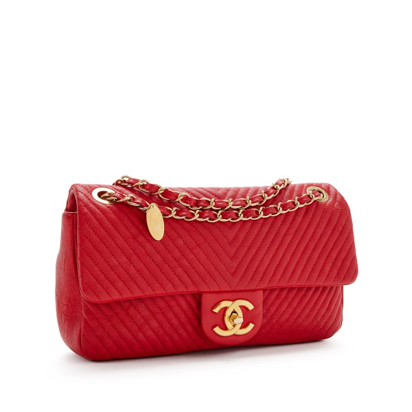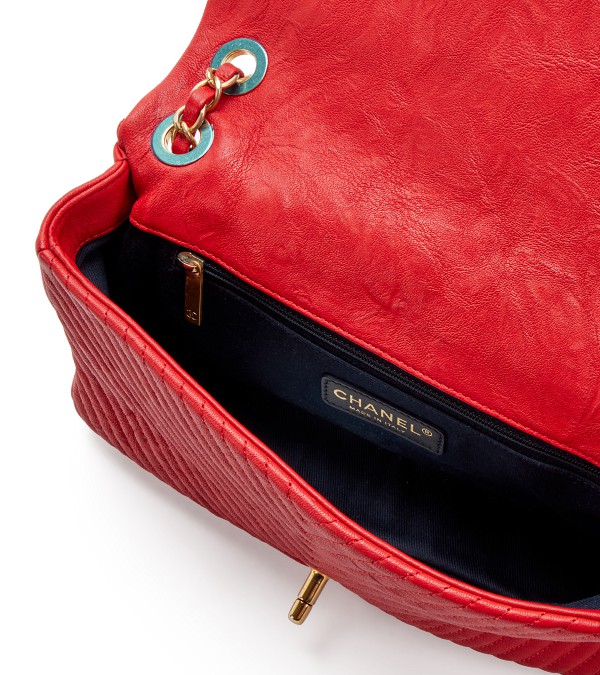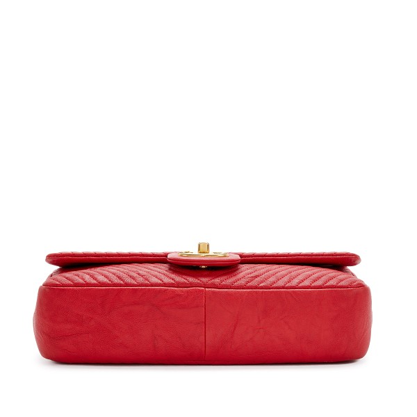 Red Chevron Quilted Distressed Calfskin Medium Classic Single Medallion Flap Gold Hardware, 2015