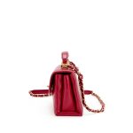 Red Lambskin Trendy CC Spirit Top Handle Gold Hardware, 2020